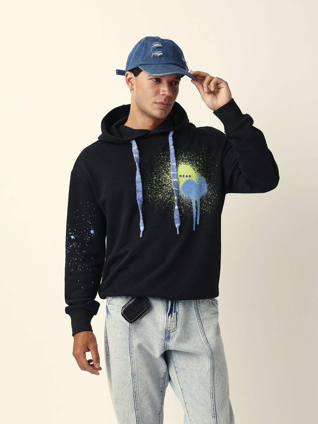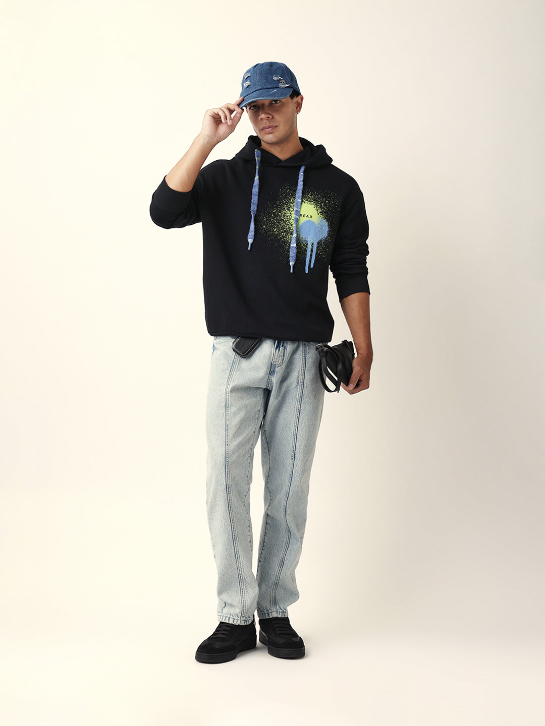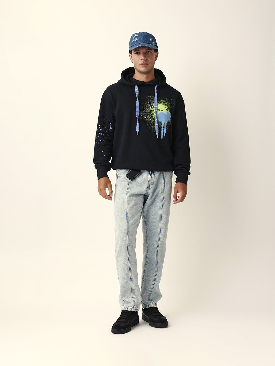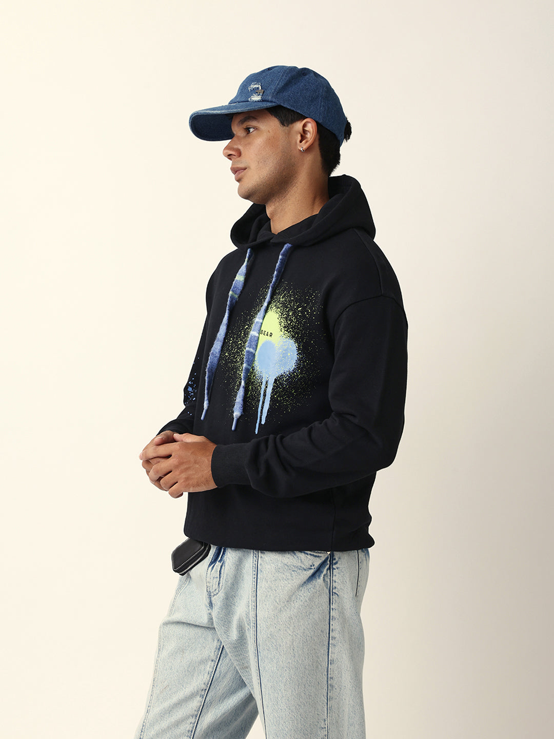 Shop Black Relaxed Fit Hoodie with Artistic Neon Spray Graphic Online