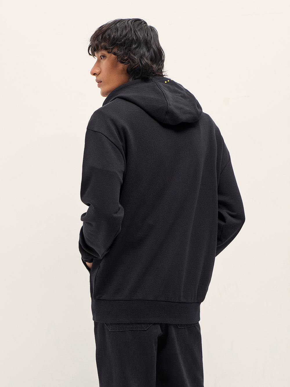 Black Relaxed Fit Hoodie with Smiley Cloud Graphic Print