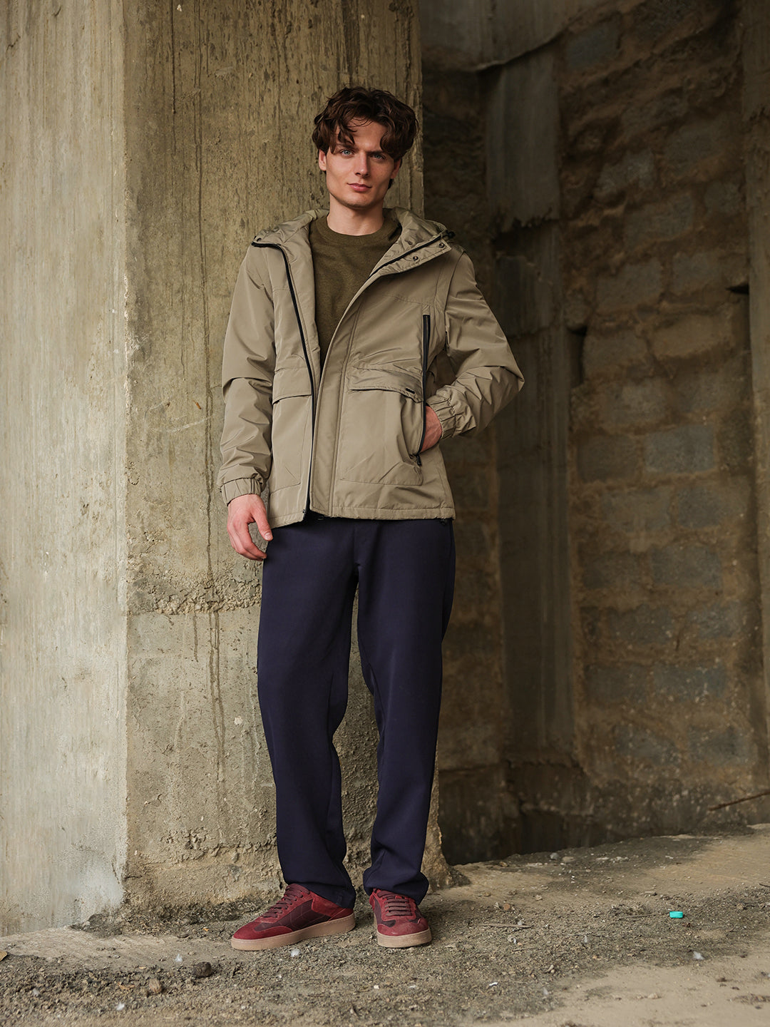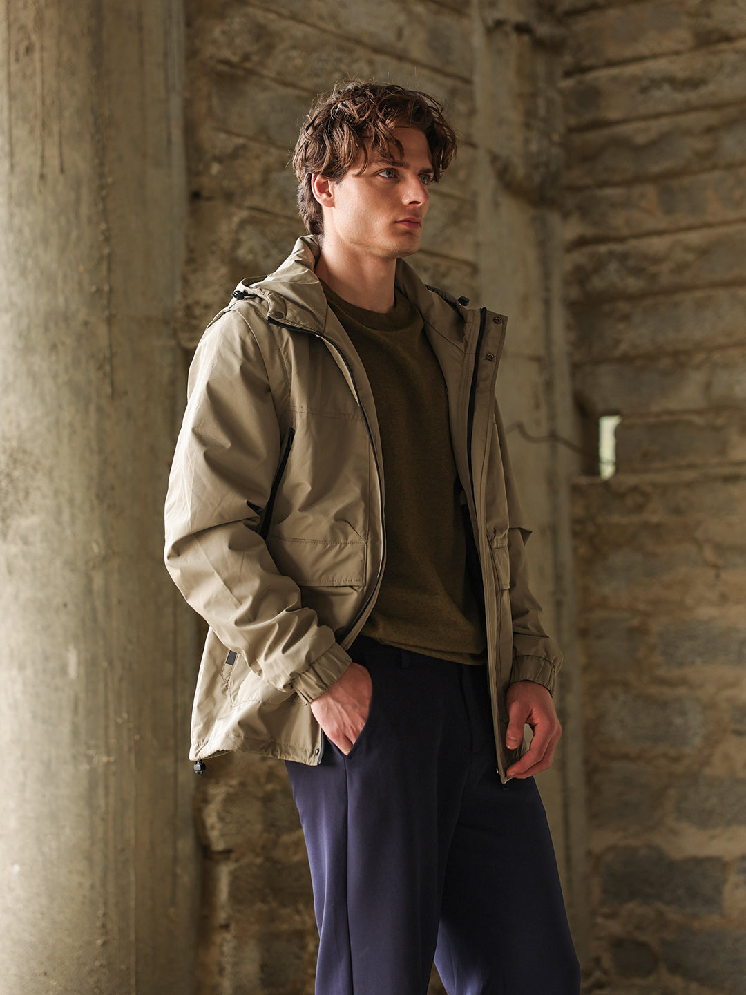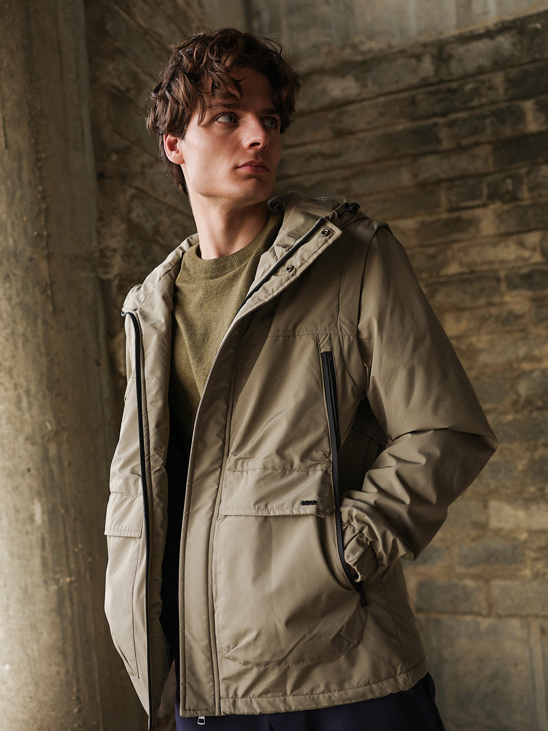 Design: Utility Jacket featuring cut-and-sew panels and Water Repellent