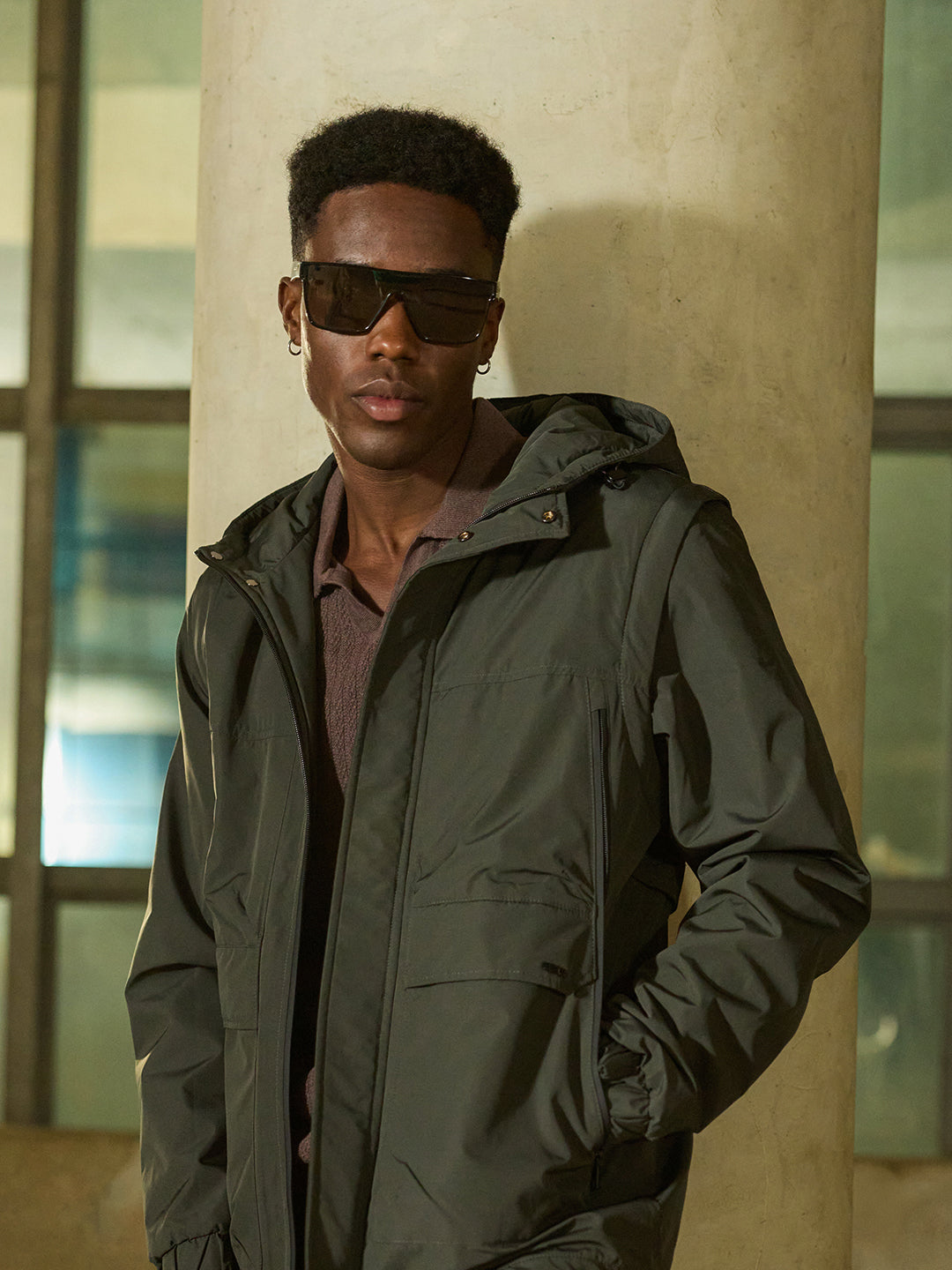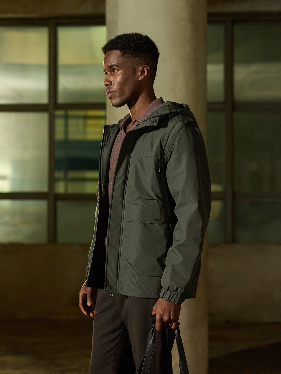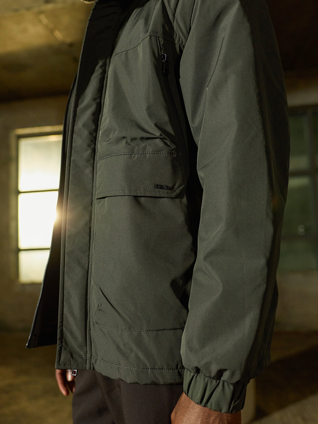 Design: Utility Jacket featuring cut-and-sew panels and Water Repellent