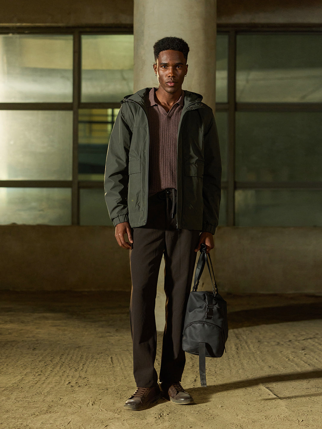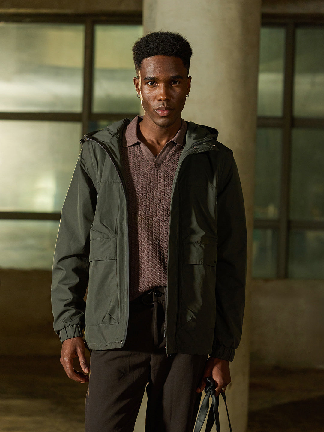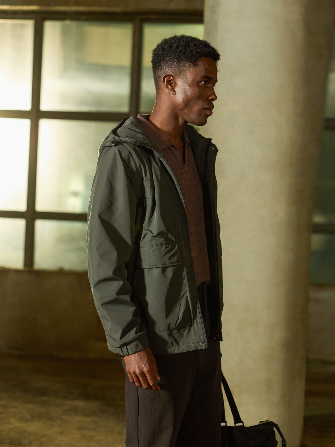 Design: Utility Jacket featuring cut-and-sew panels and Water Repellent