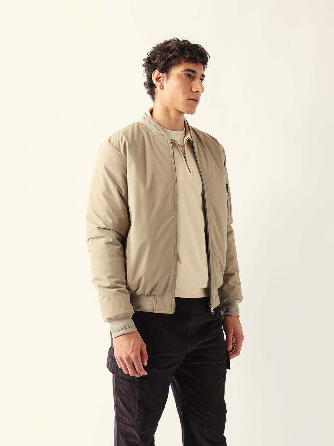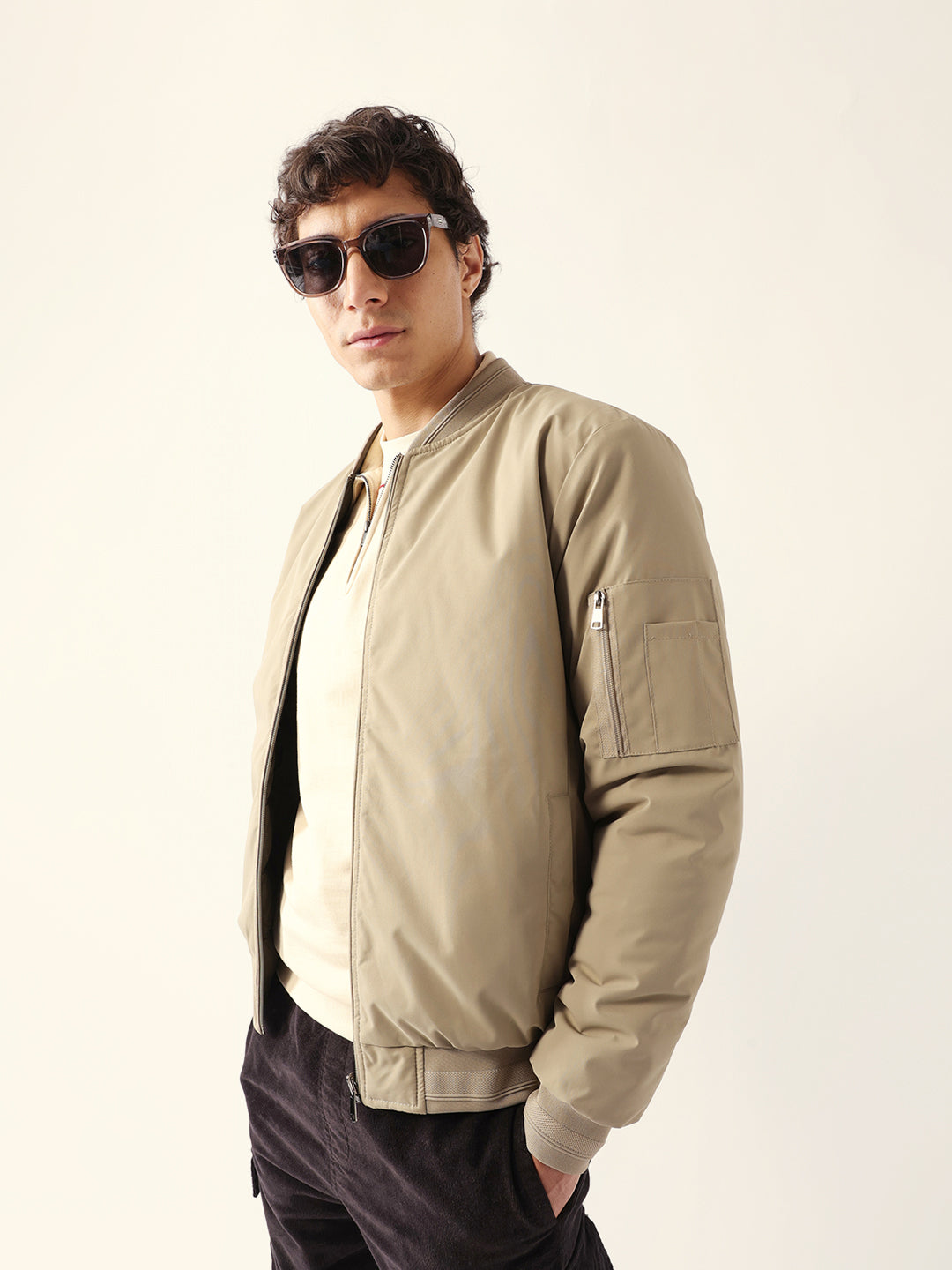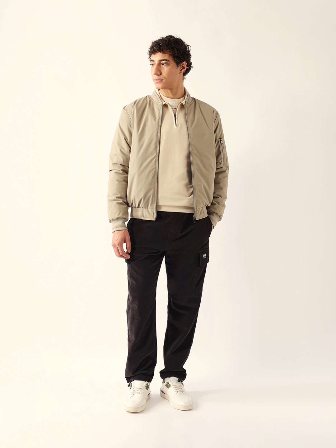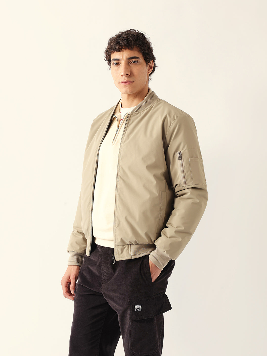 - Sleeves: Full-length sleeves with a utility pocket on the left side, finished with ribbed cuffs.