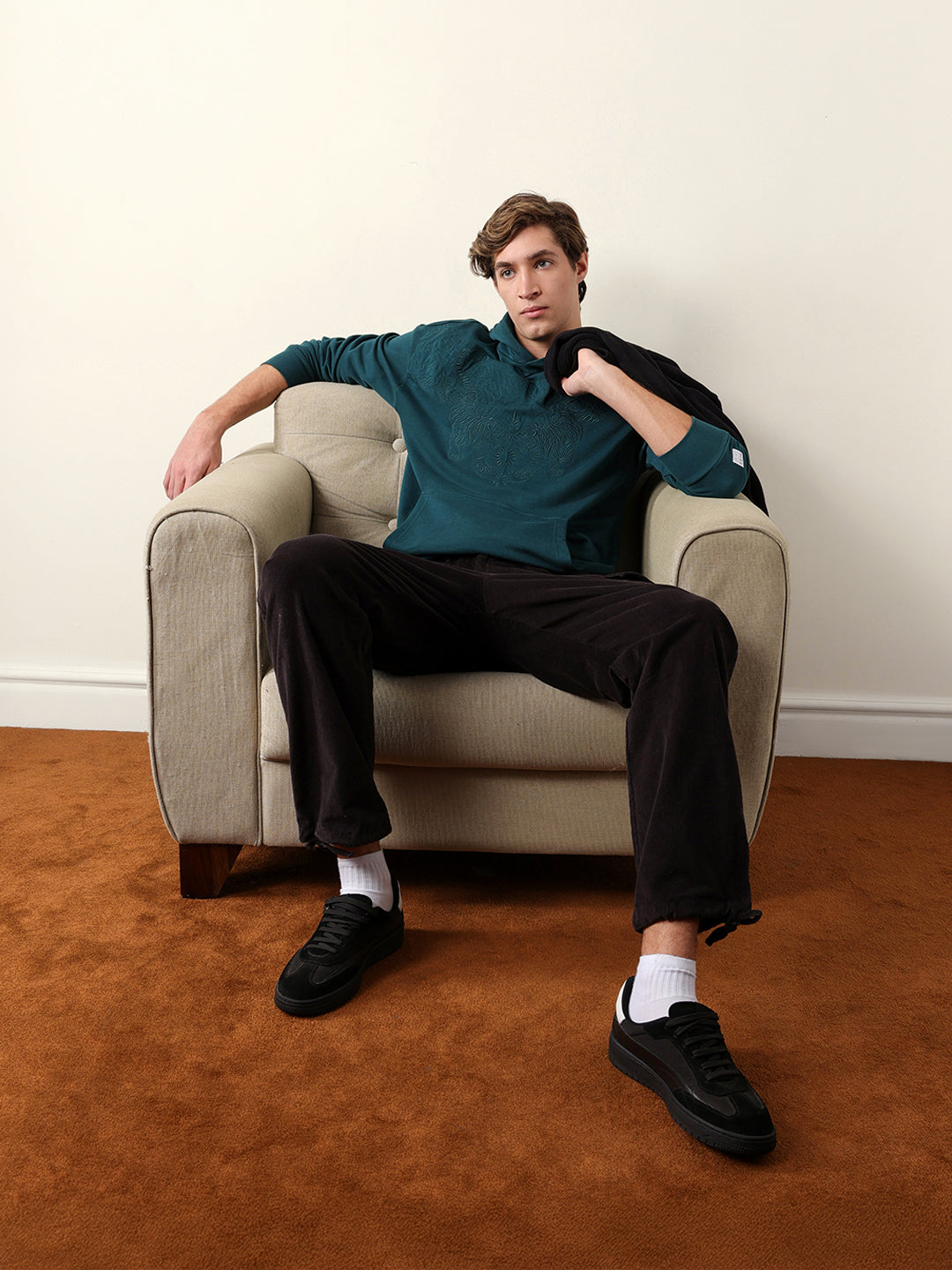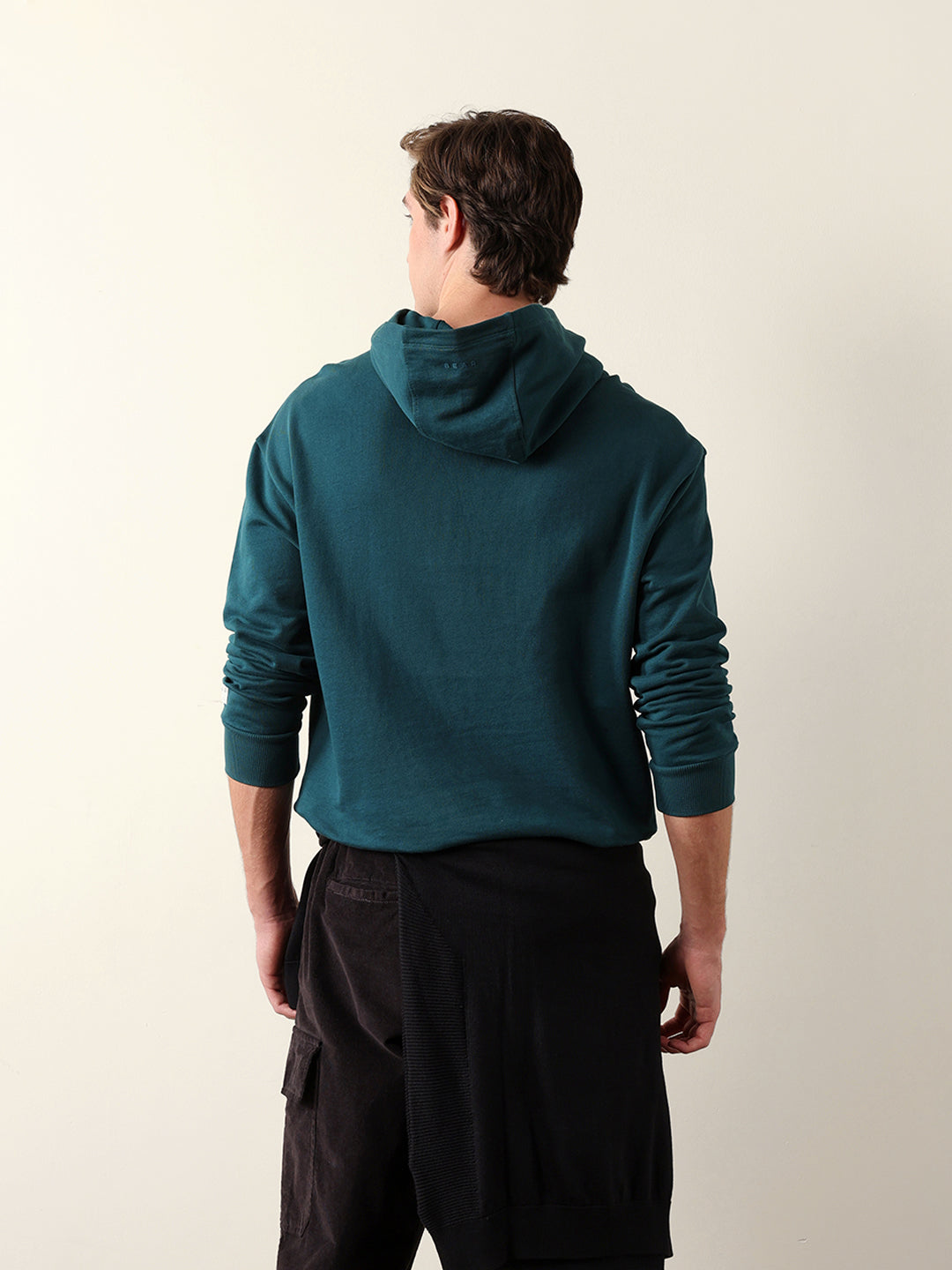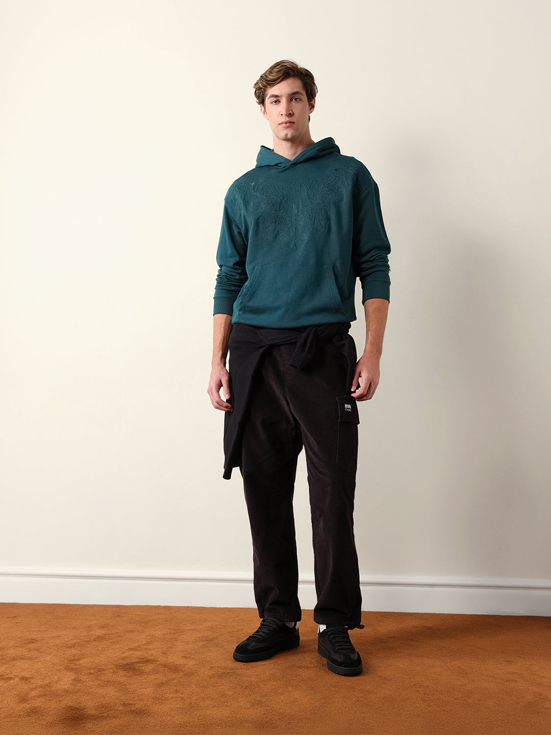 Teal Relaxed Fit Hoodie with Tonal Tiger Embroidered Motif