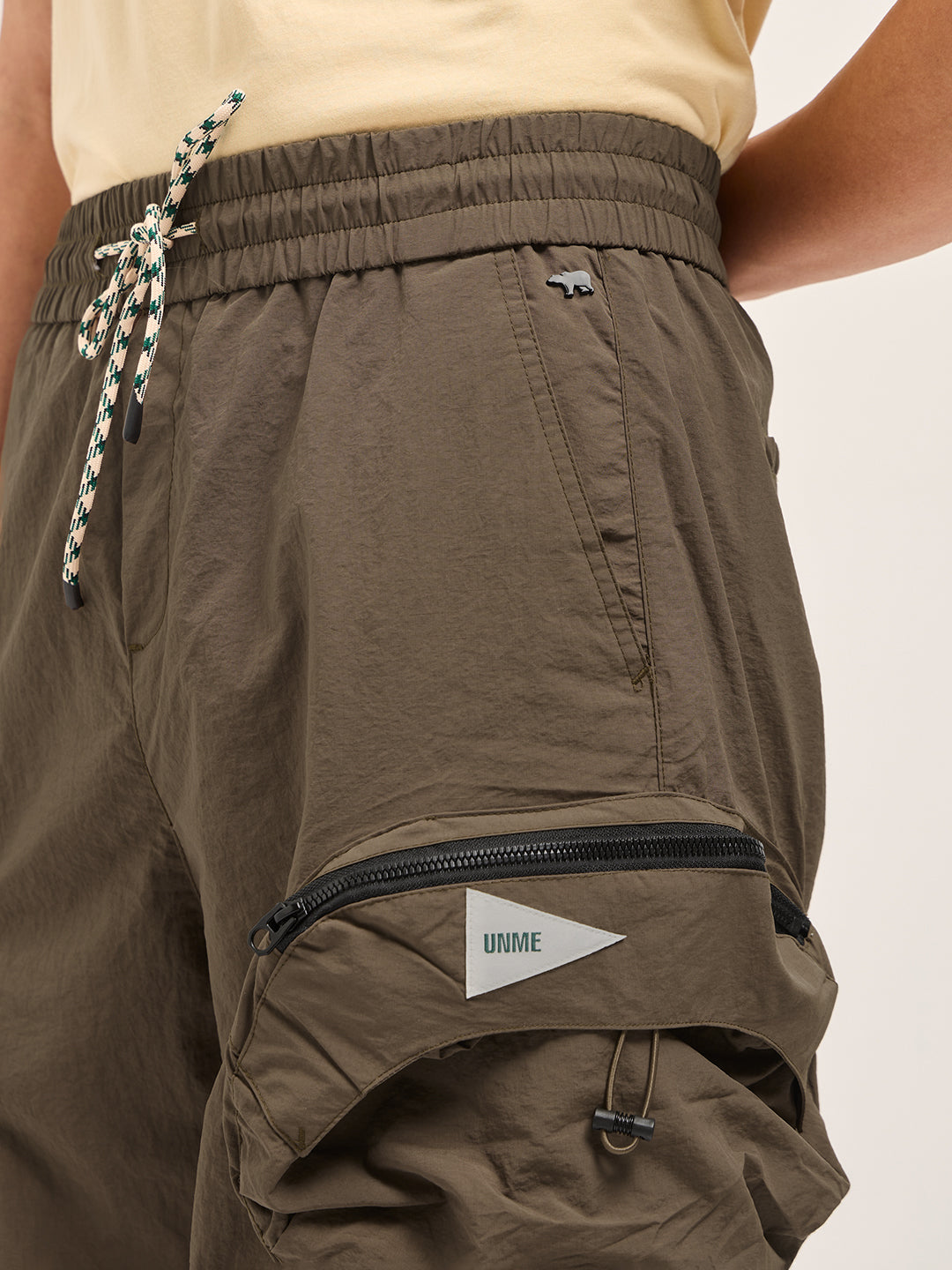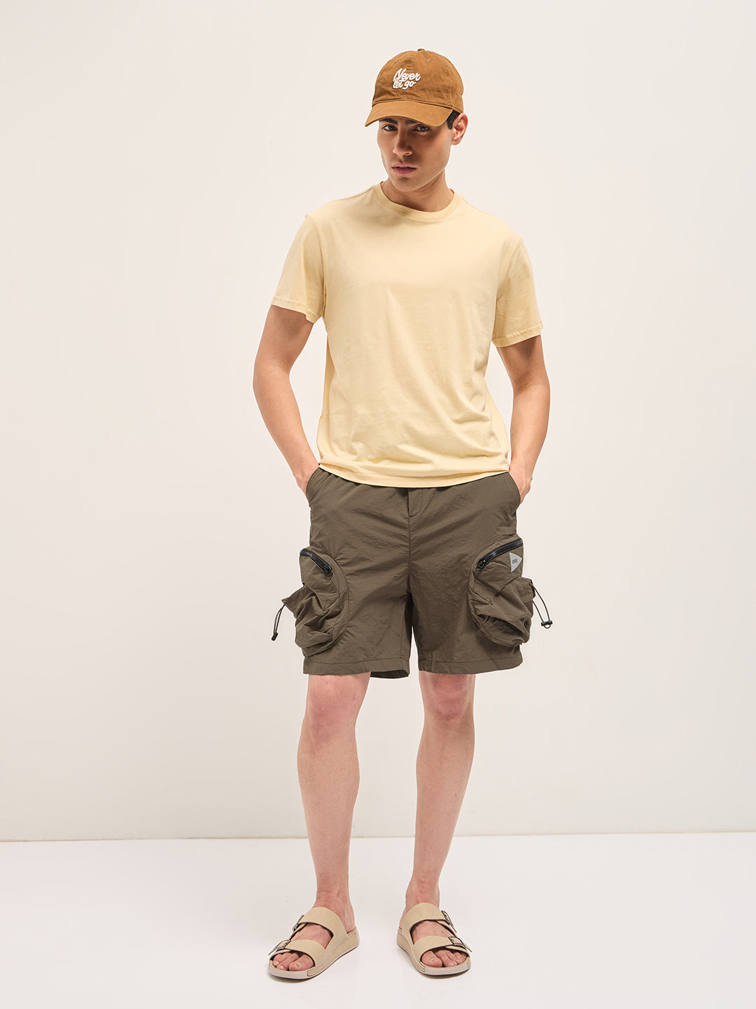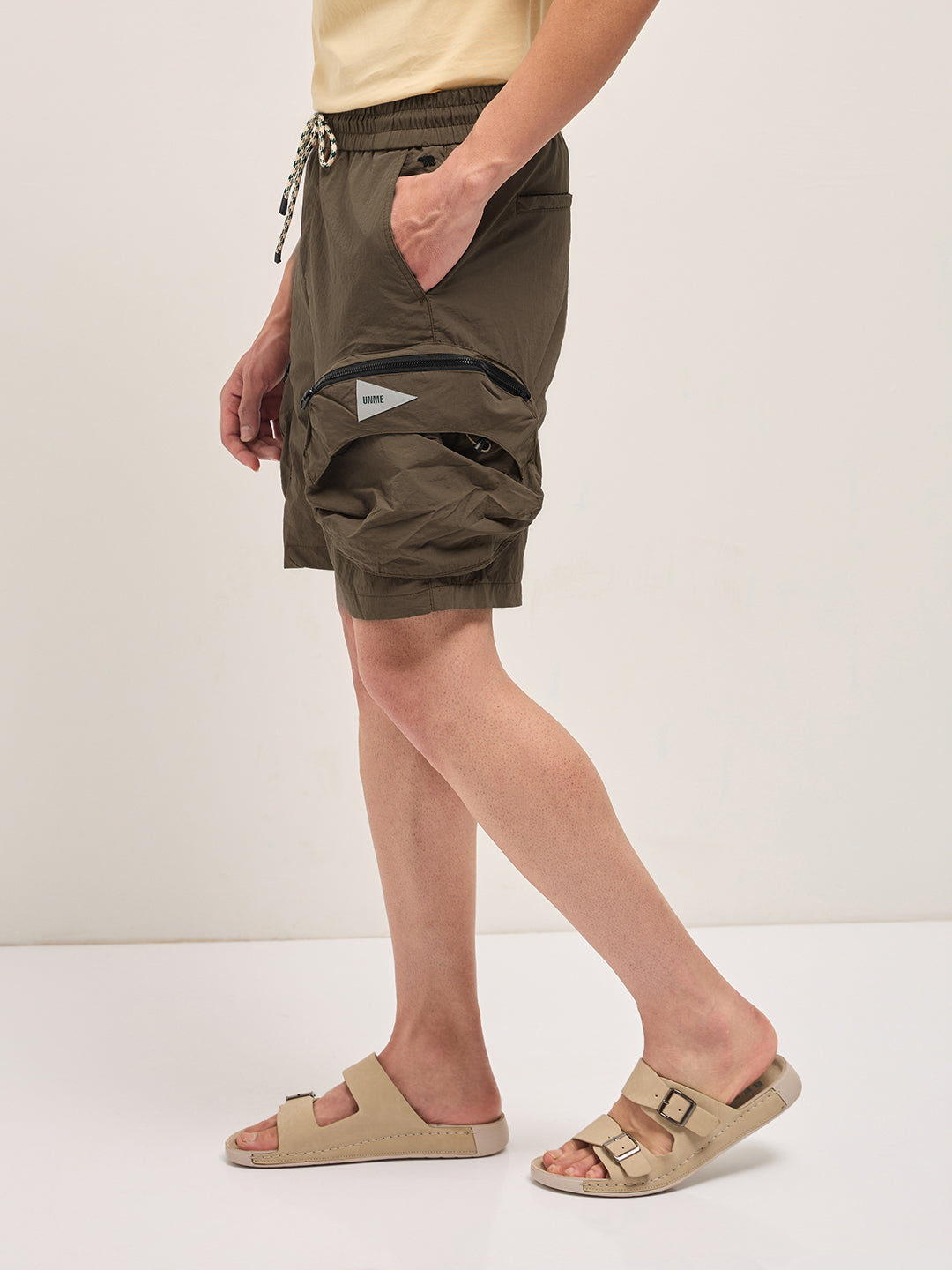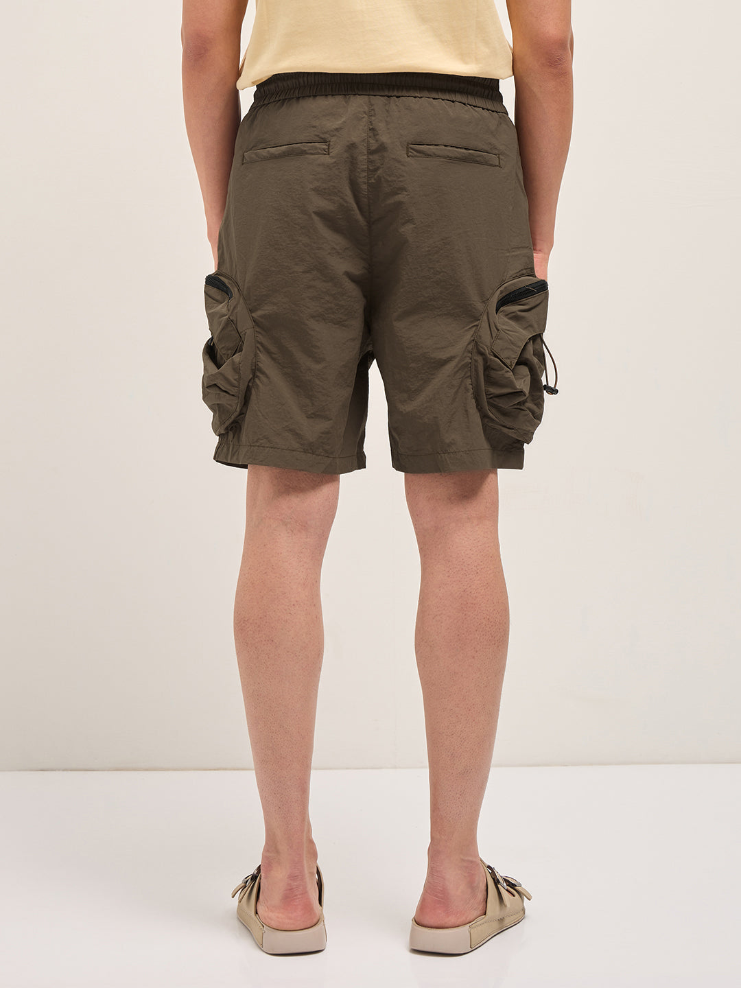 Brown Solid Cargo Shorts with Multiple Utility Pockets