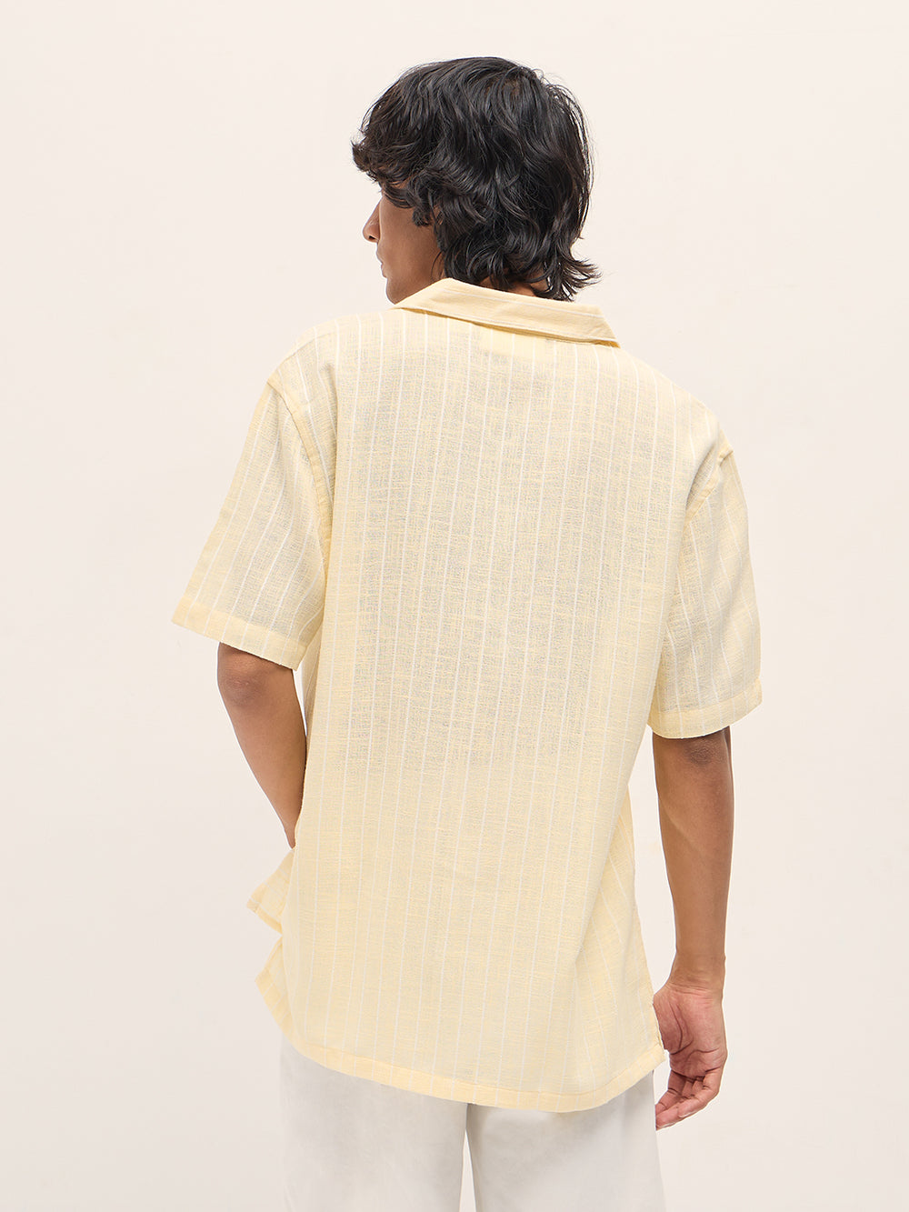 Light Yellow Vertical Textured Stripe Relaxed Fit Half Sleeve Casual Shirt