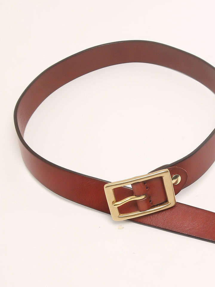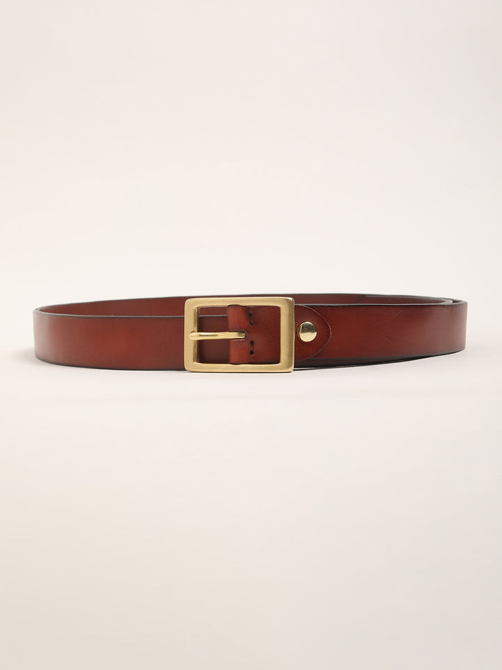 Men Brown Pure Leather Slim Width Formal Belt with Tang Closure