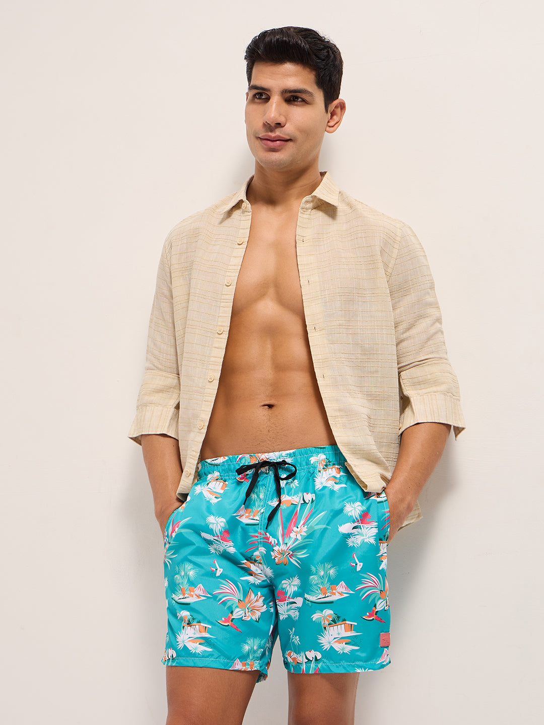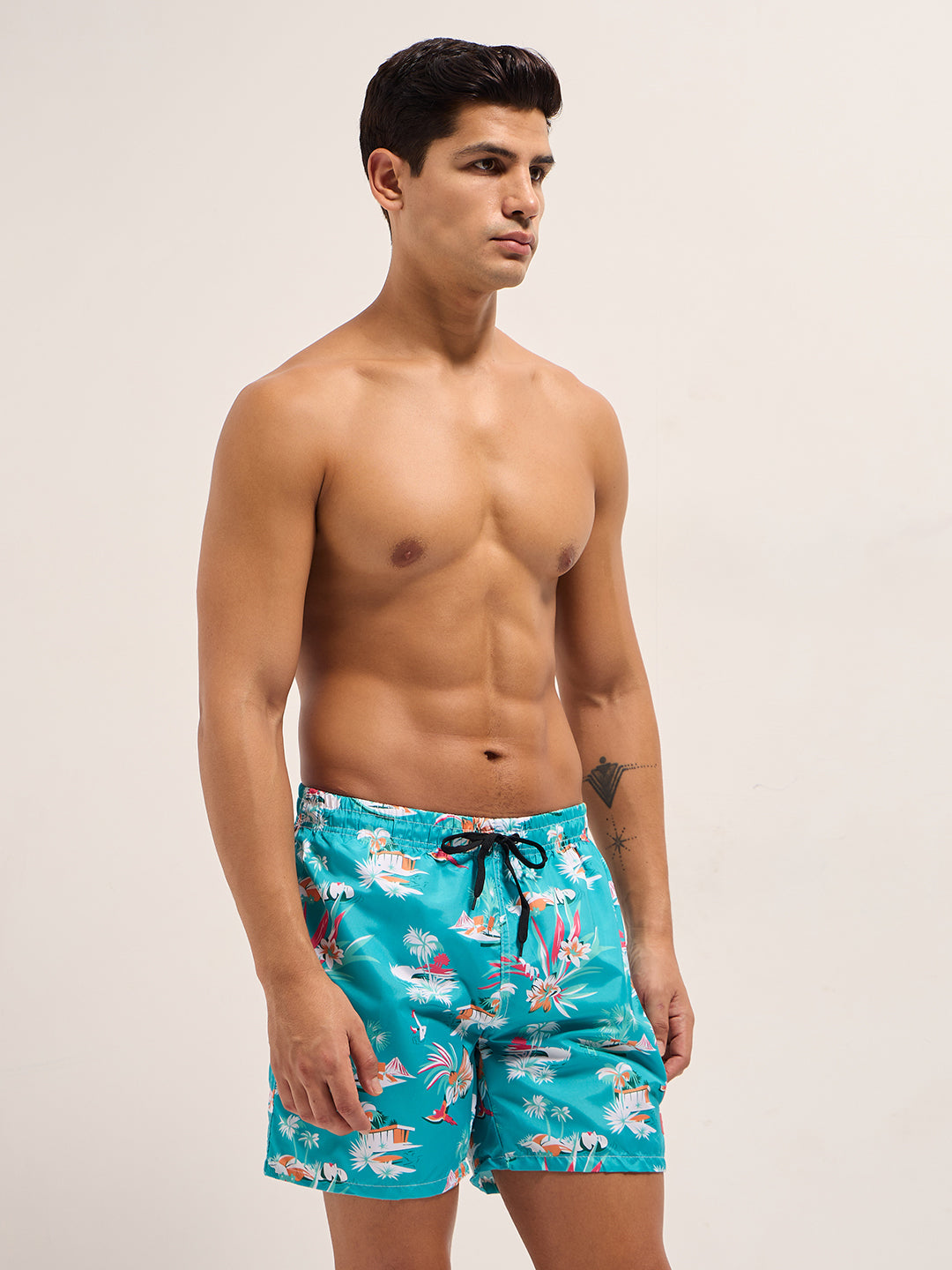 Multi-Color Printed Swim Shorts with Elastic Waist – Perfect for Summer