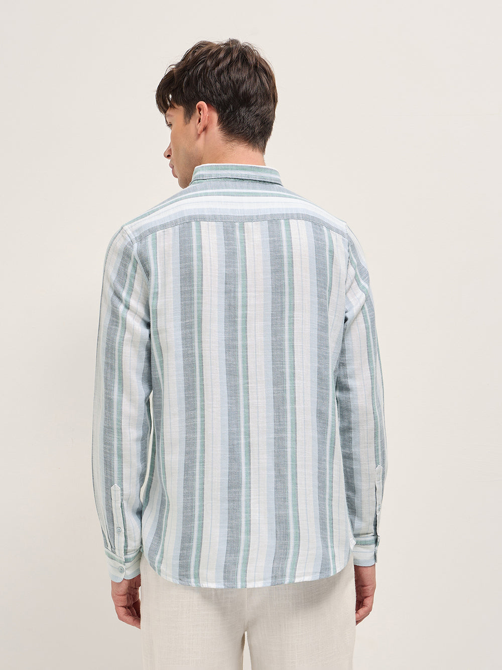 Shop Multicolor Herringbone Stripe Slim Fit Cotton Casual Shirt Online.