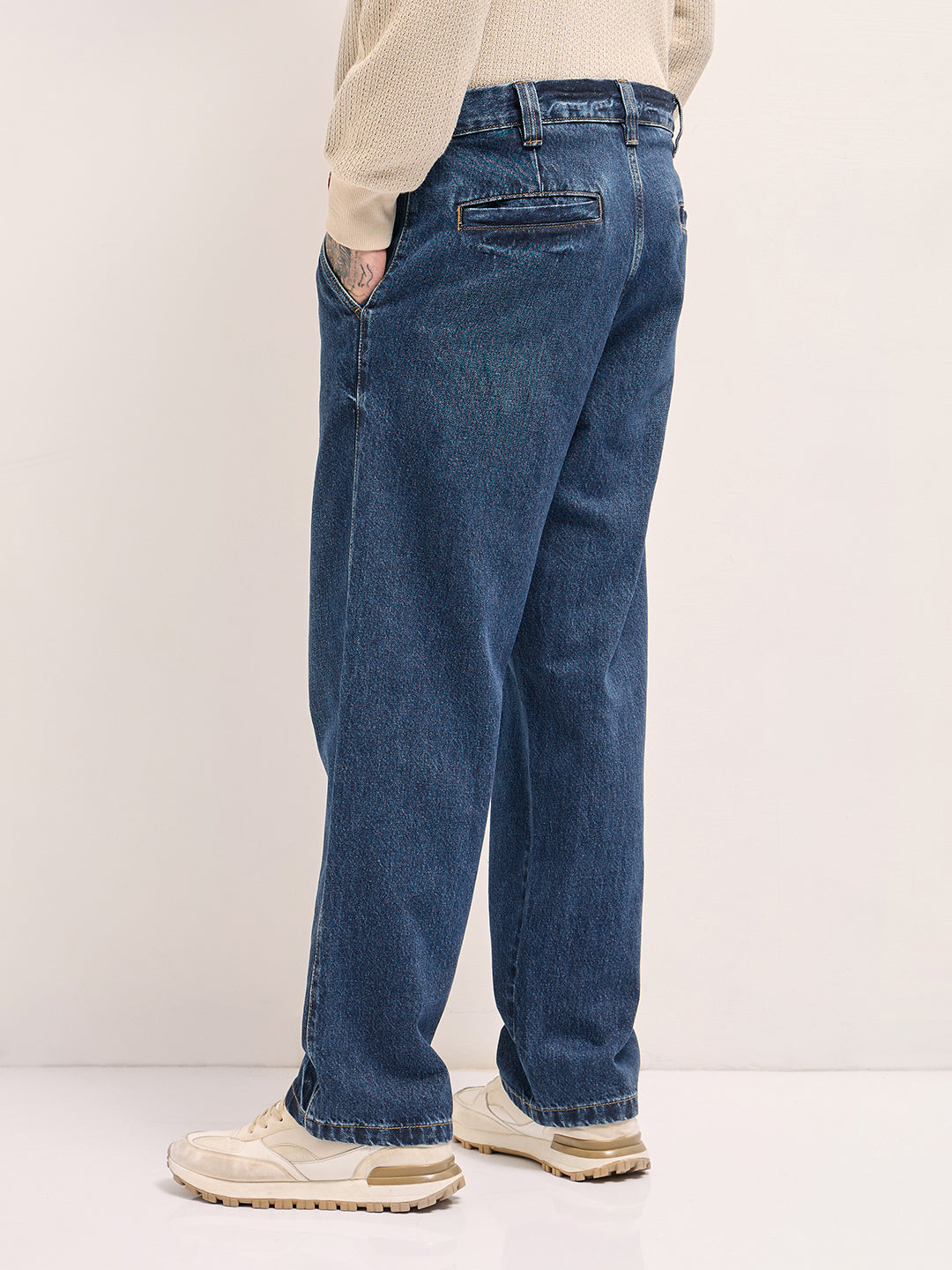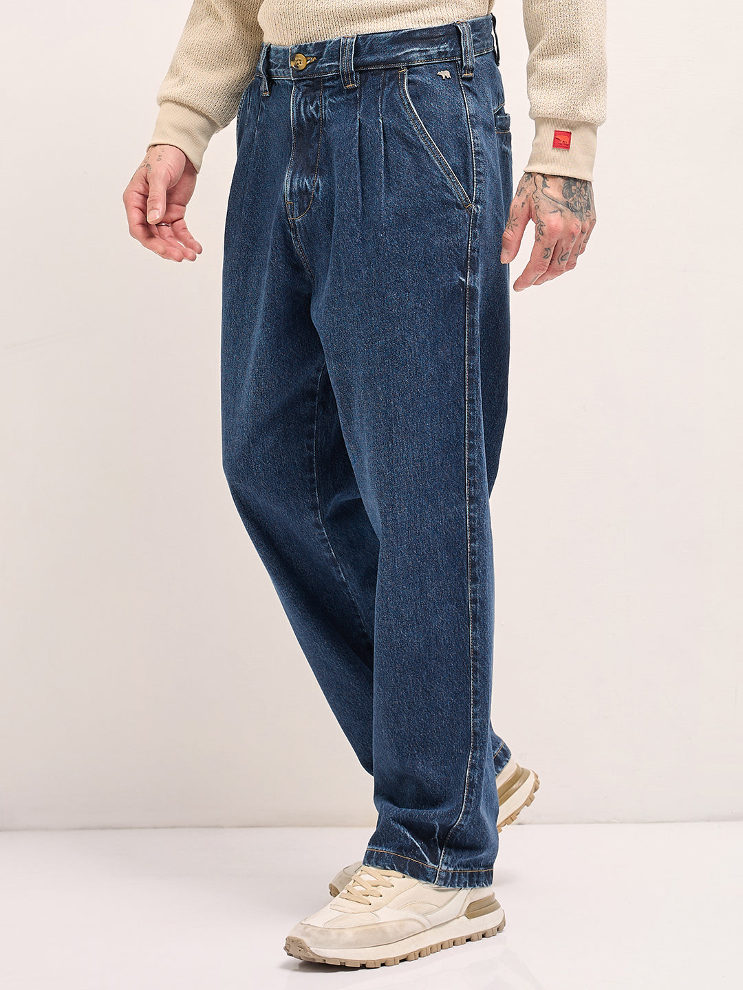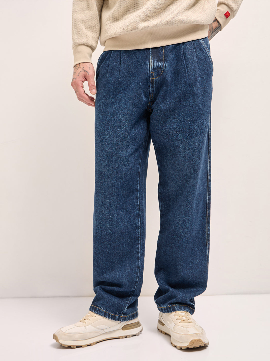Classic Wide-Leg Denim Jeans with Pleated Detailing