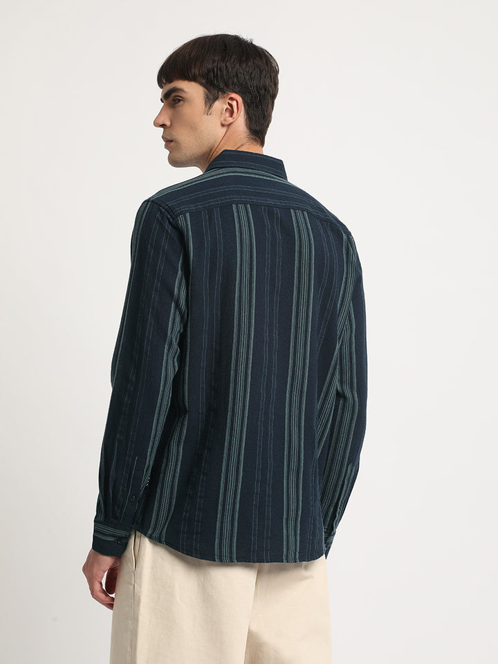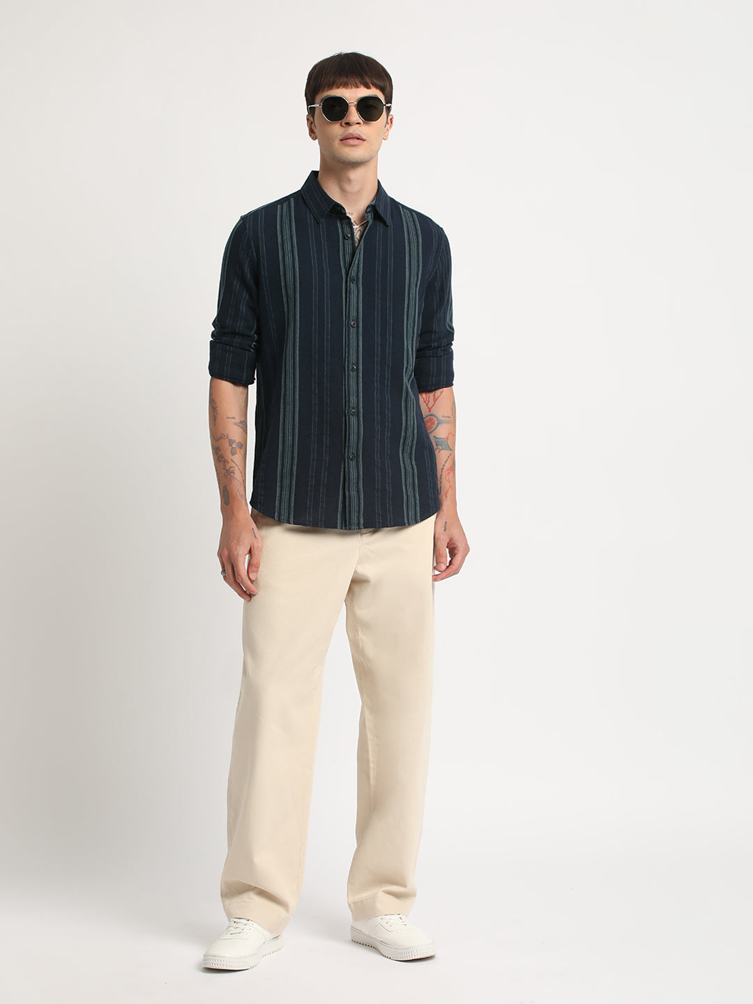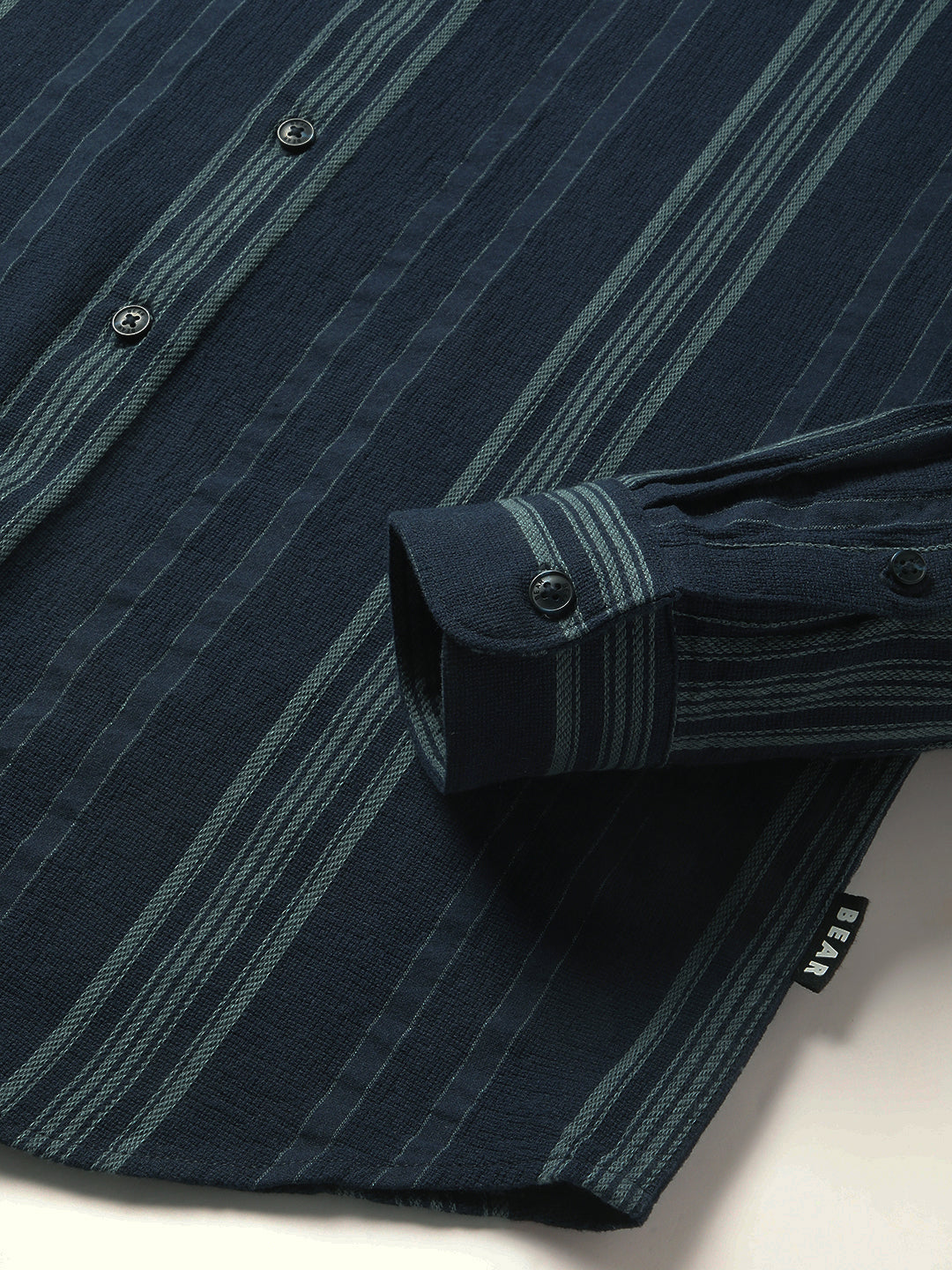 Men Blue Vertical Striped Fit Cotton Casual Shirt