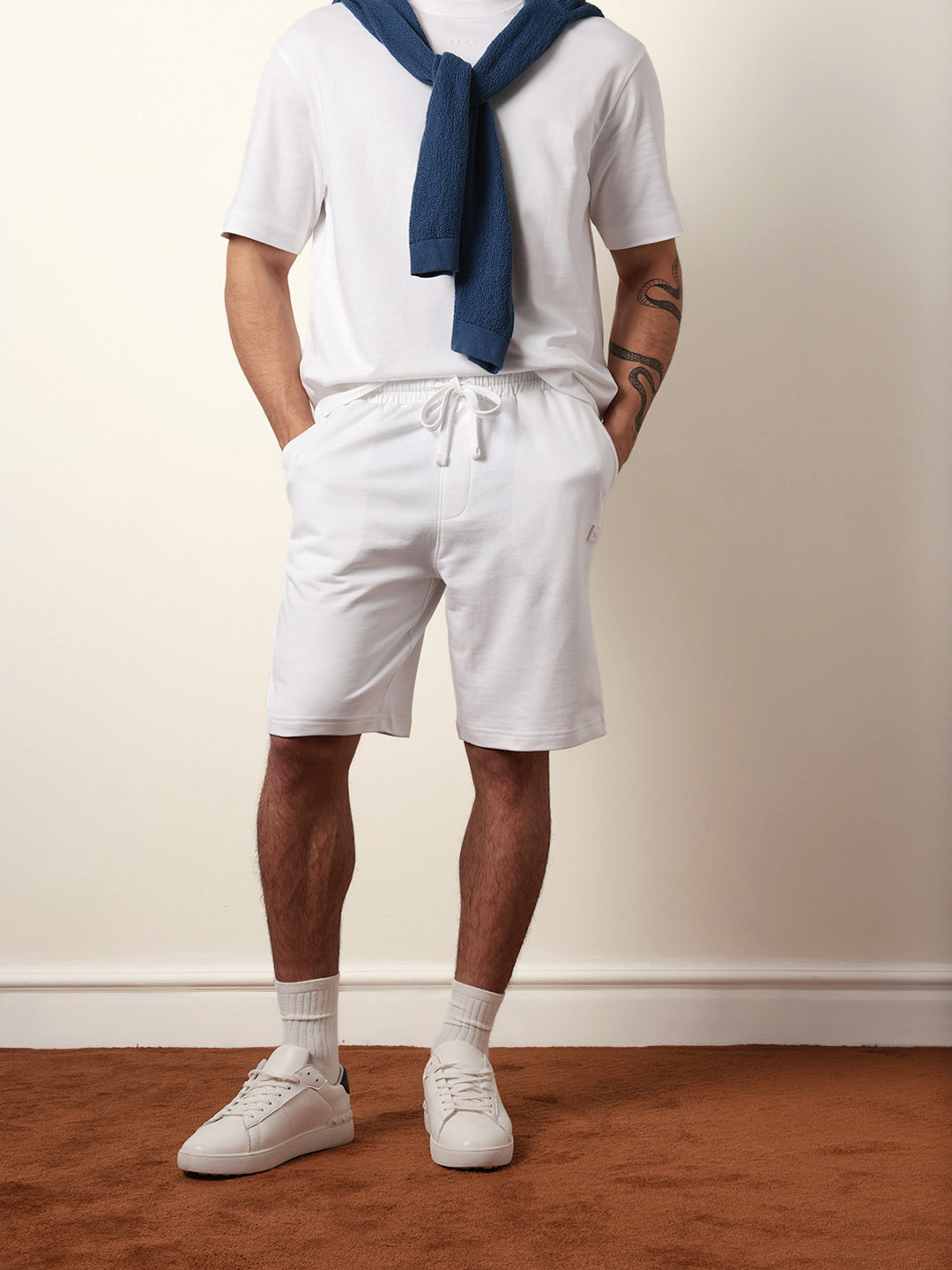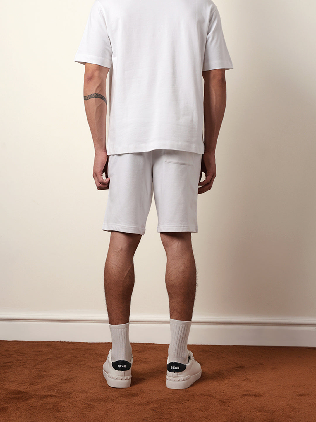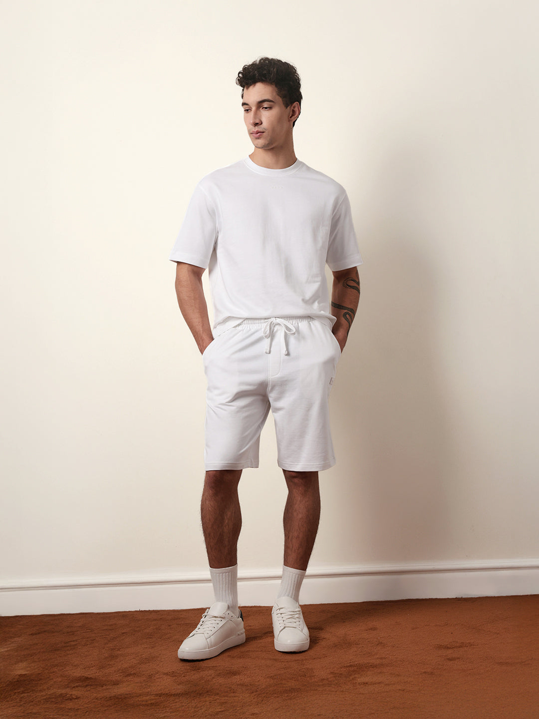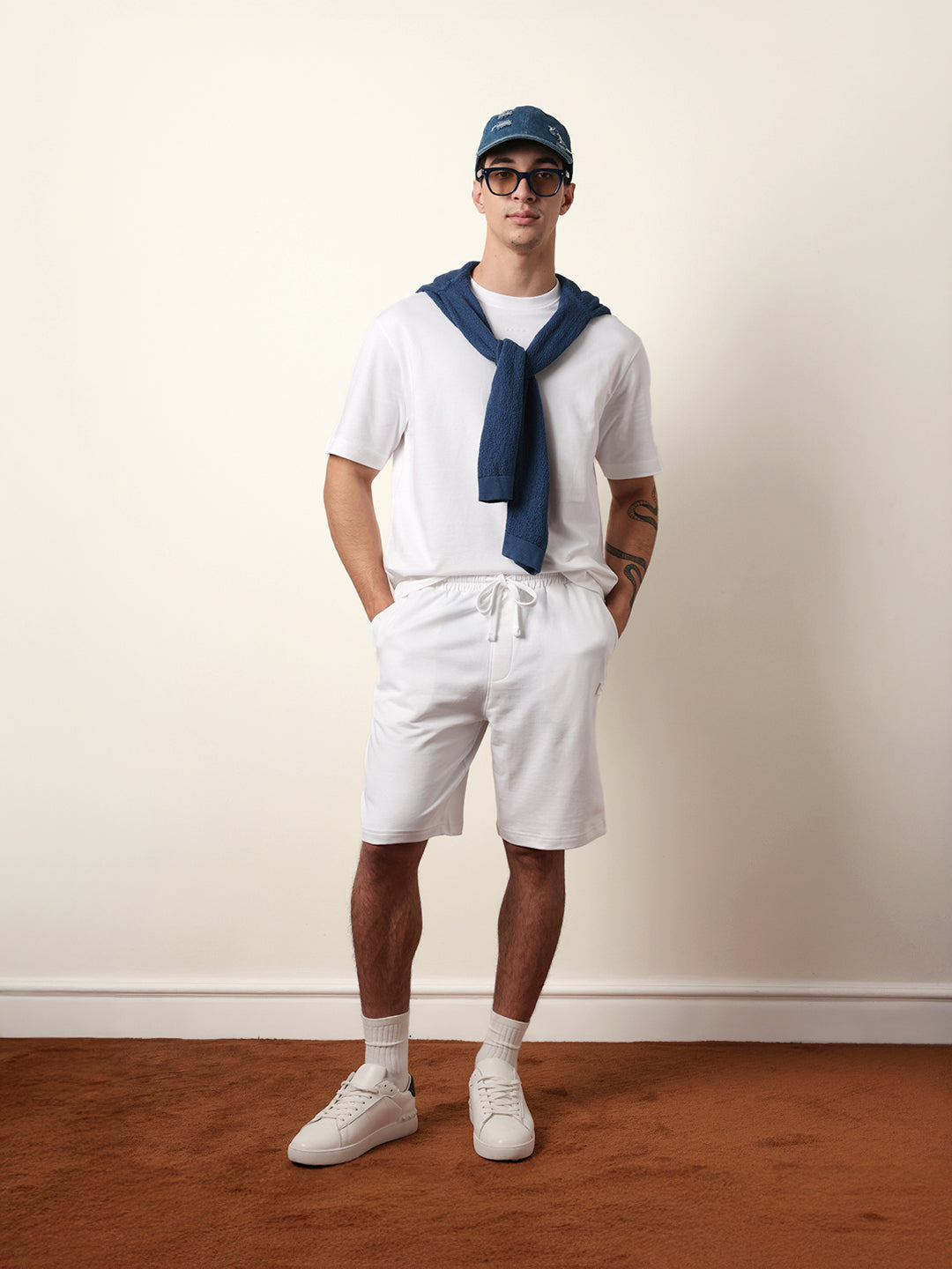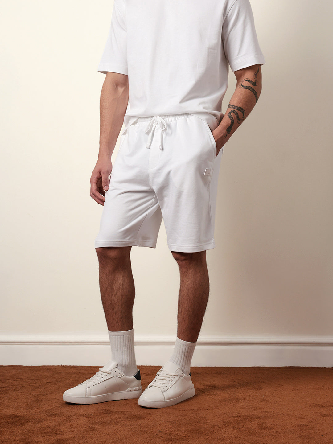 White Solid Relaxed-Fit Sporty Casual Shorts with Elasticated Waistband