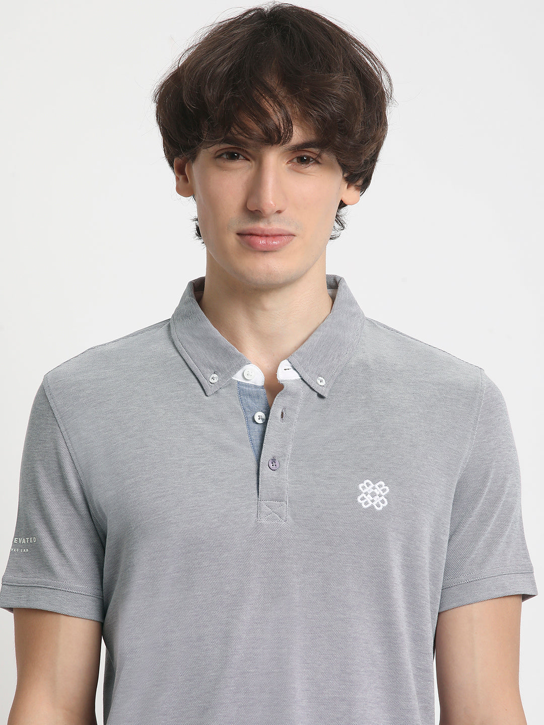 Men Purple Solid Regular Fit Polo Collar T-shirt