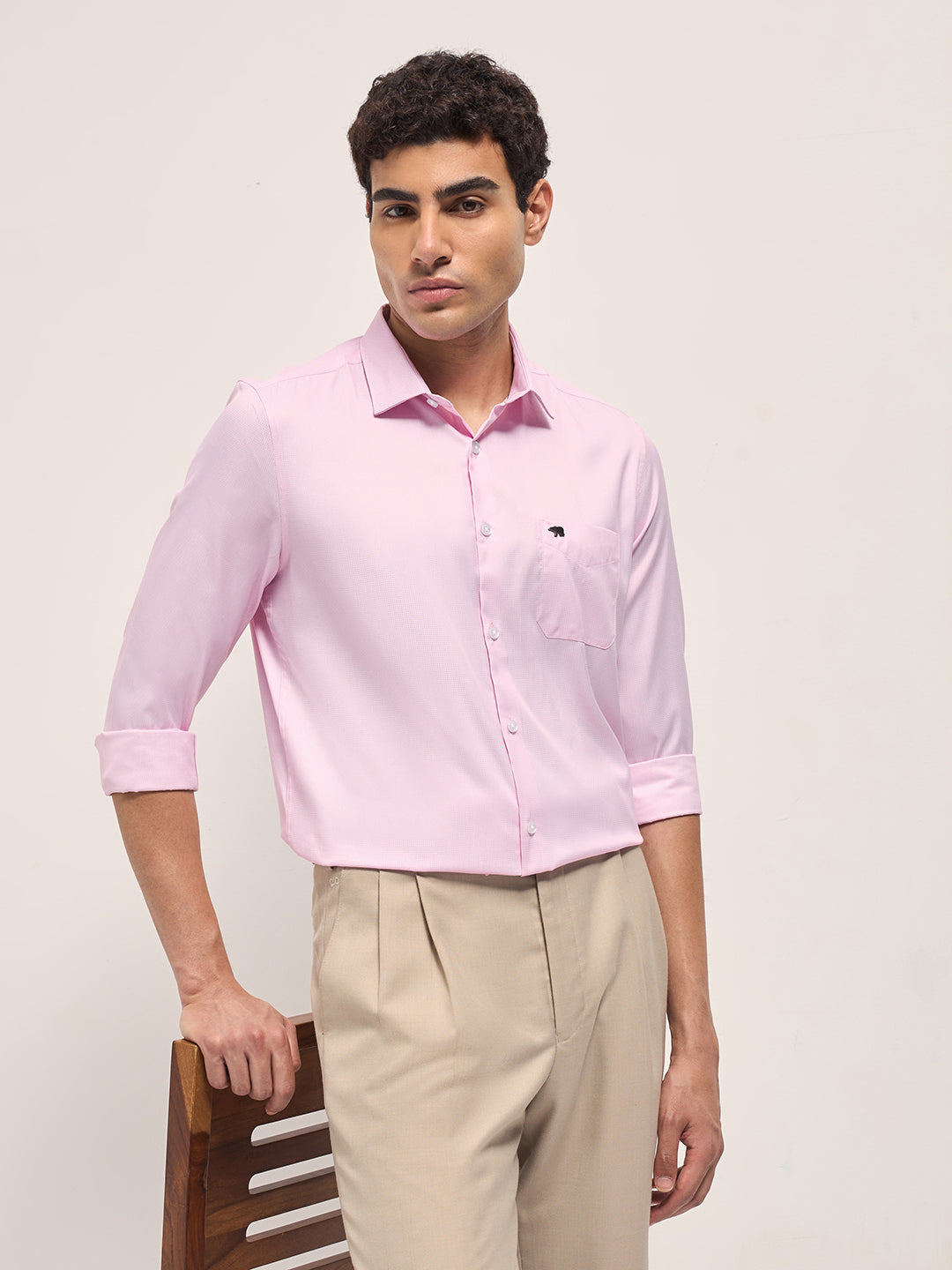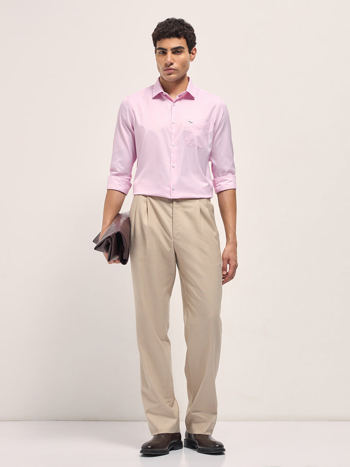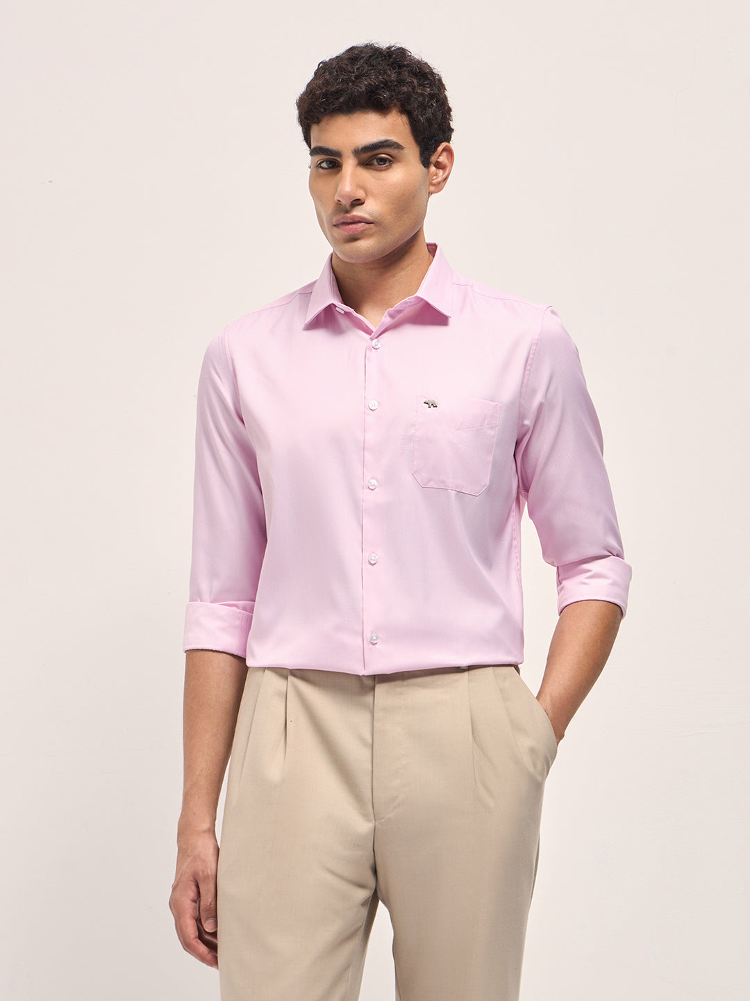 Light Pink Woven Design Tailored Fit Formal Shirt