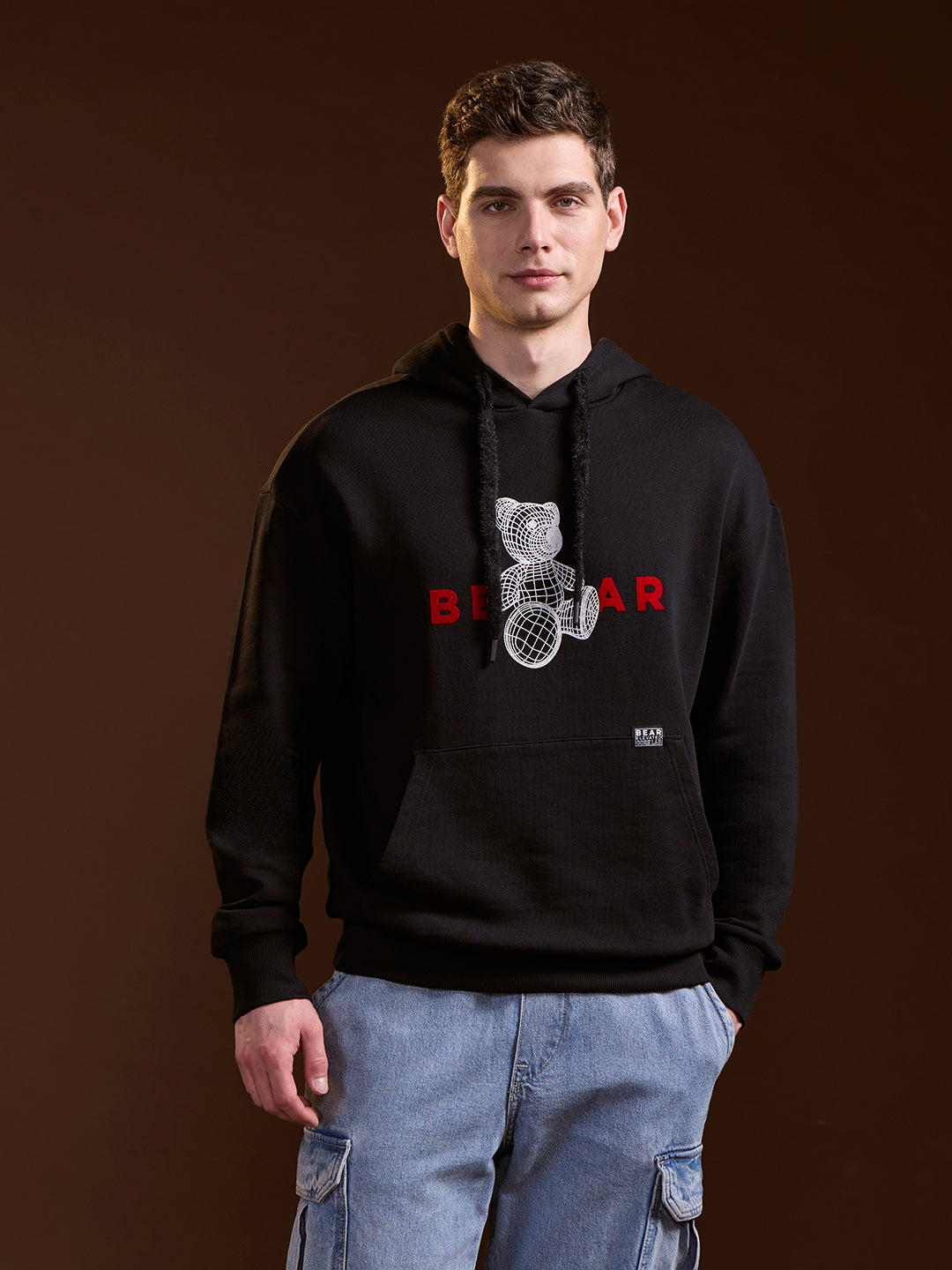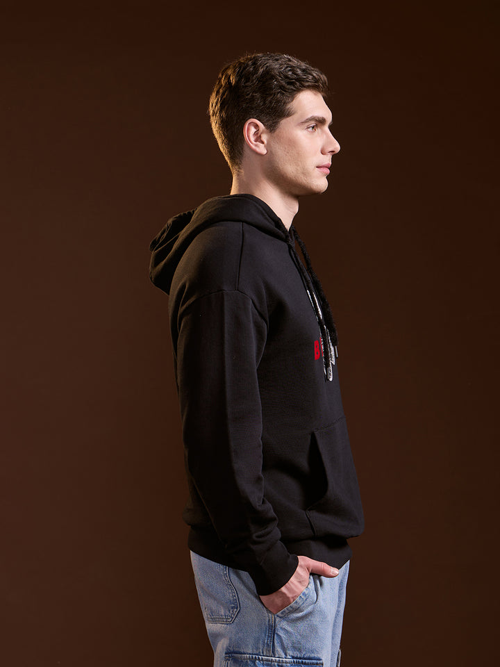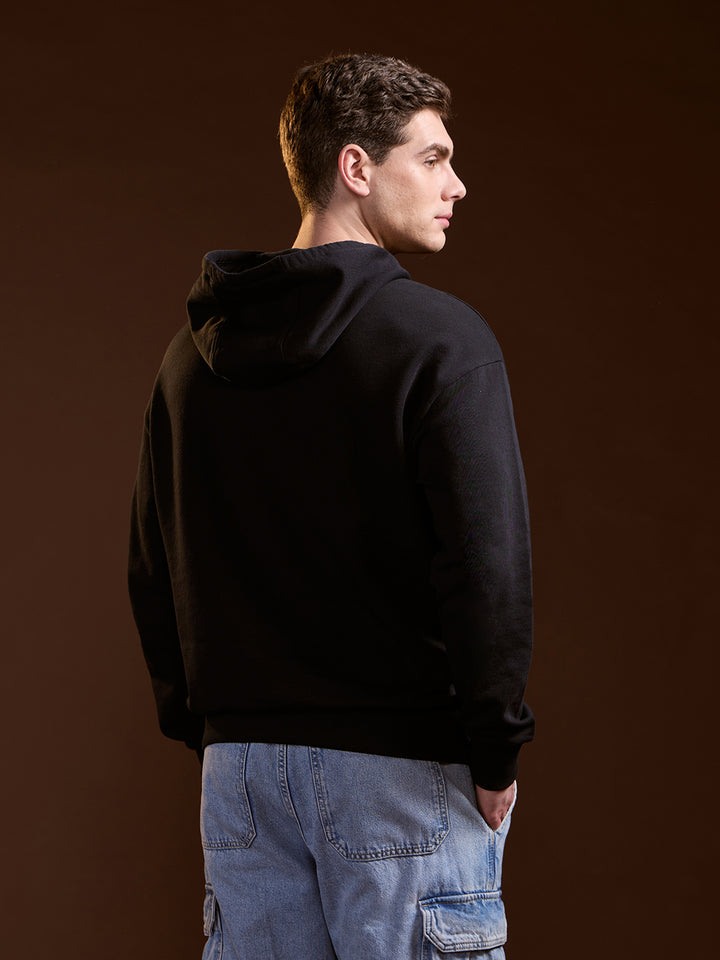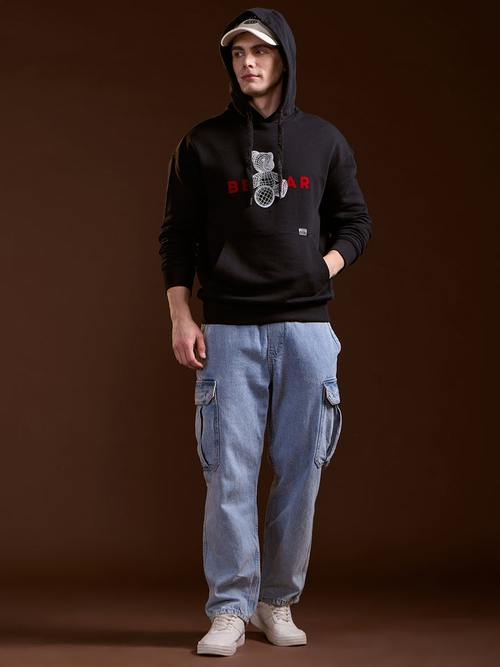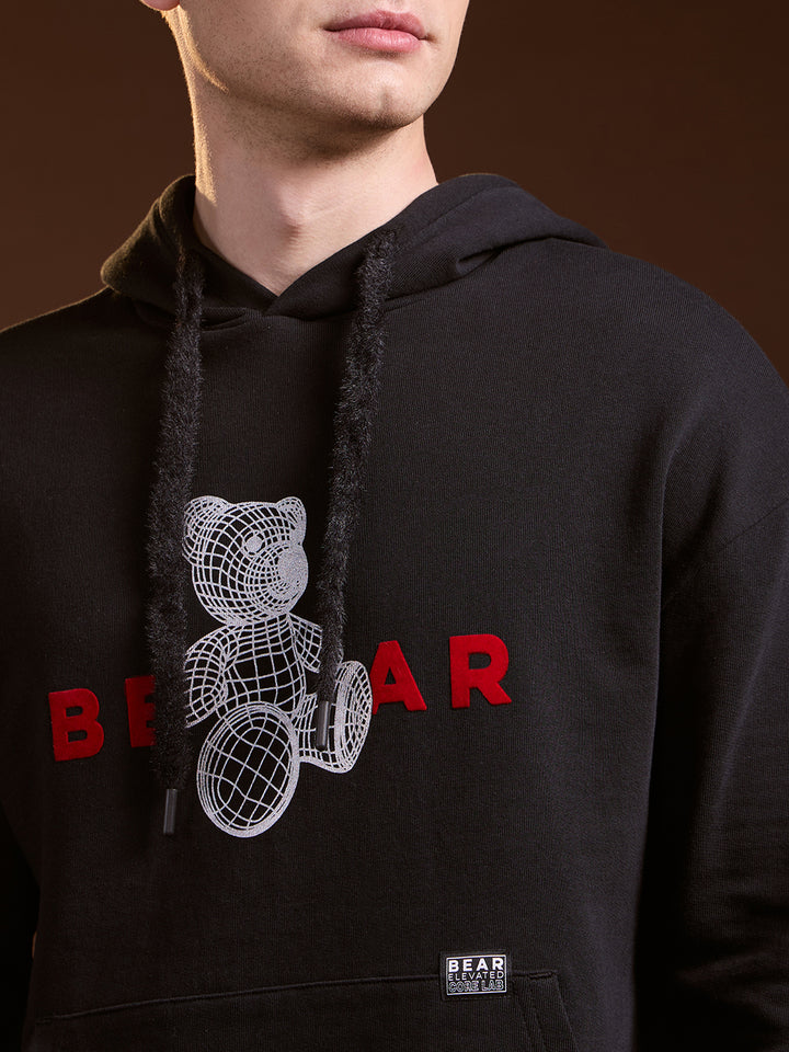 Black 3D Graphic Bear Design Relax Fit Hoodie