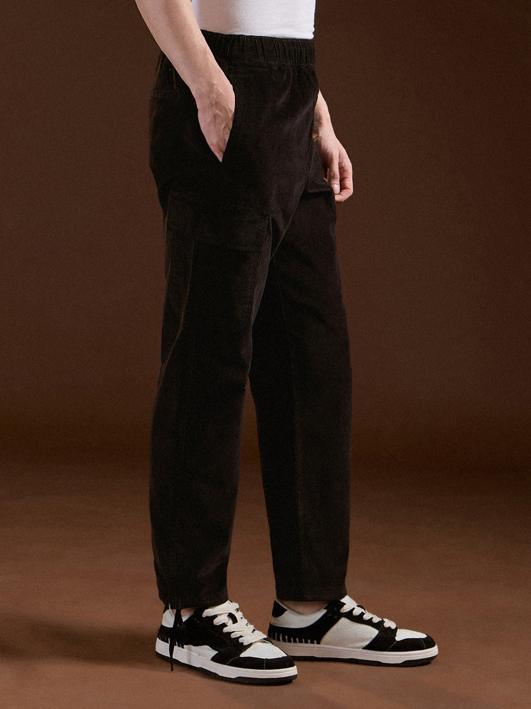 Black Solid Baggy Fit Stylish Corduroy Cargo Pant