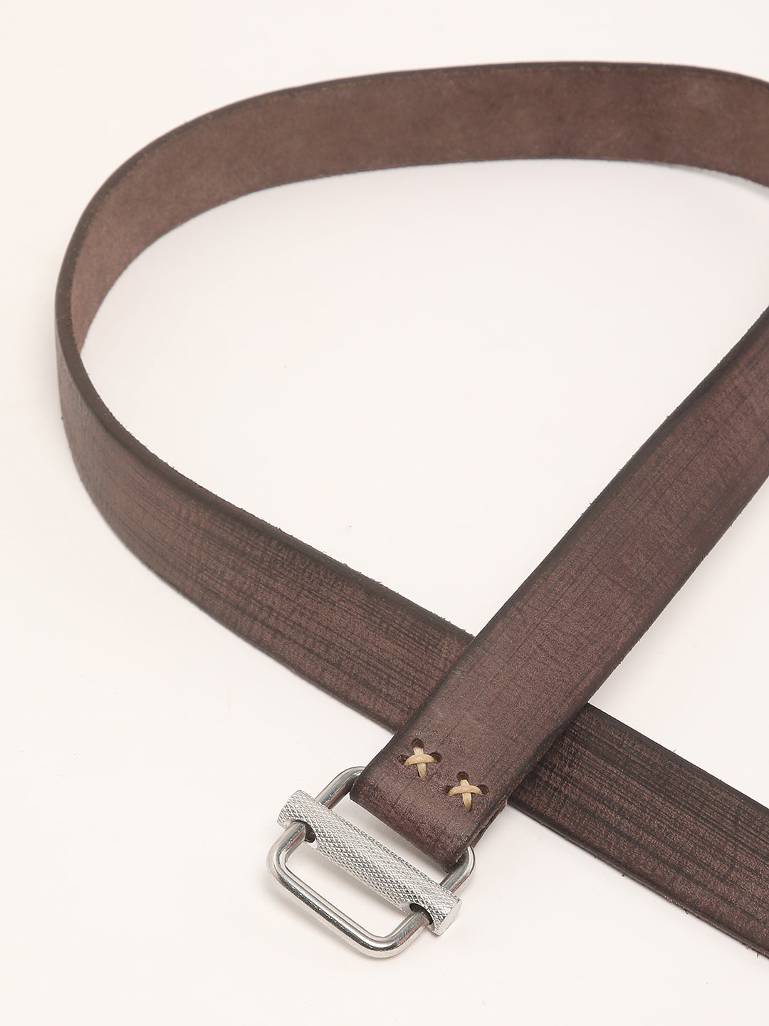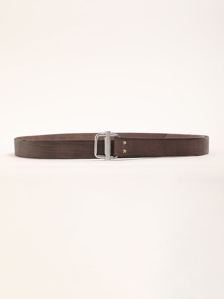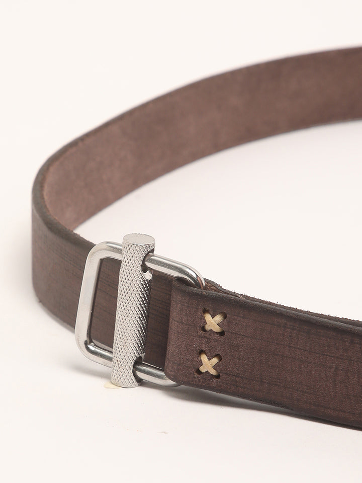 Men Brown Pure Leather Slim Width Casual Belt with D-Ring Closure
