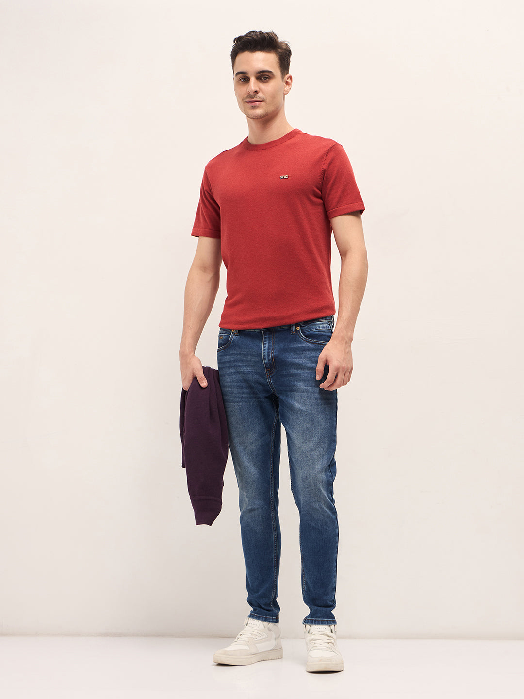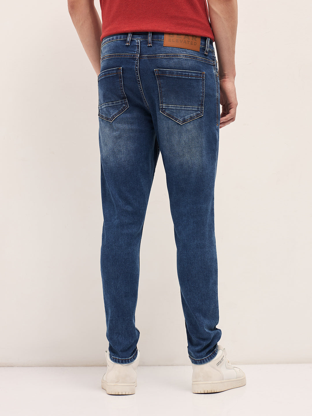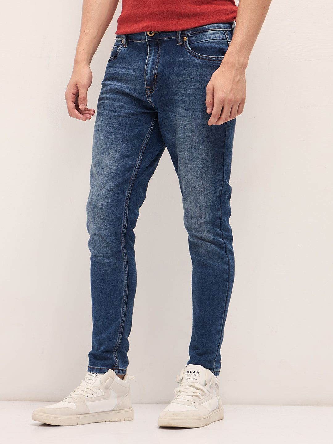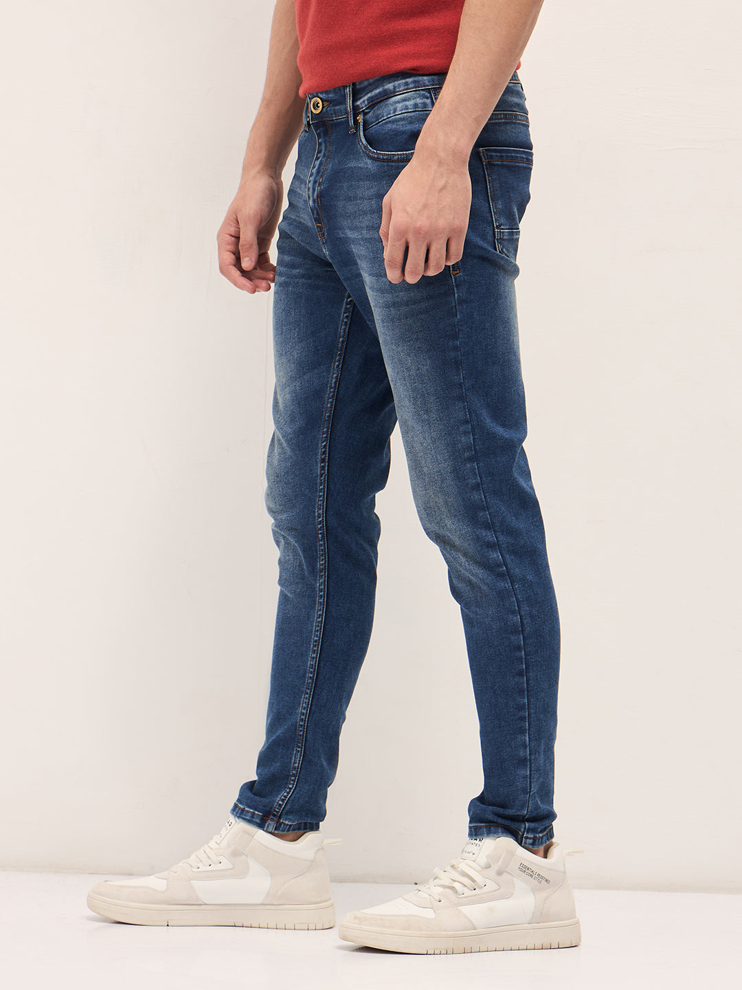 Dark Blue with Light Fade Mid-Rise Skinny Fit Jeans
