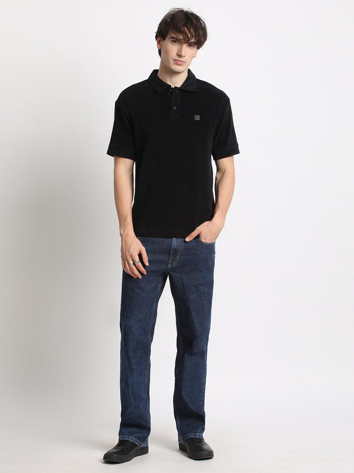 Men's Black Solid Relaxed Fit Polo T-shirt