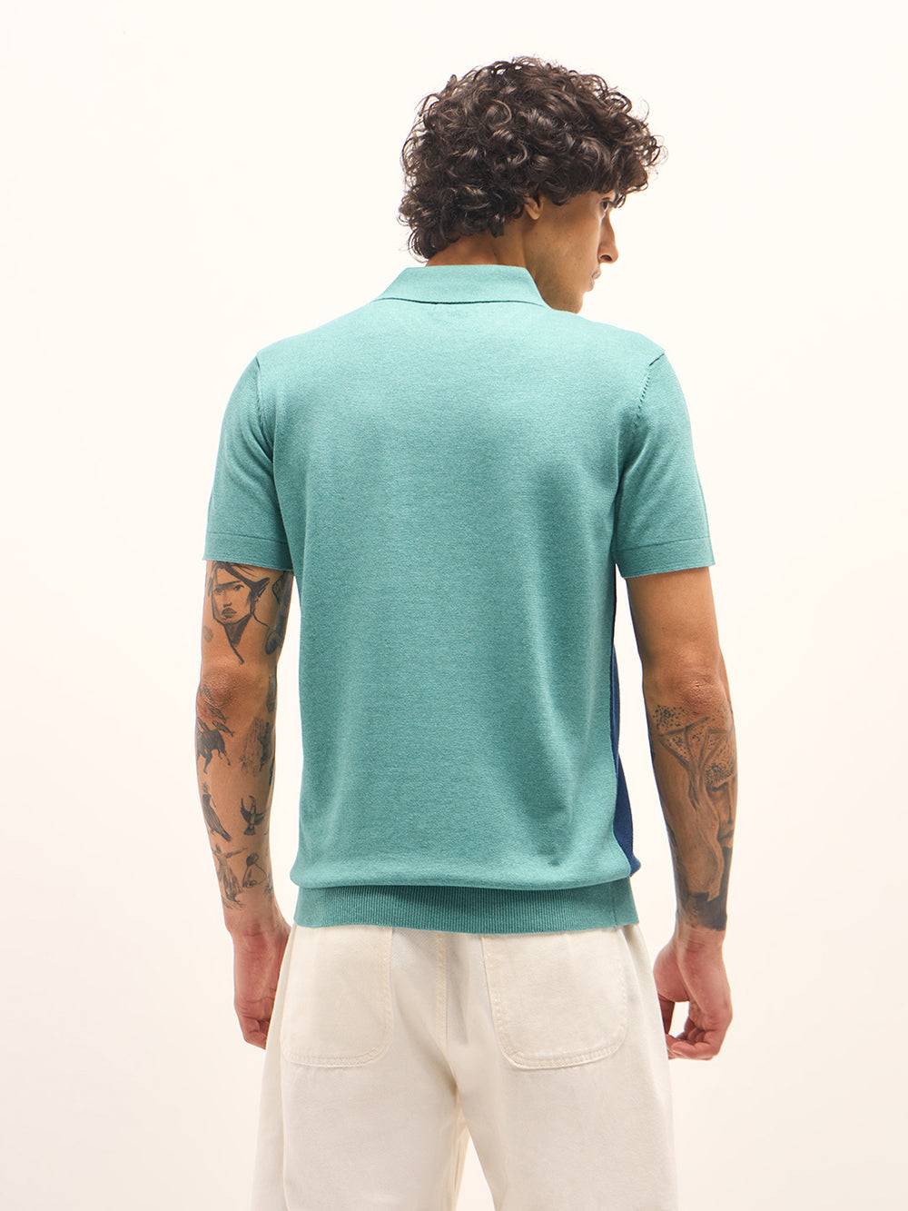 Multicolor Colorblock Flat Knit Polo with Regular Fit and Metal Logo Detail