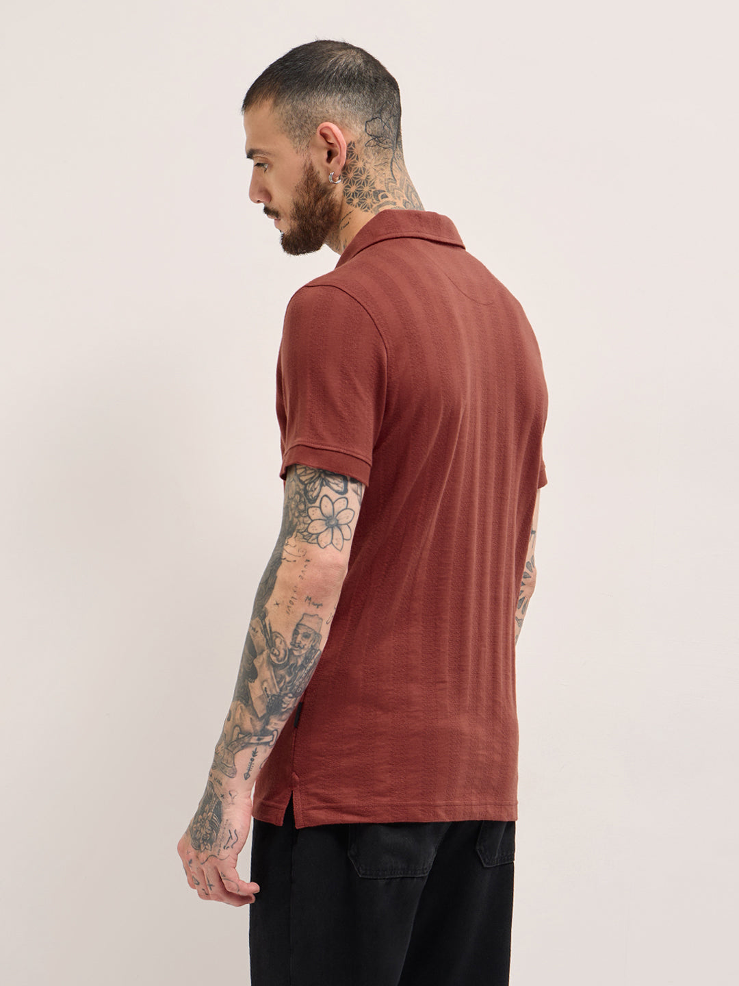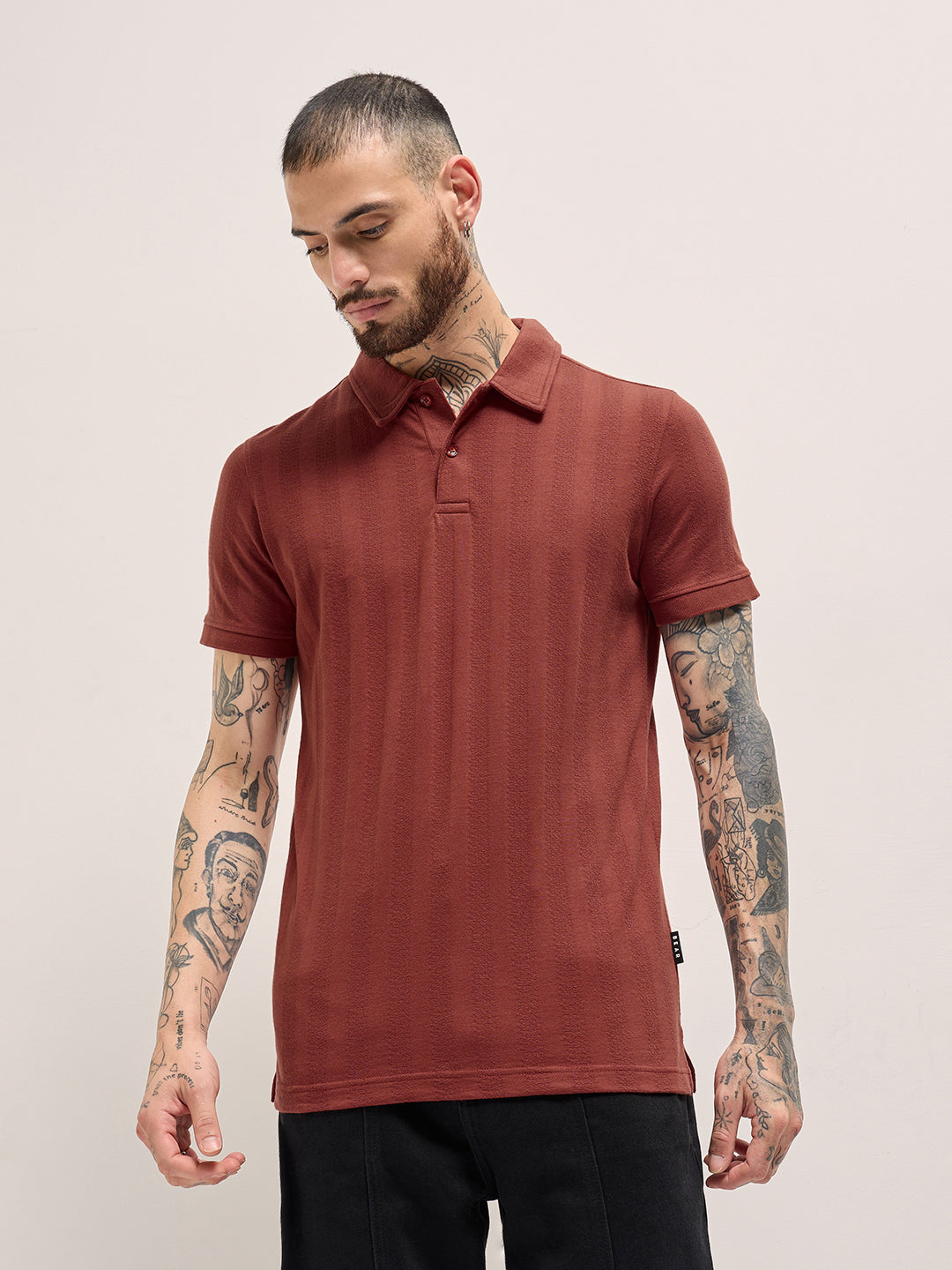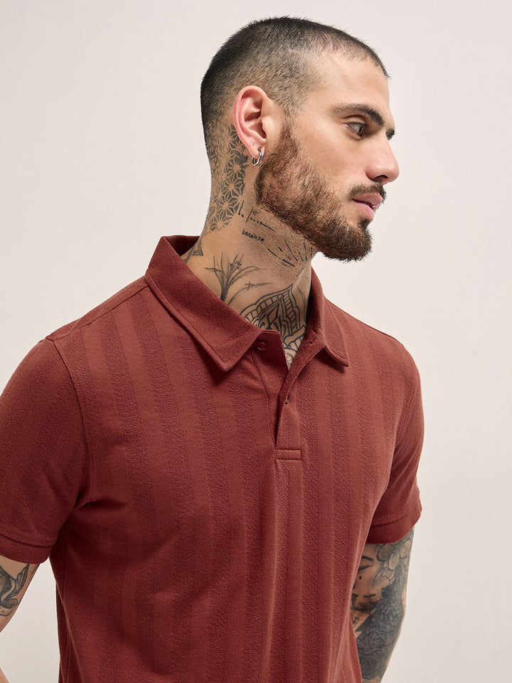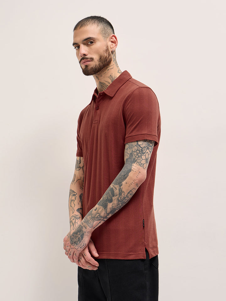 Rust Texture Self-Striped Design Slim Fit Polo