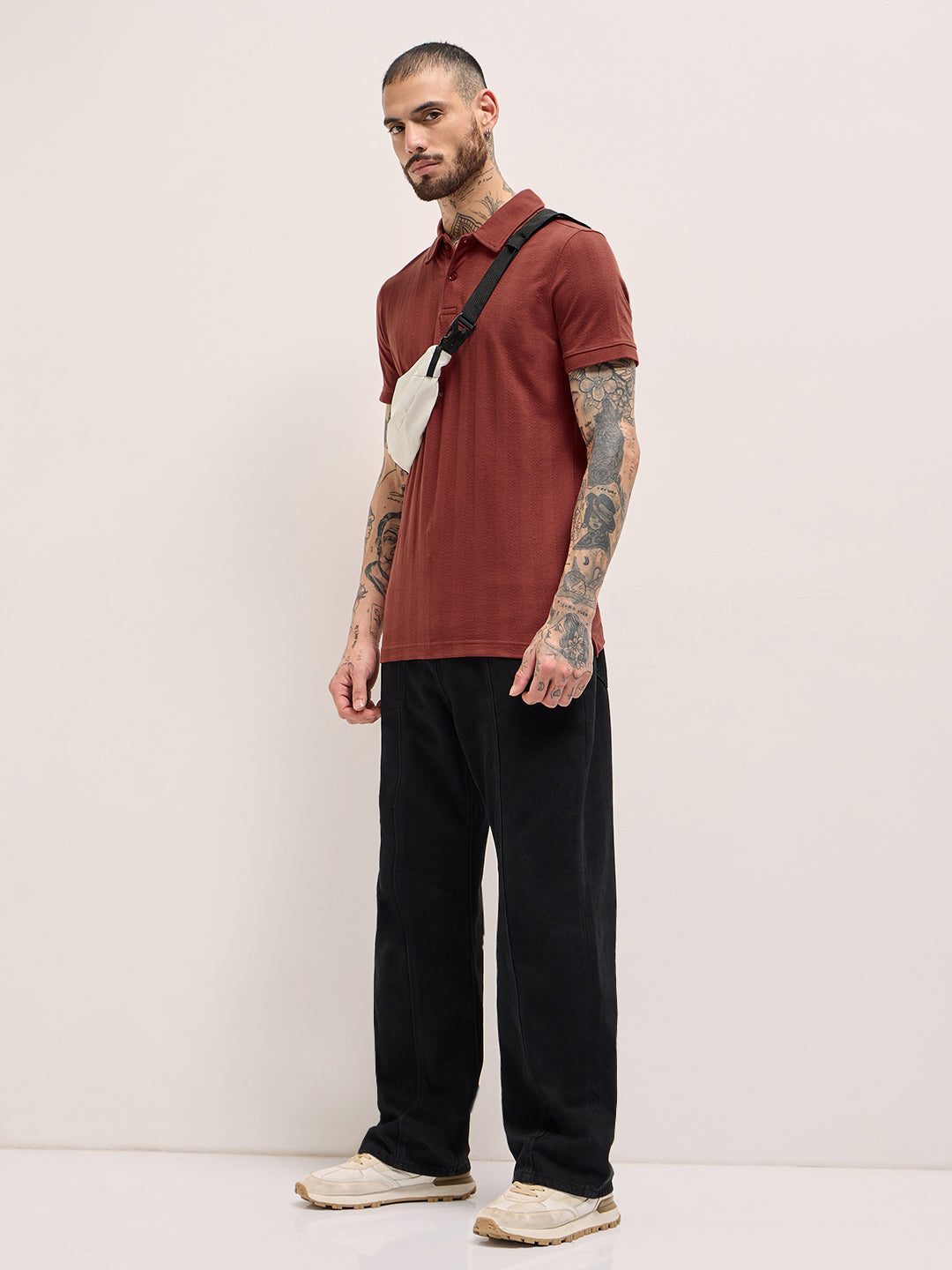 - Collar: Polo collar with button placket