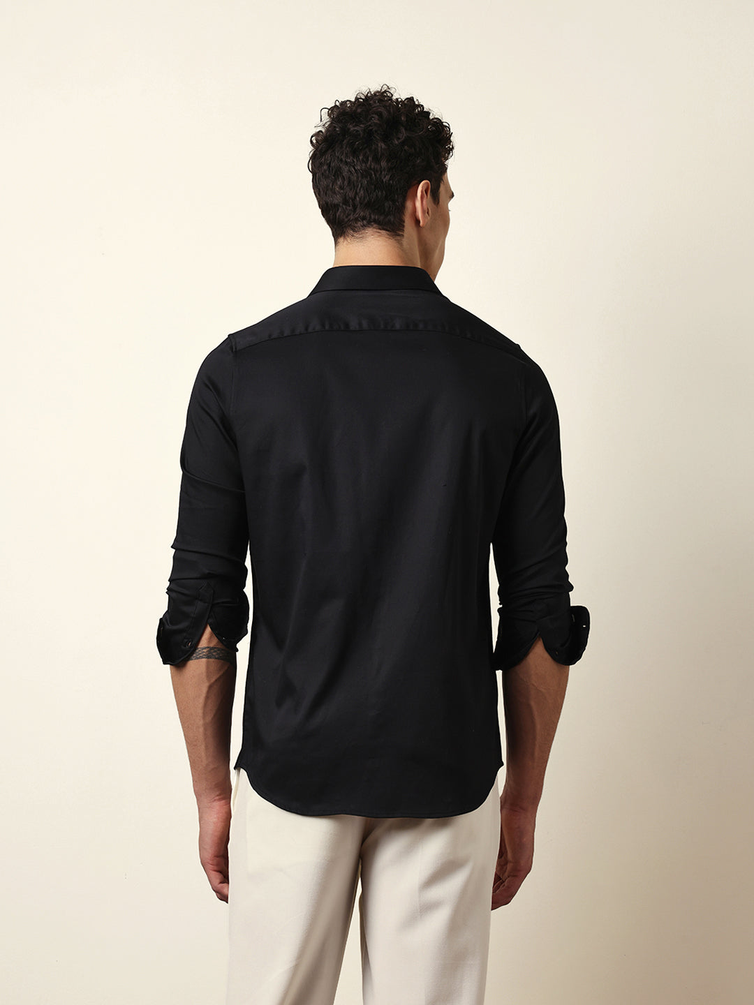 Style Note: This black shirt with a refined crest embroidery adds a touch of luxury — perfect to pair with tailored trousers or jeans for a sharp, modern look.