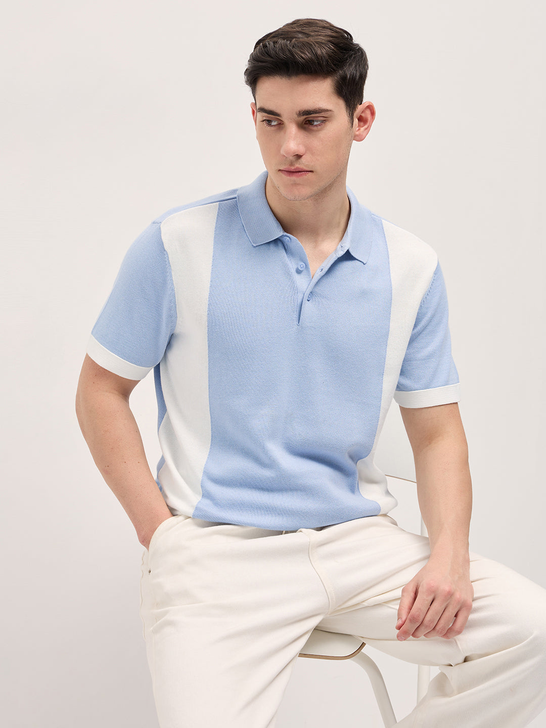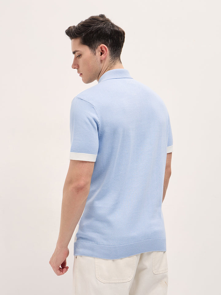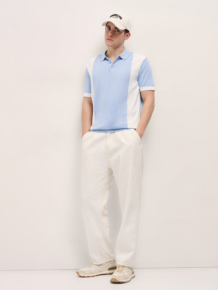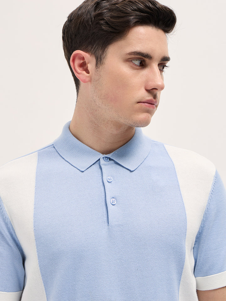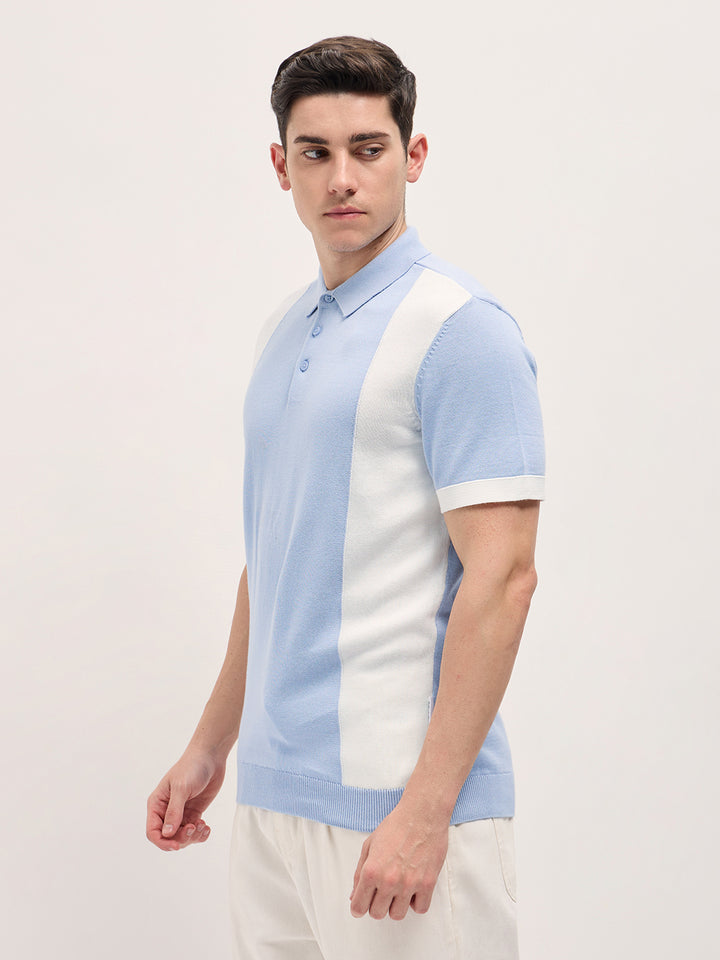 Blue & White Color Block Knit Design Regular Fit Polo
