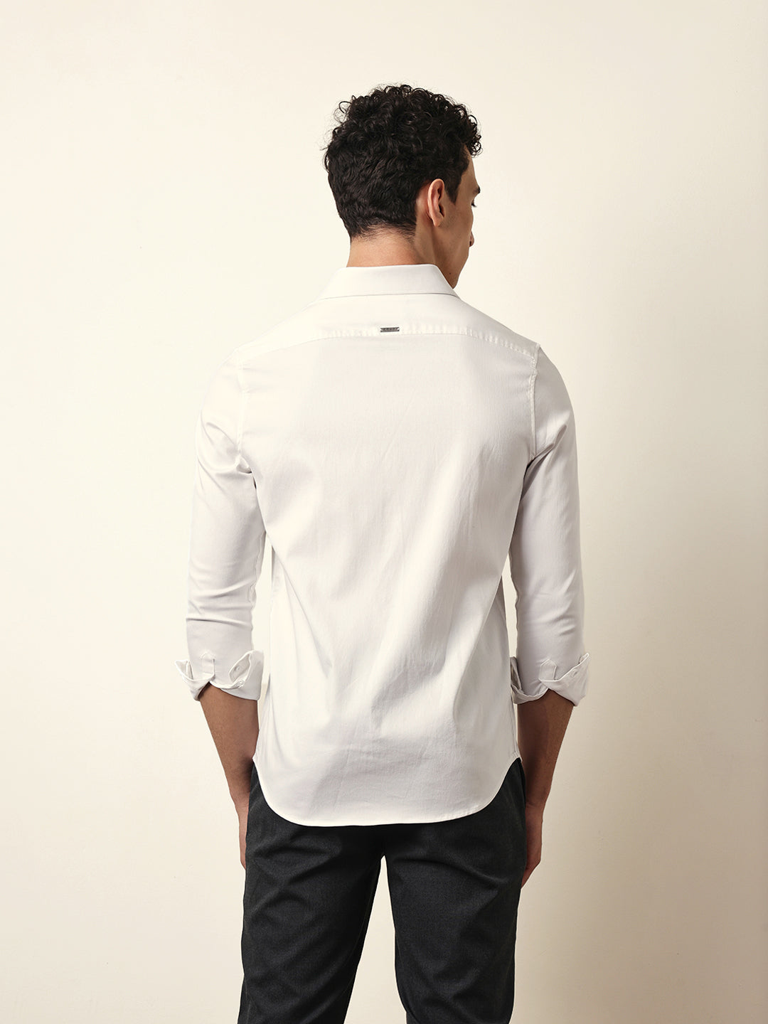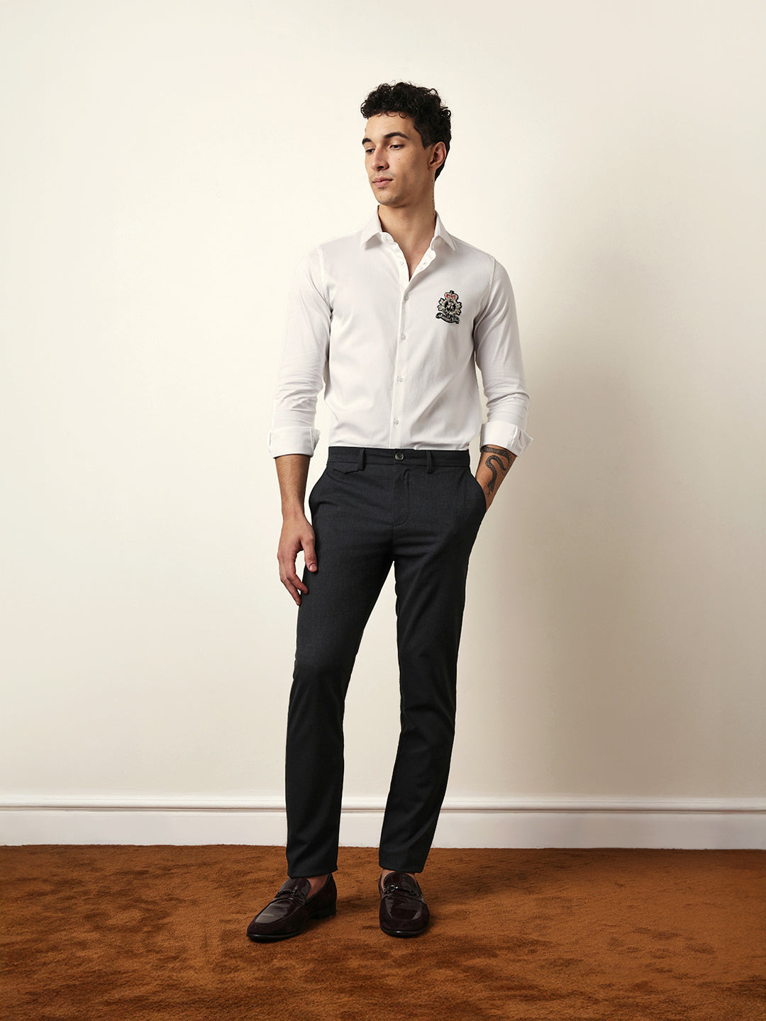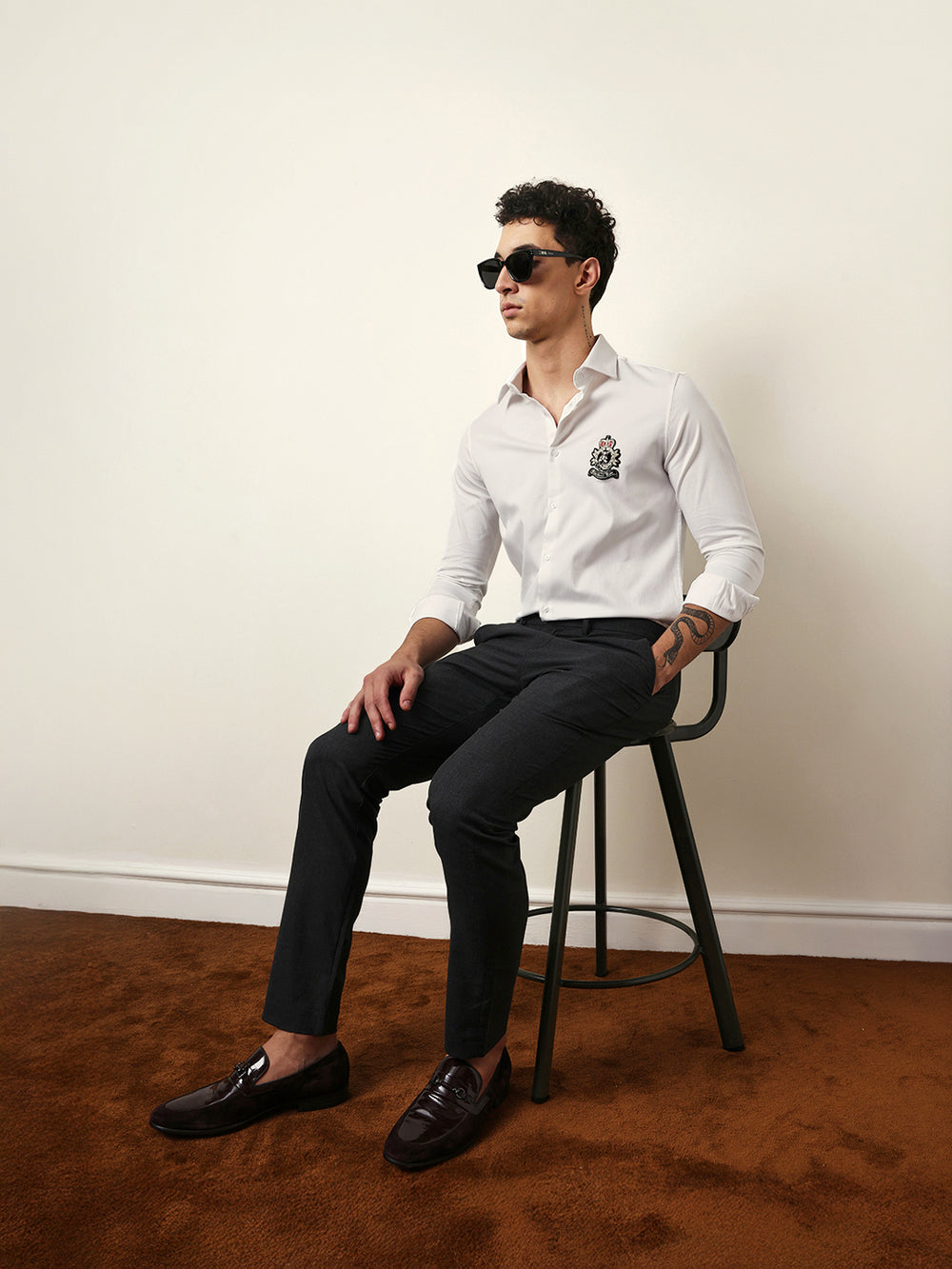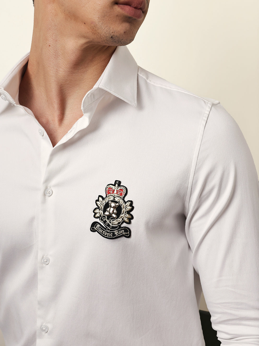 White Tailored Fit Regal Crest Embroidery Formal Party Shirt