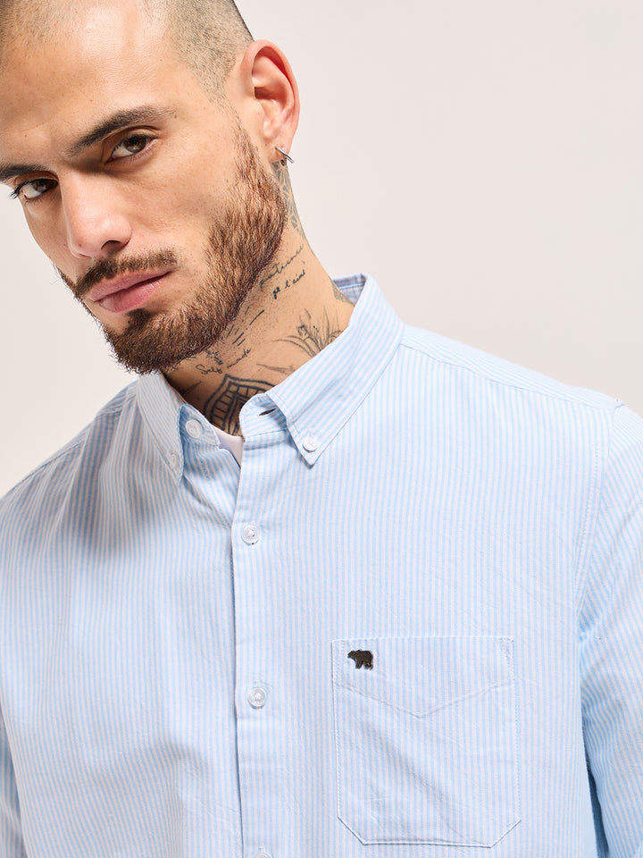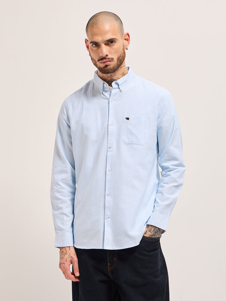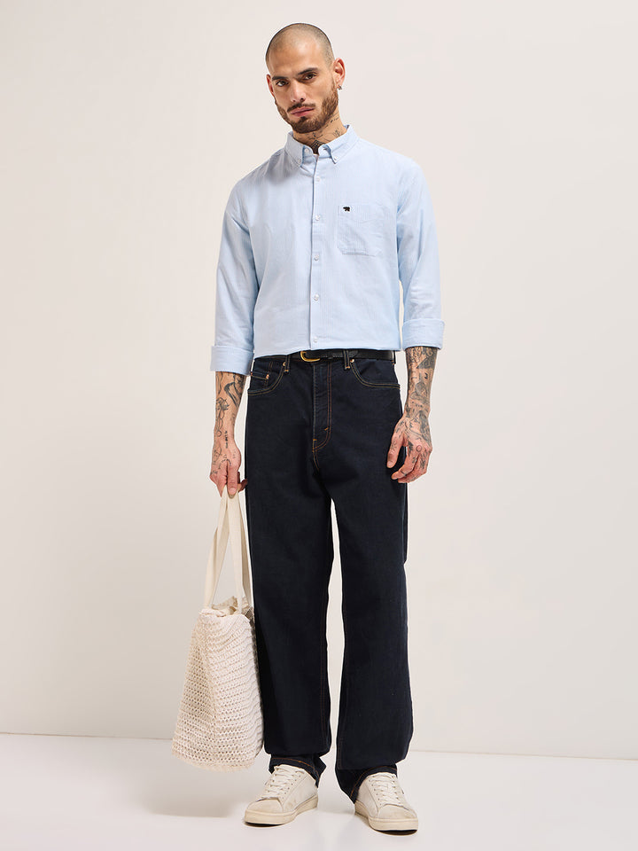 Blue Vertical Pin Stripes Slim Fit Casual Shirt