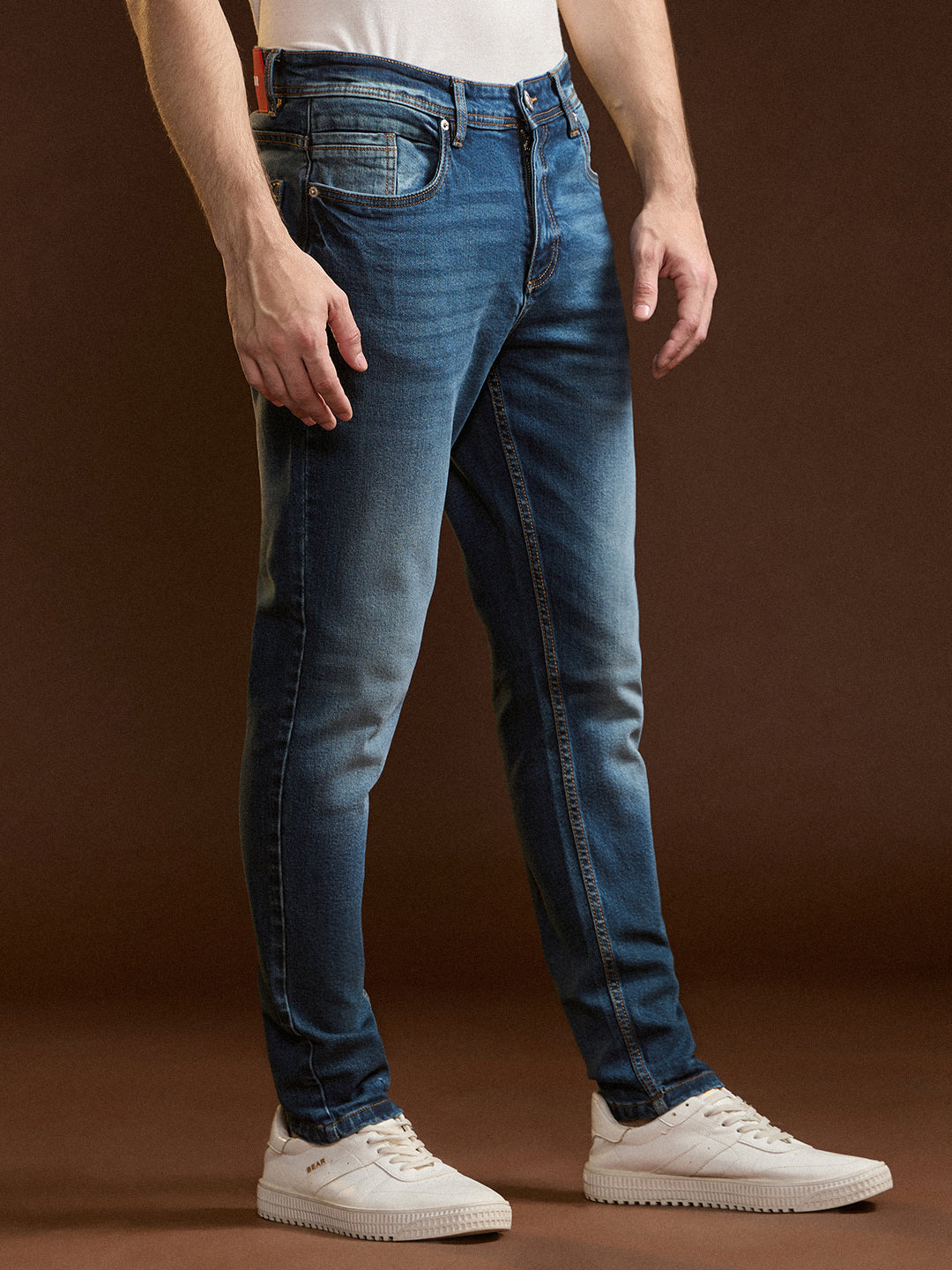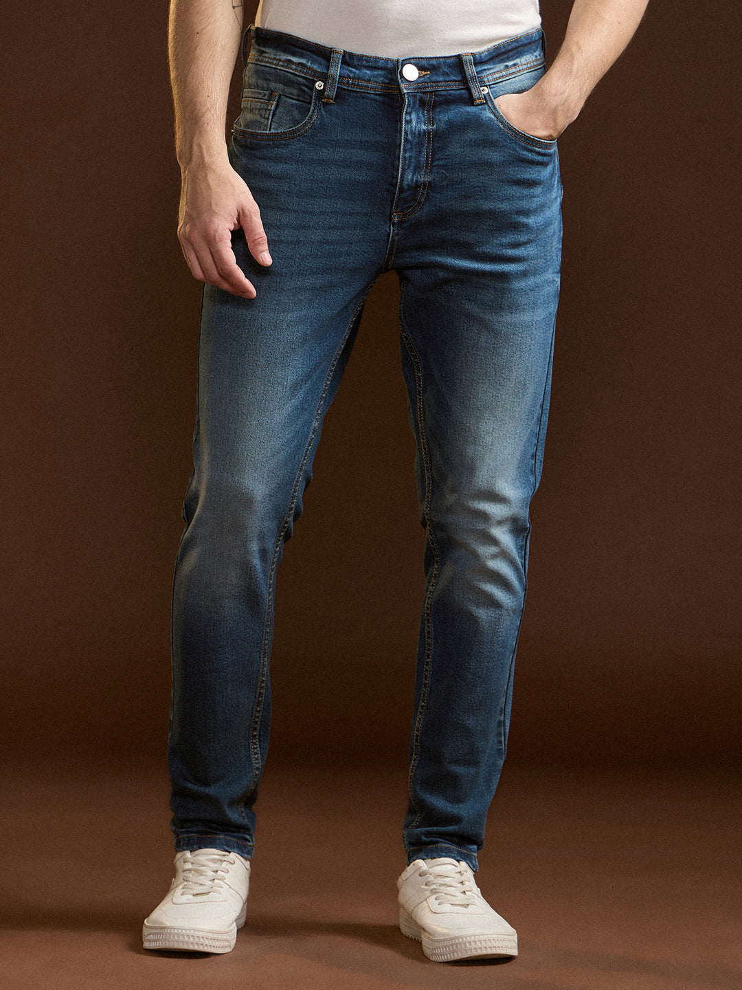 Mid Blue with Mid Fade Mid-Rise Slim Fit Jeans
