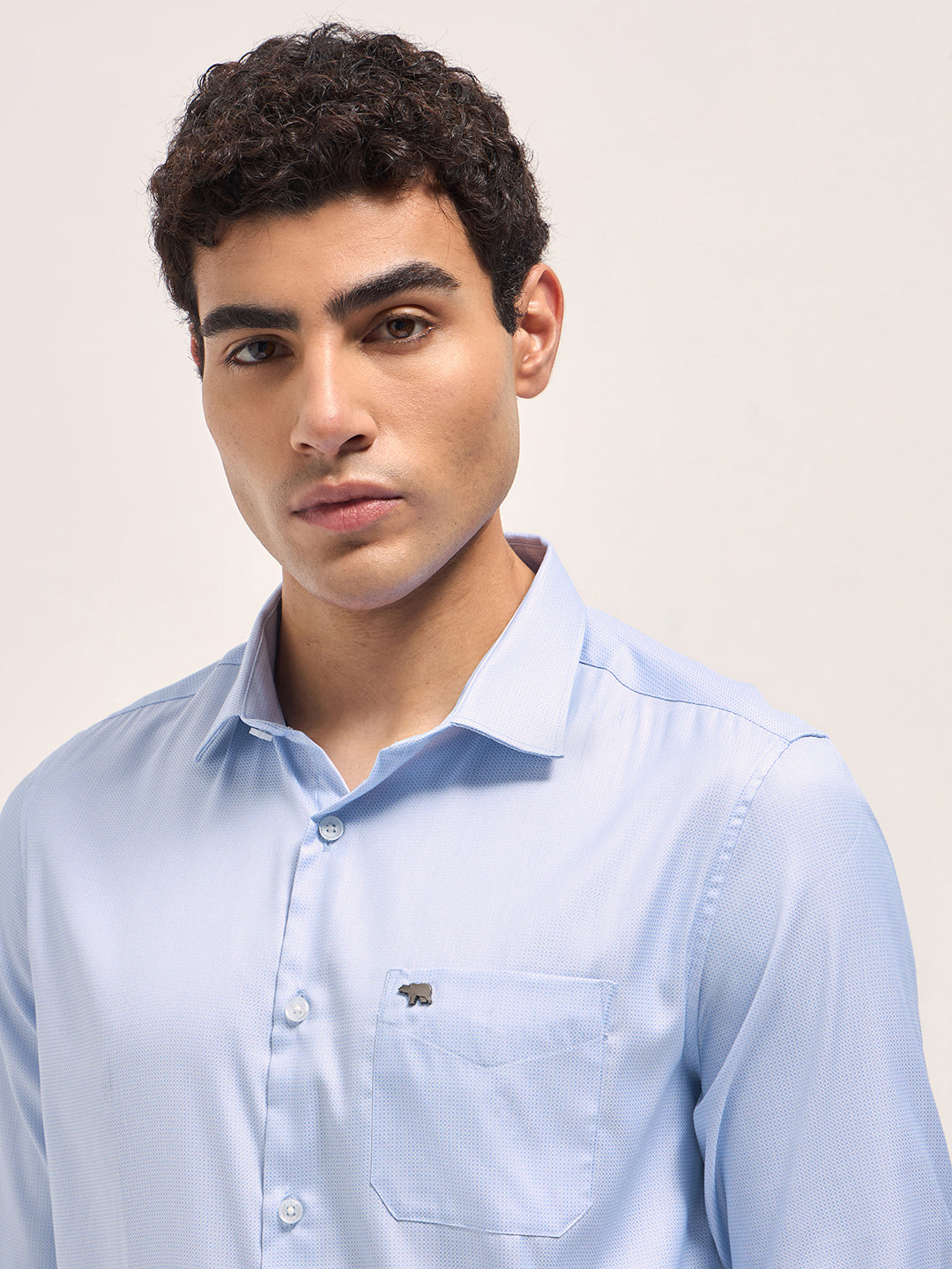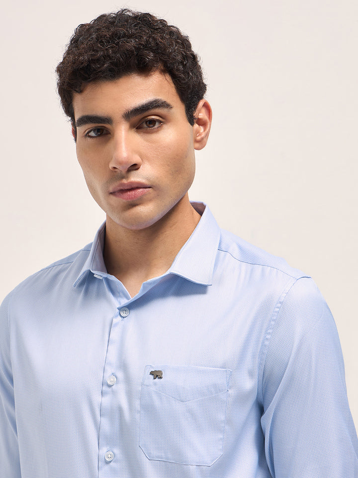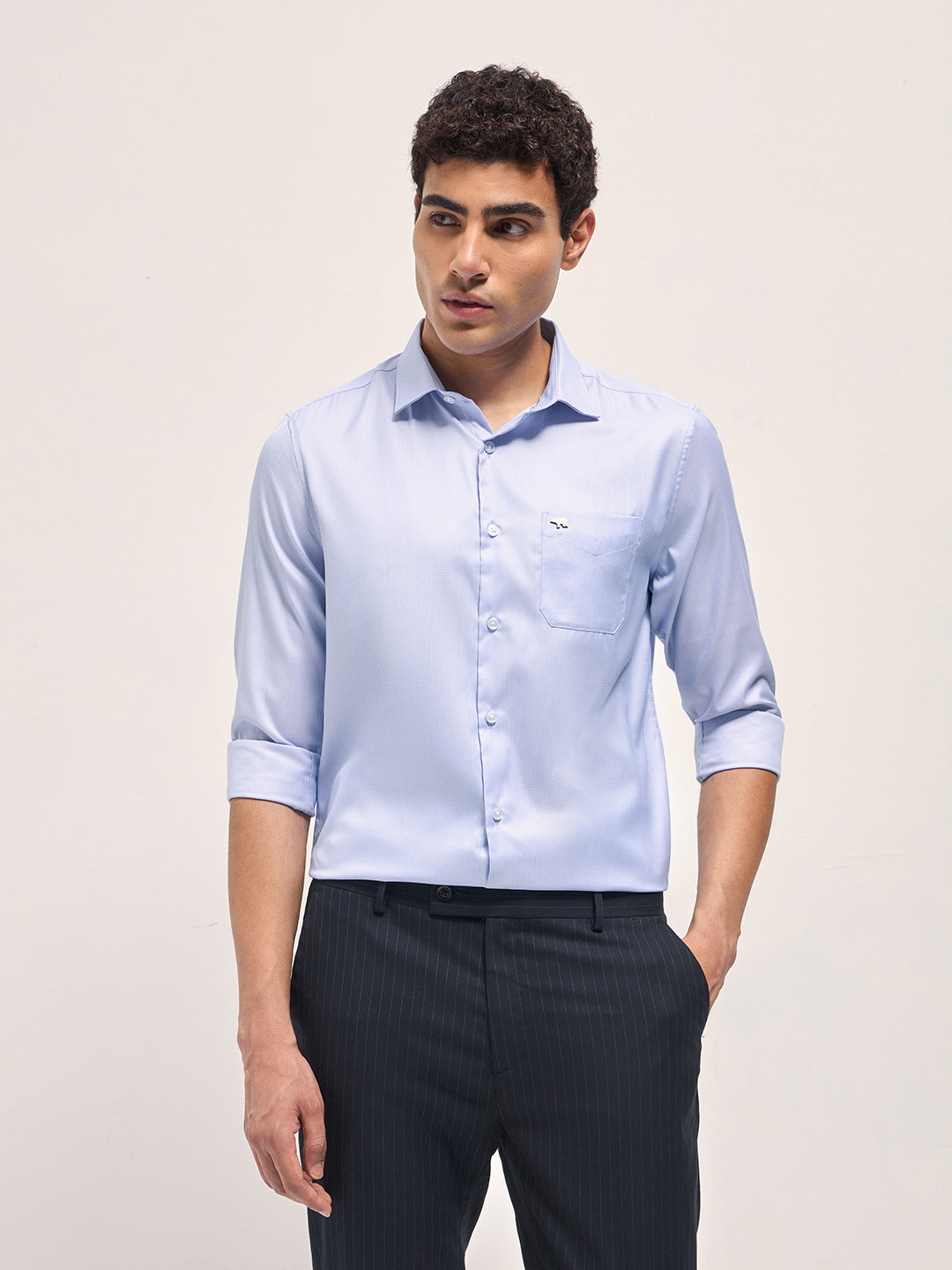 Light Blue Woven Design Tailored Fit Formal Shirt