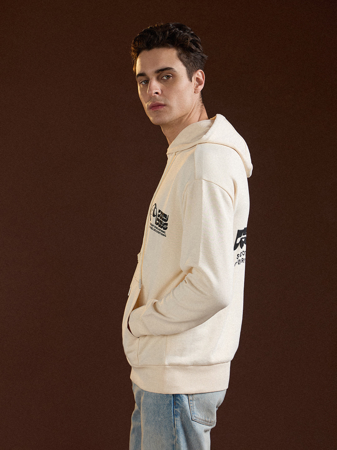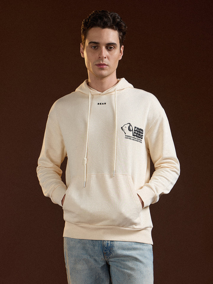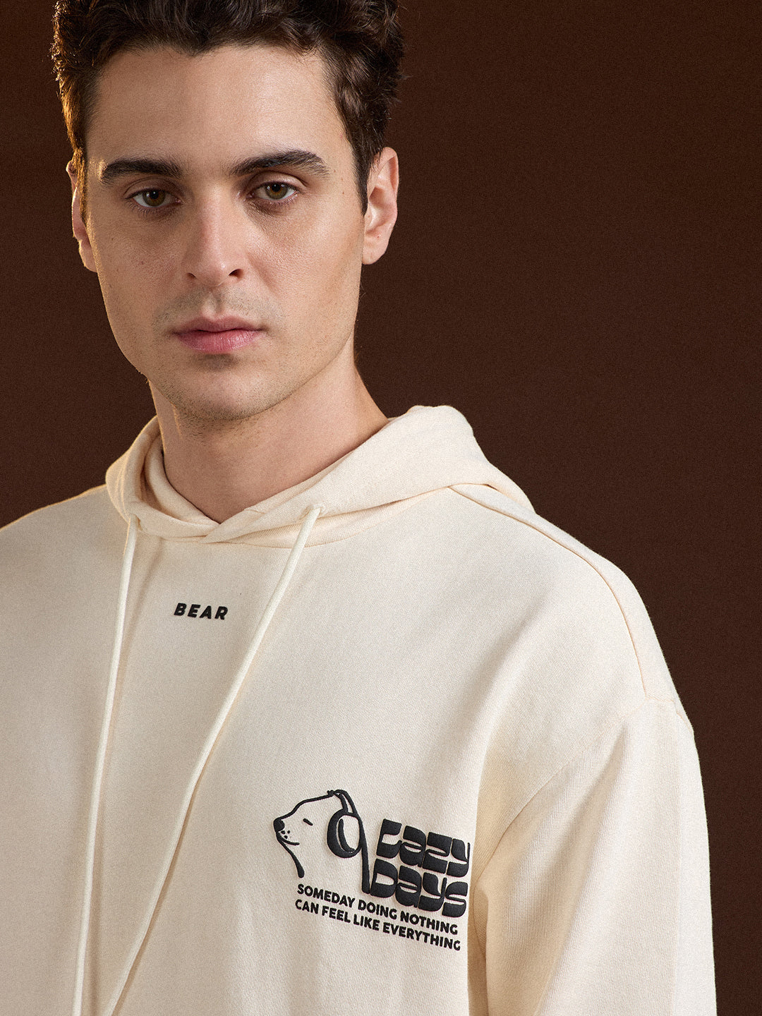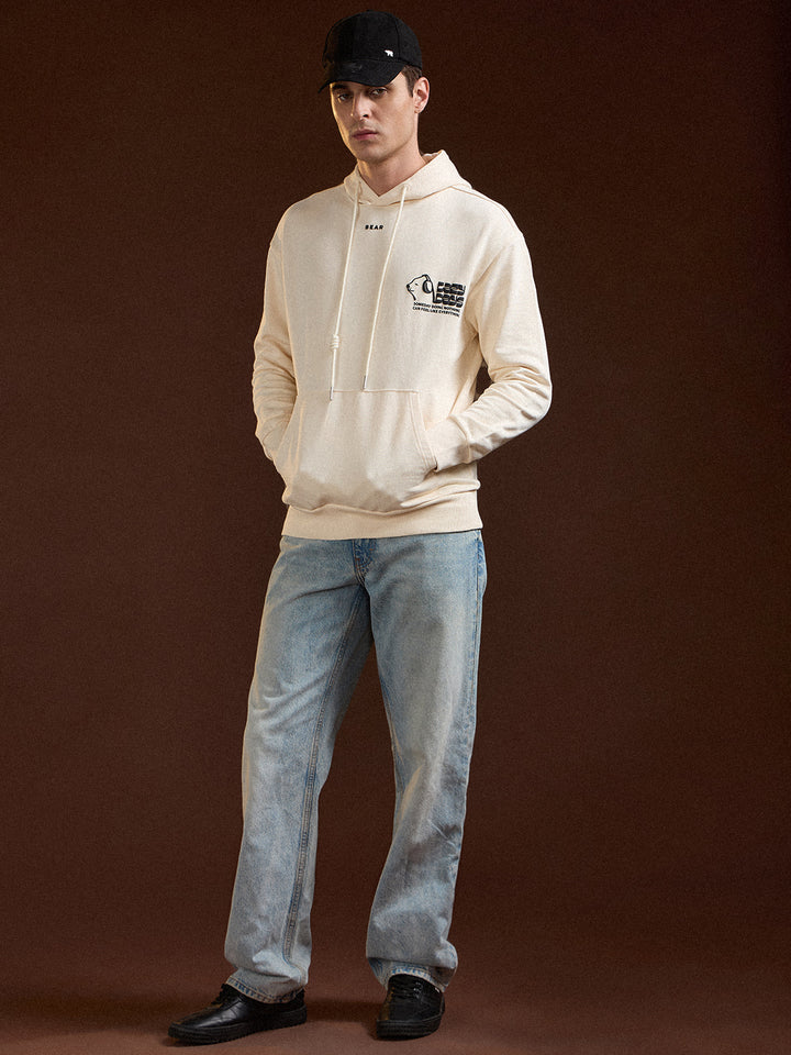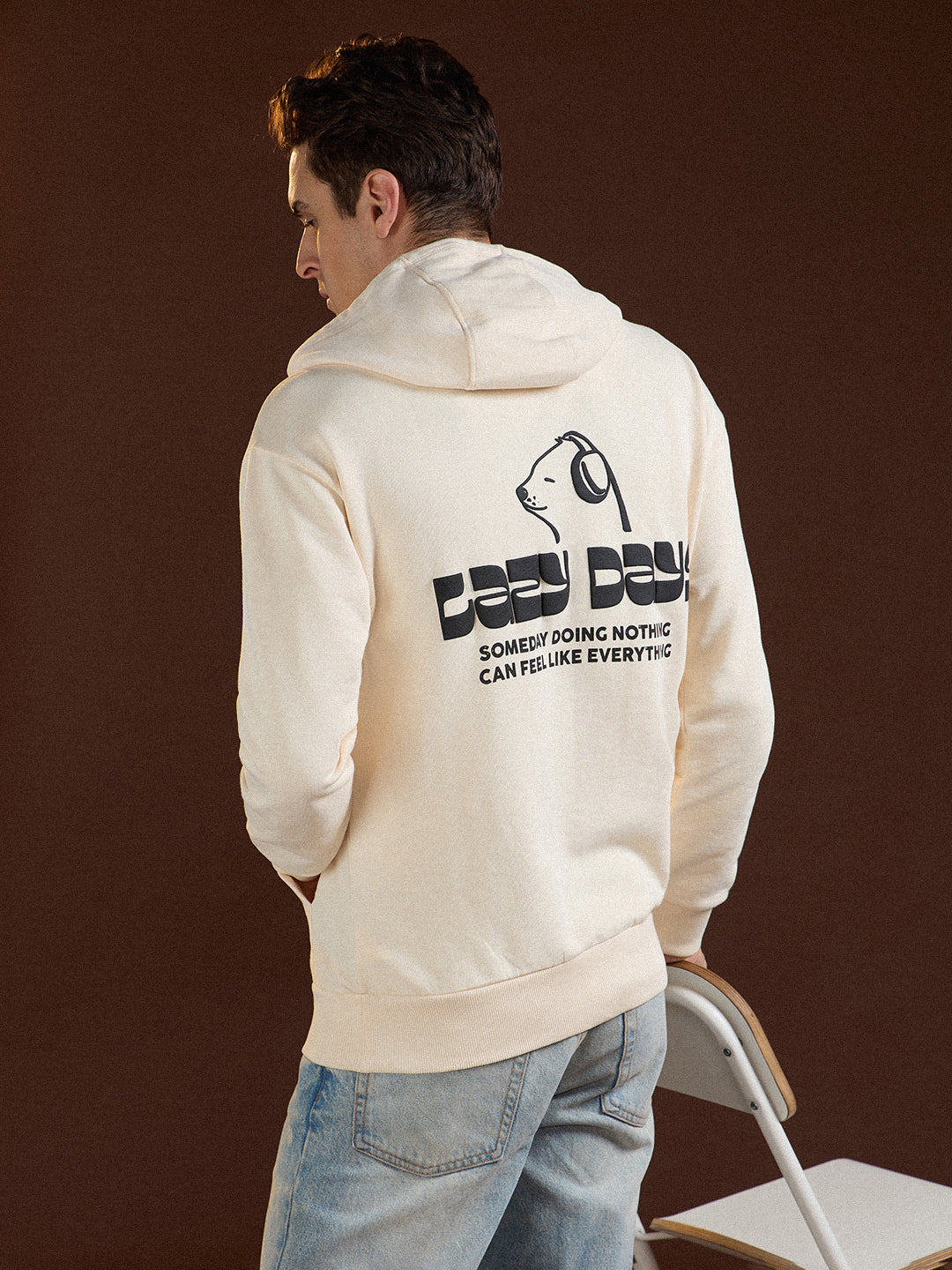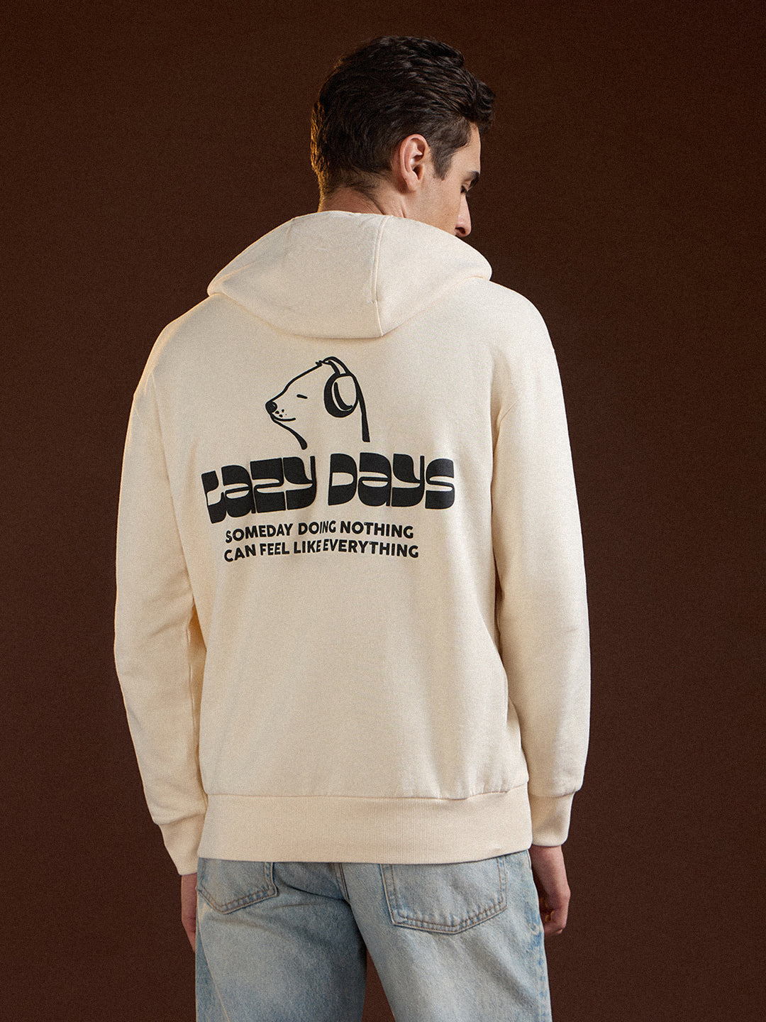 Beige Relaxed Fit Hoodie with "Lazy Days" Graphic Print
