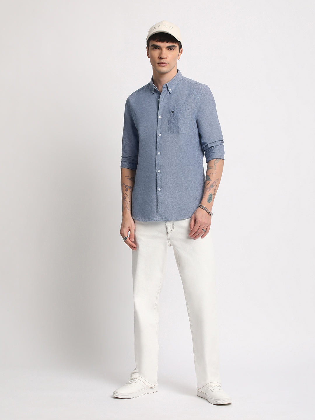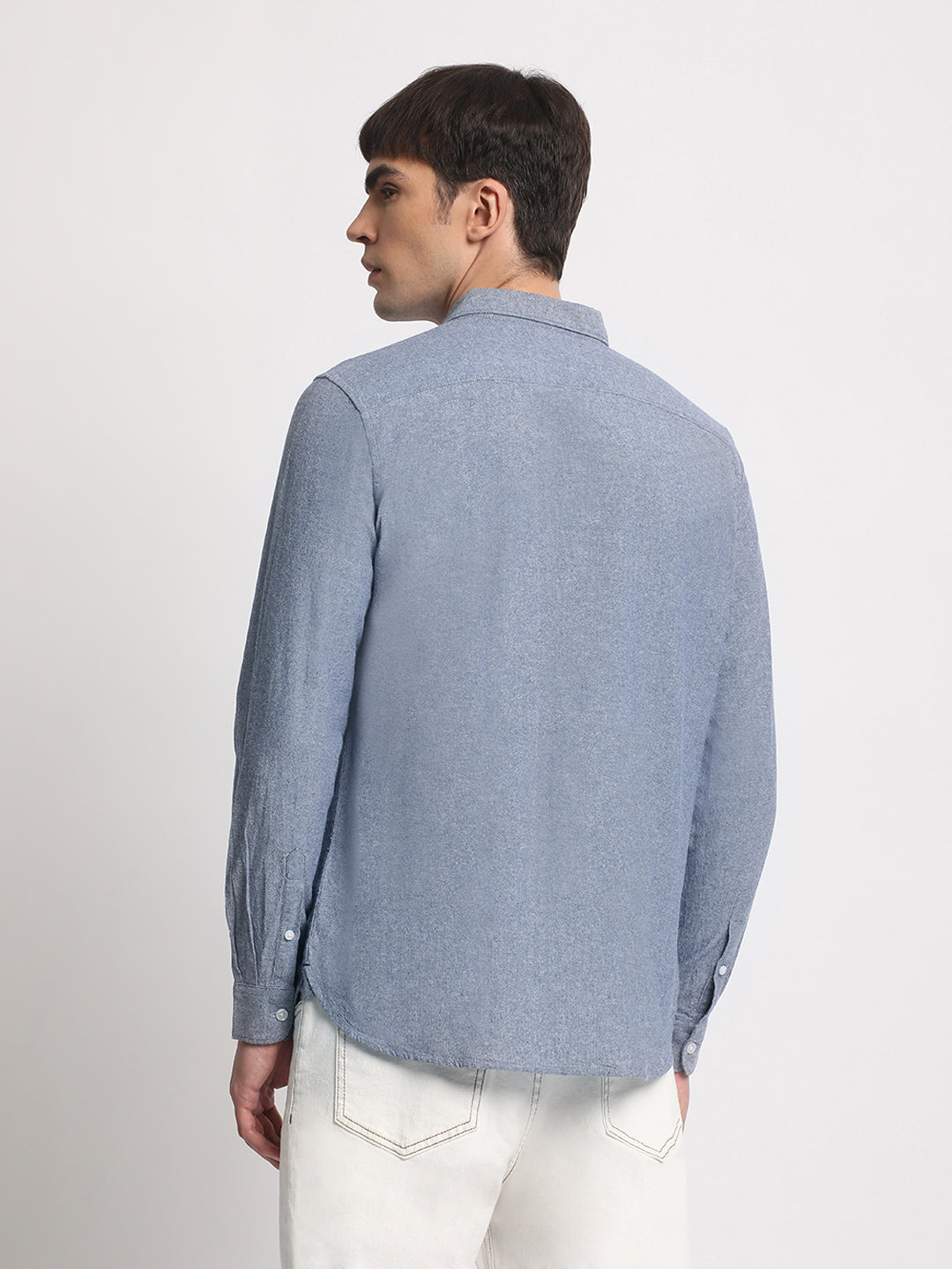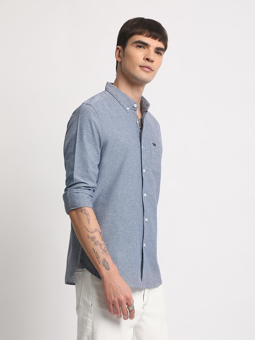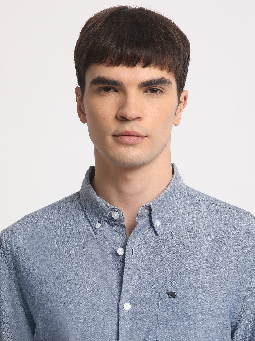 Men Blue Solid Slim Fit Cotton Casual Shirt