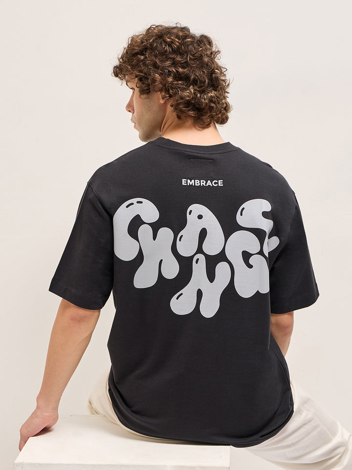 - Design: Features a 3D wireframe bear graphic on the chest and a bold abstract "Embrace Change" print on the back,
