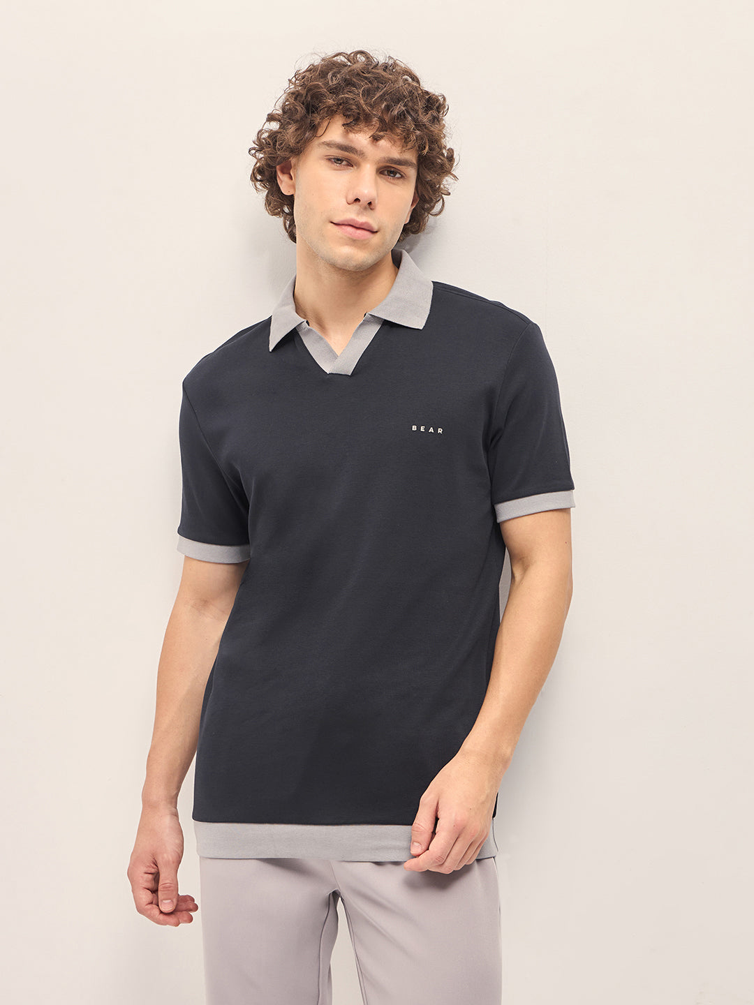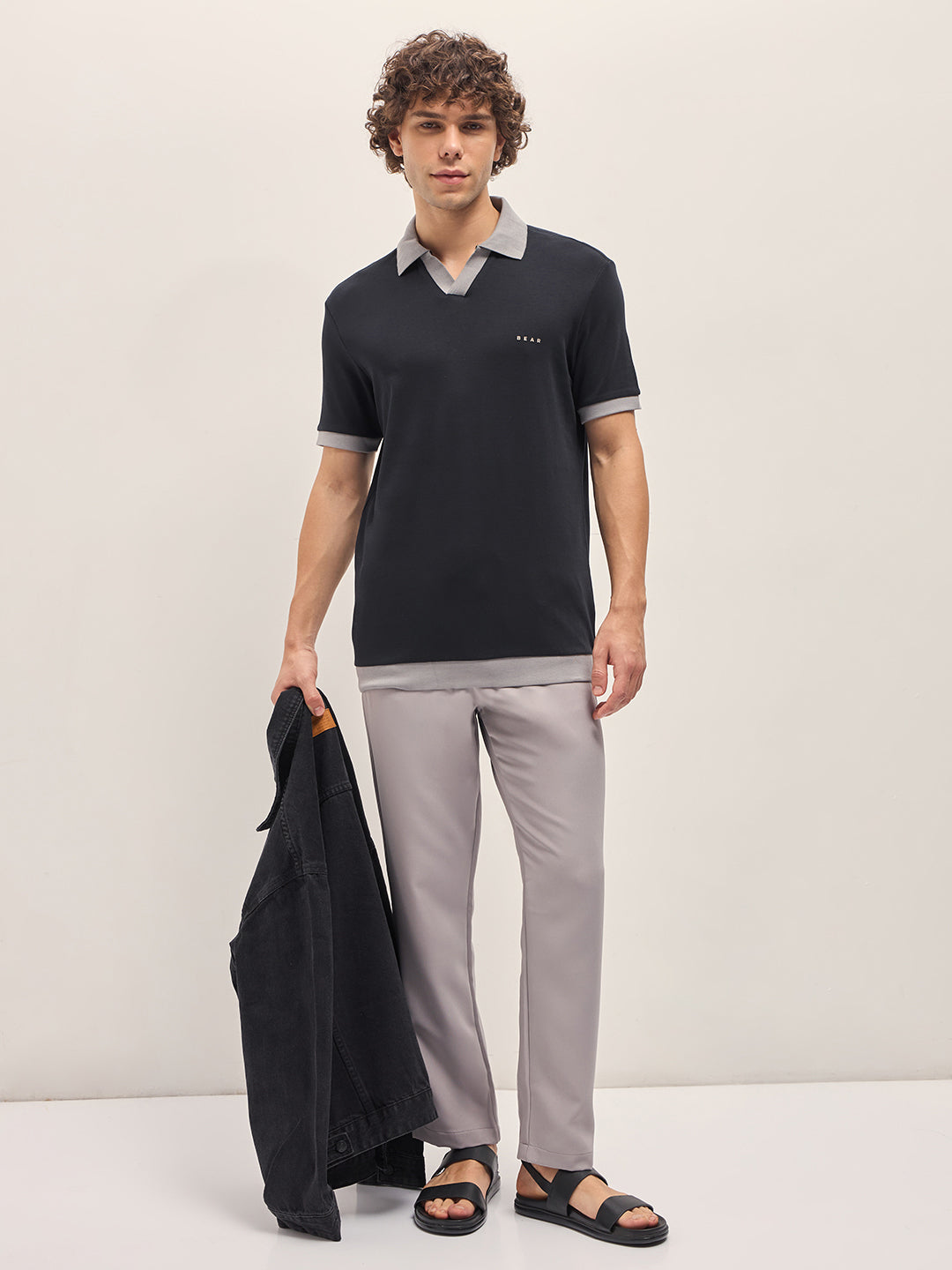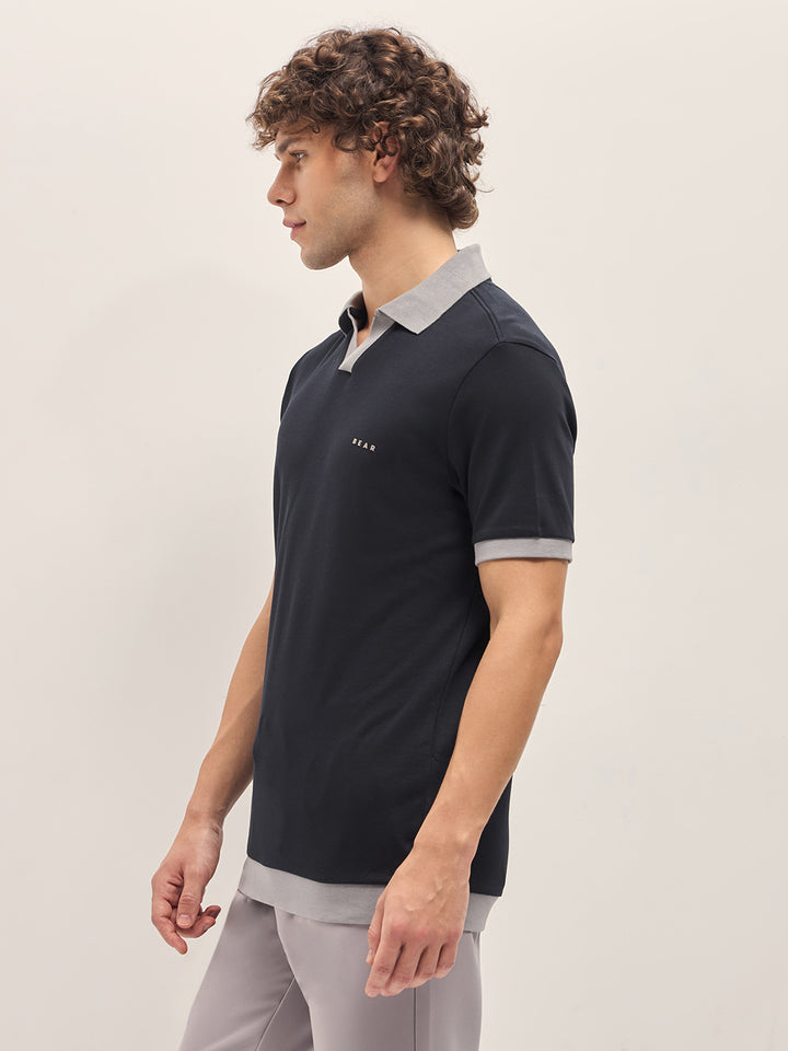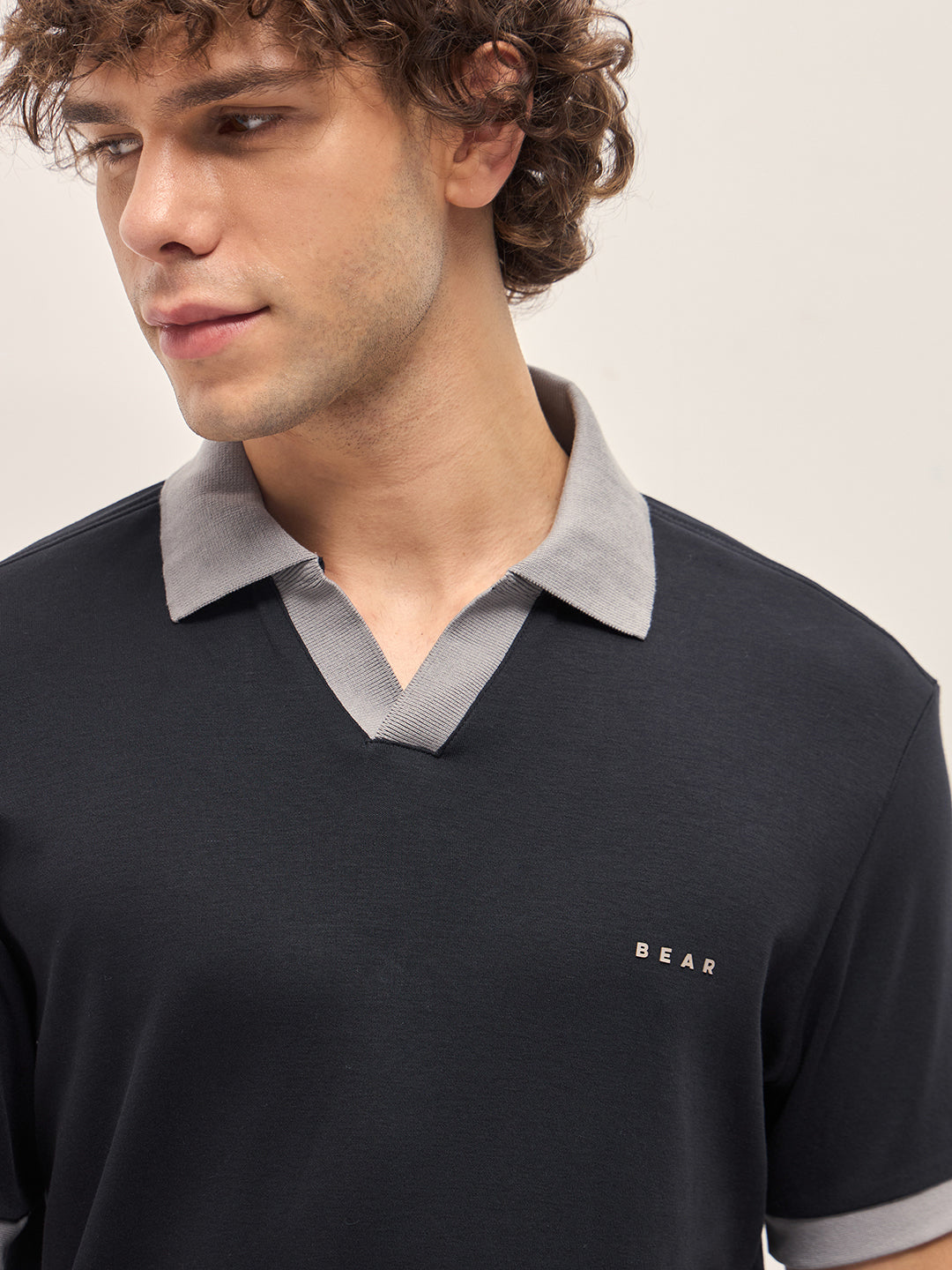 Black Relax Fit Polo T-shirt with Contrast Collar