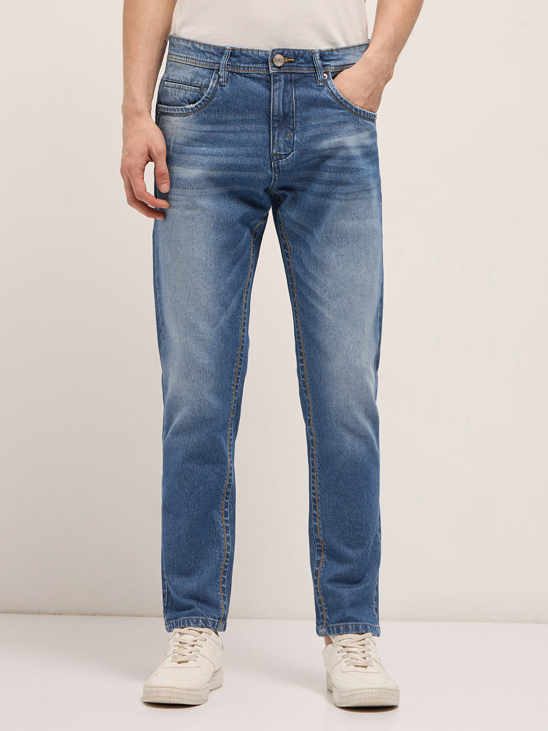 Mid Blue Mid-Rise Slim Fit Jeans with Mid Fade