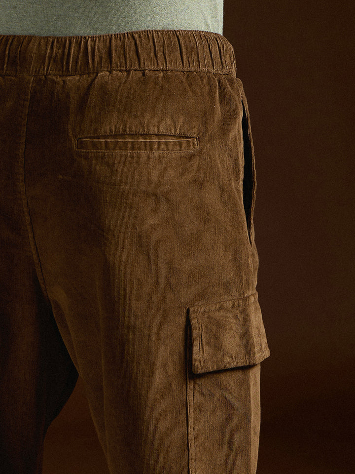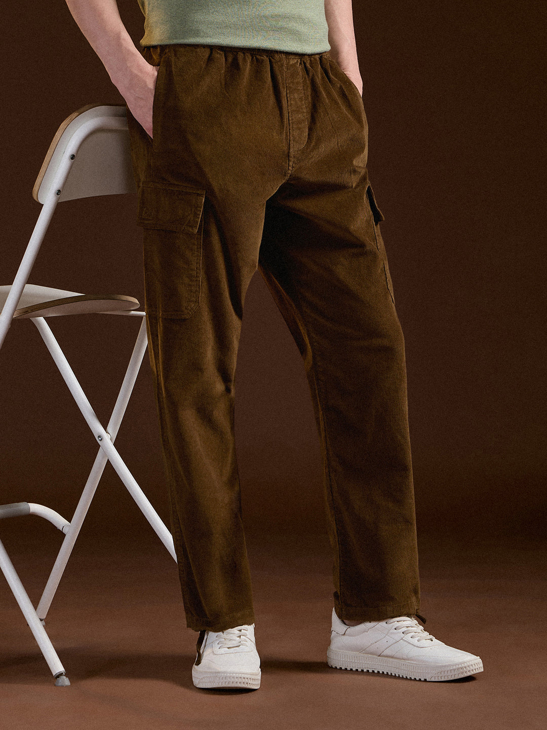 Shop Brown Solid Baggy Fit Stylish Corduroy Cargo Pant Online