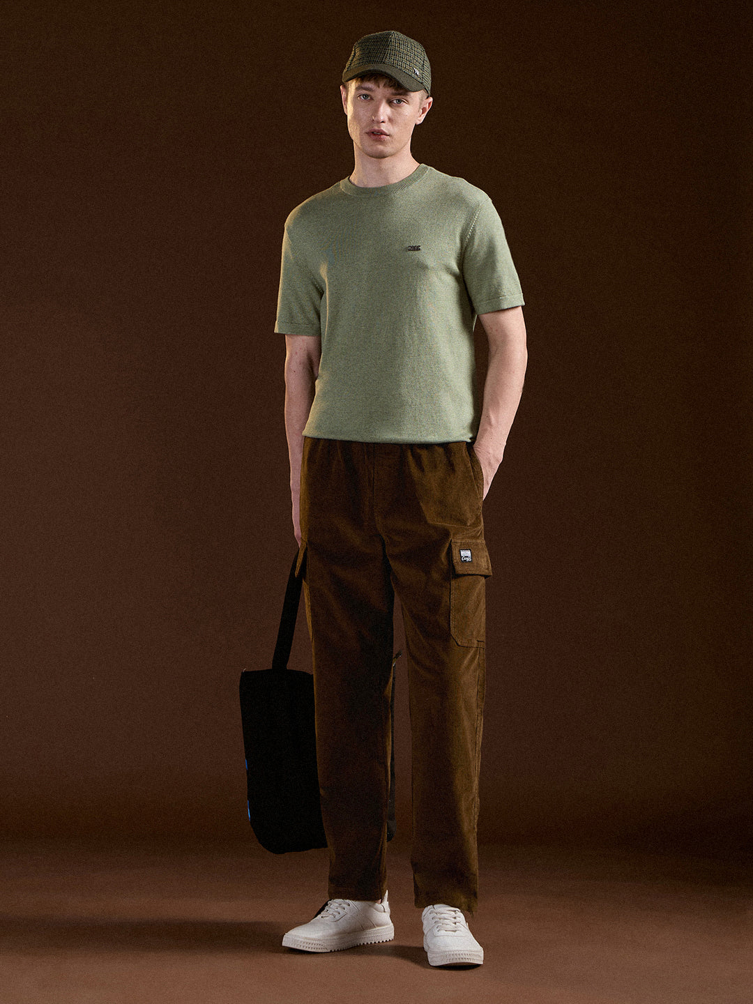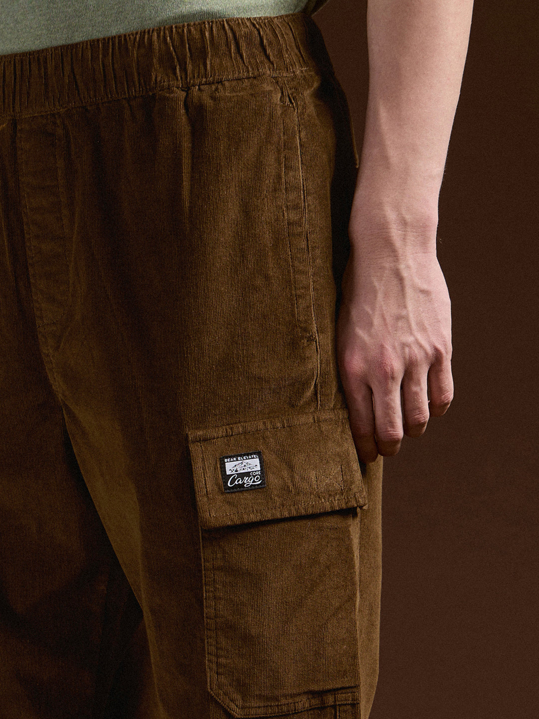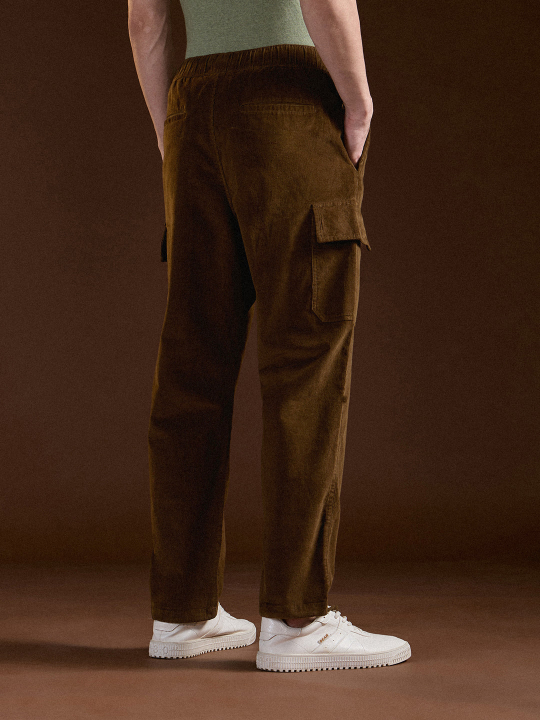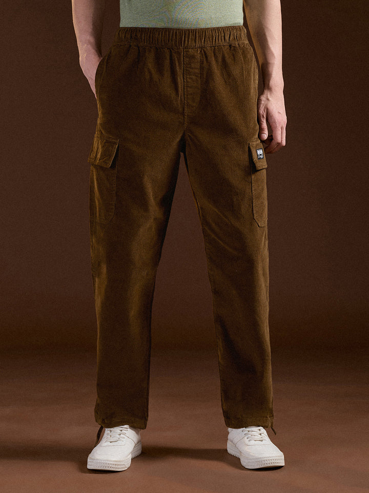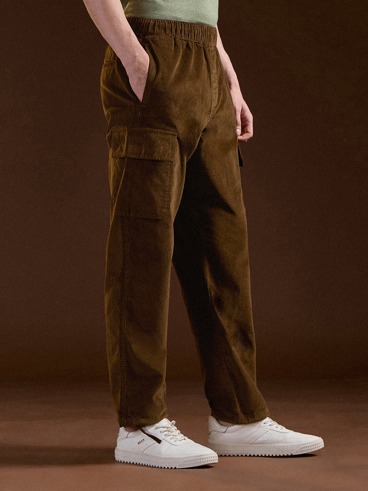Brown Solid Baggy Fit Stylish Corduroy Cargo Pant