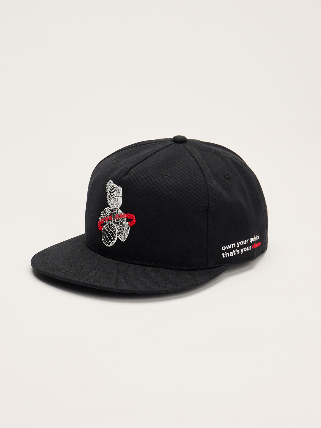 Shop Trendy Black Baseball Cap with Graphic Bear and Text Print Online.