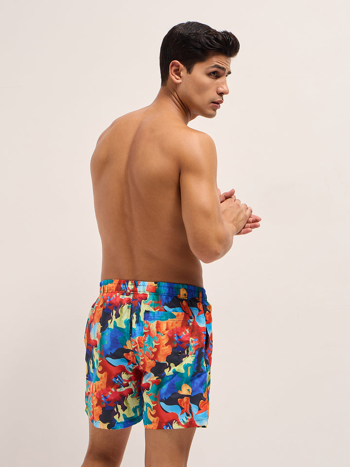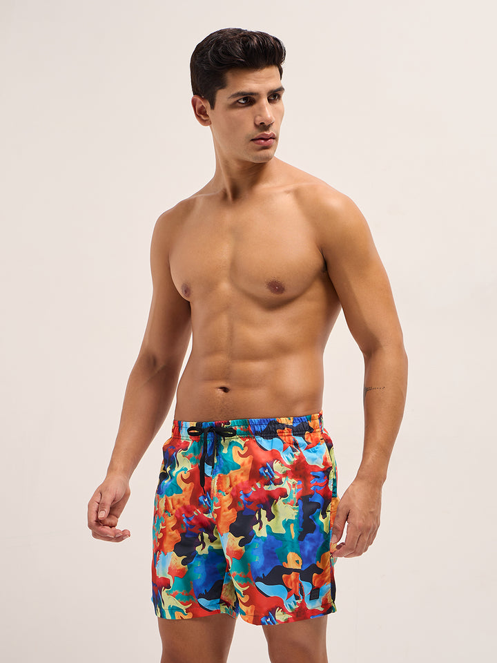 Multi-Color Printed Swim Shorts with Elastic Waist – Perfect for Summer