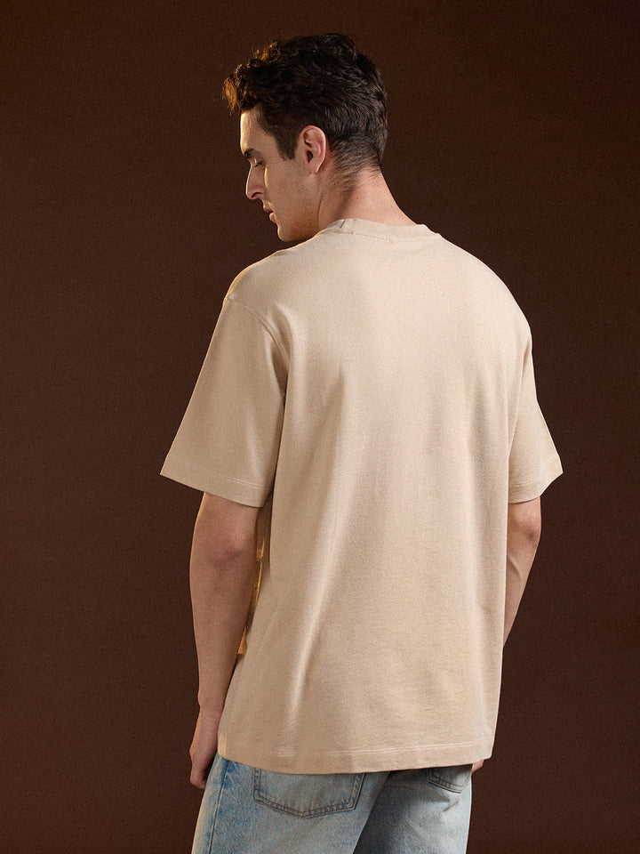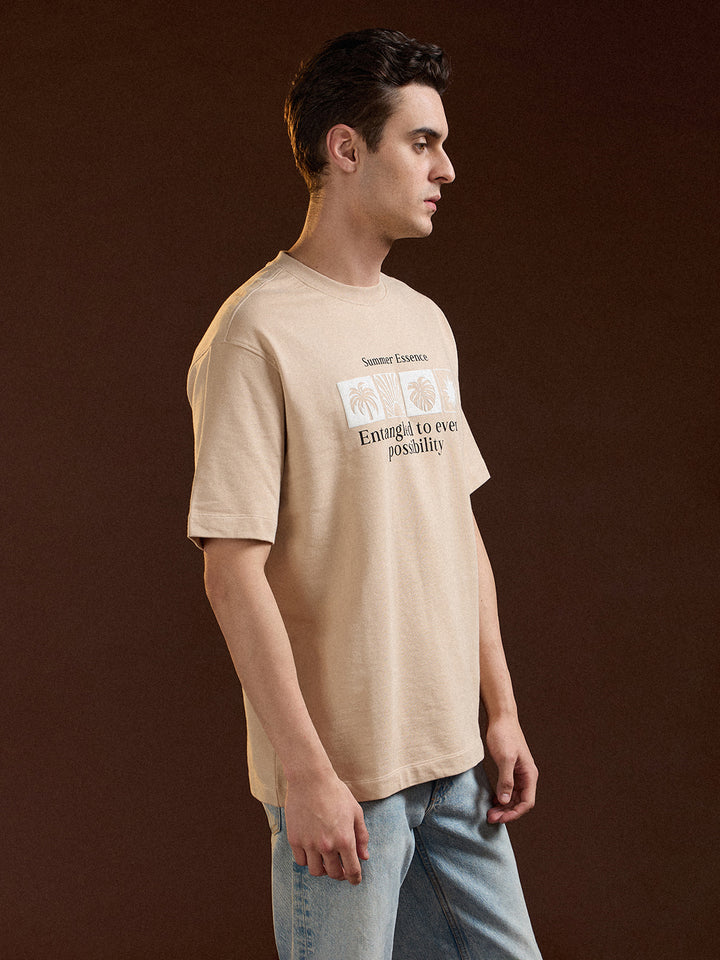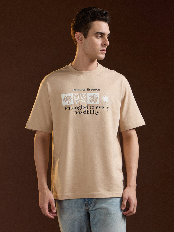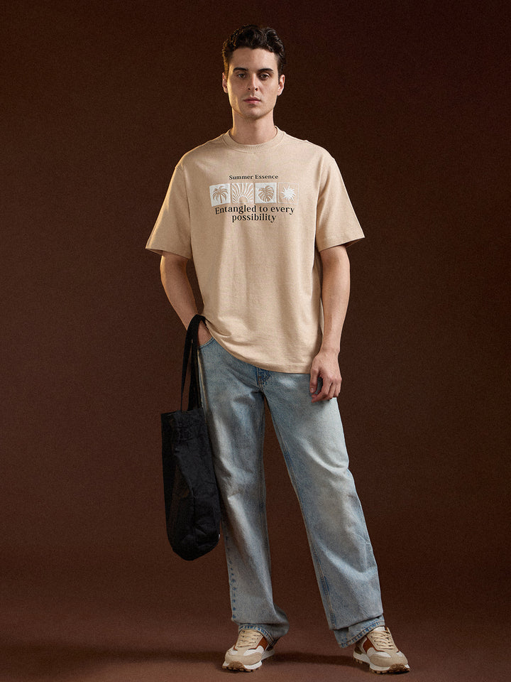 Beige Oversize Summer Essence Graphic Print Crew Neck T-shirt