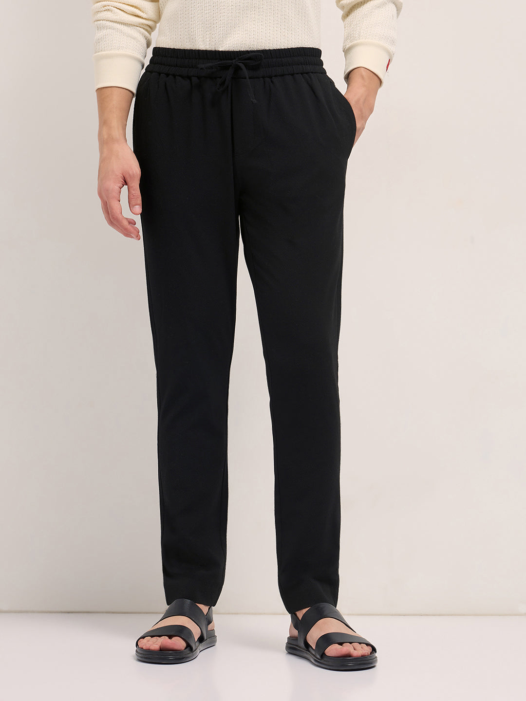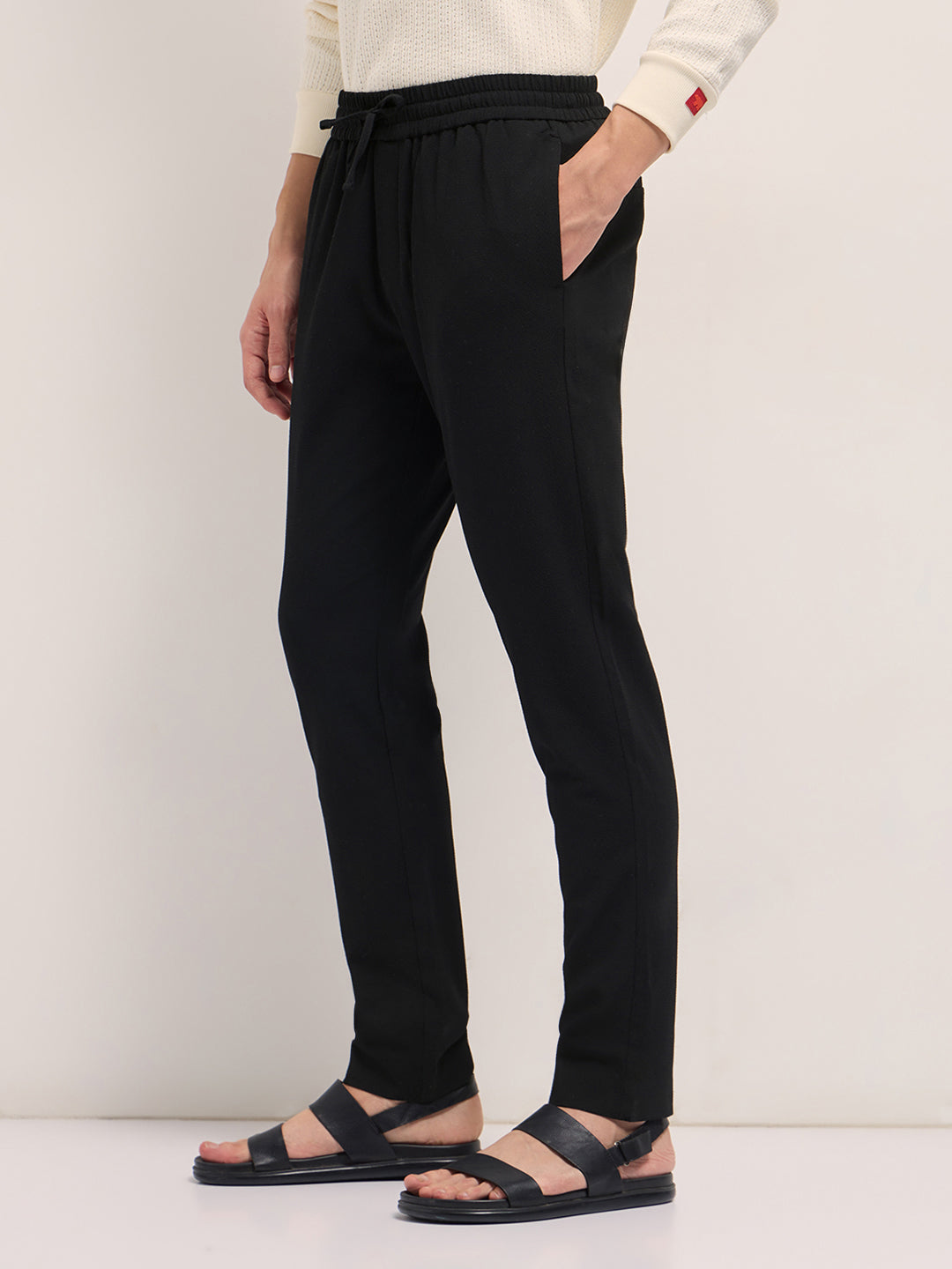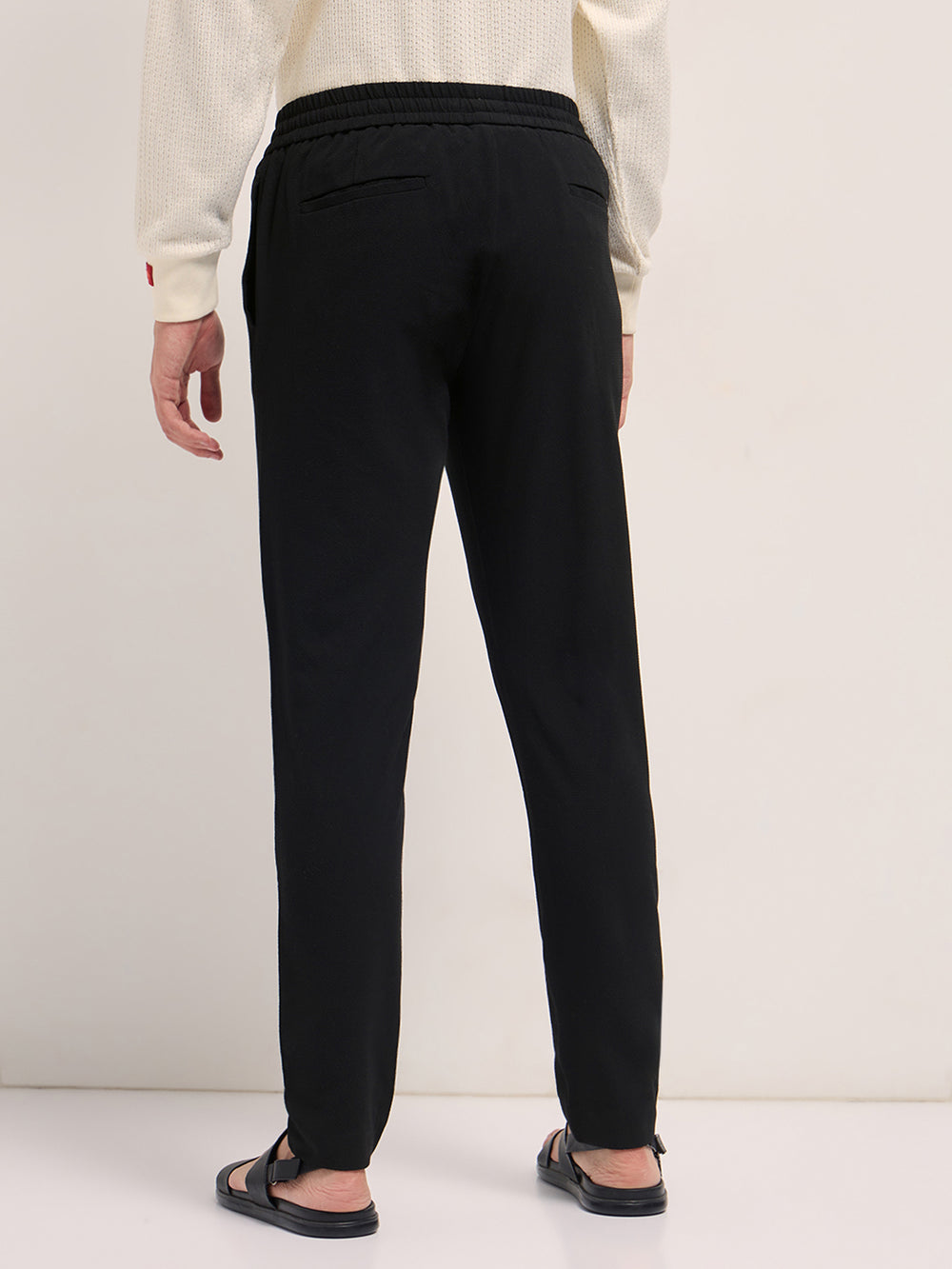 Black Slim Fit Formal Trouser with Elastic Waistband