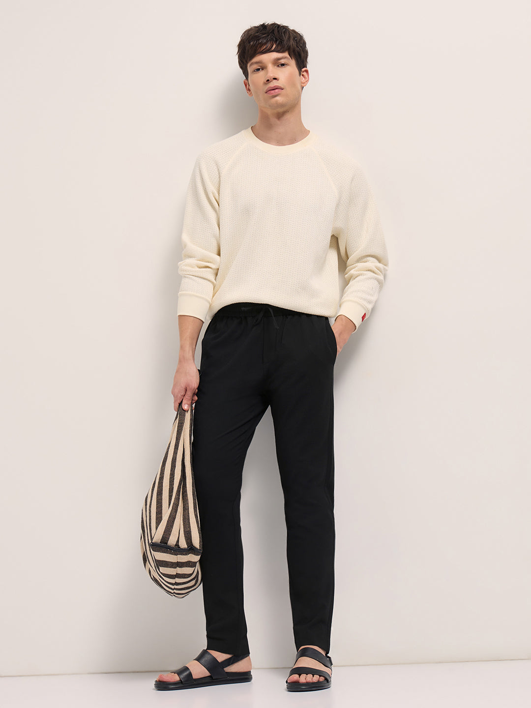 Shop Black Slim Fit Formal Trouser with Elastic Waistband Online