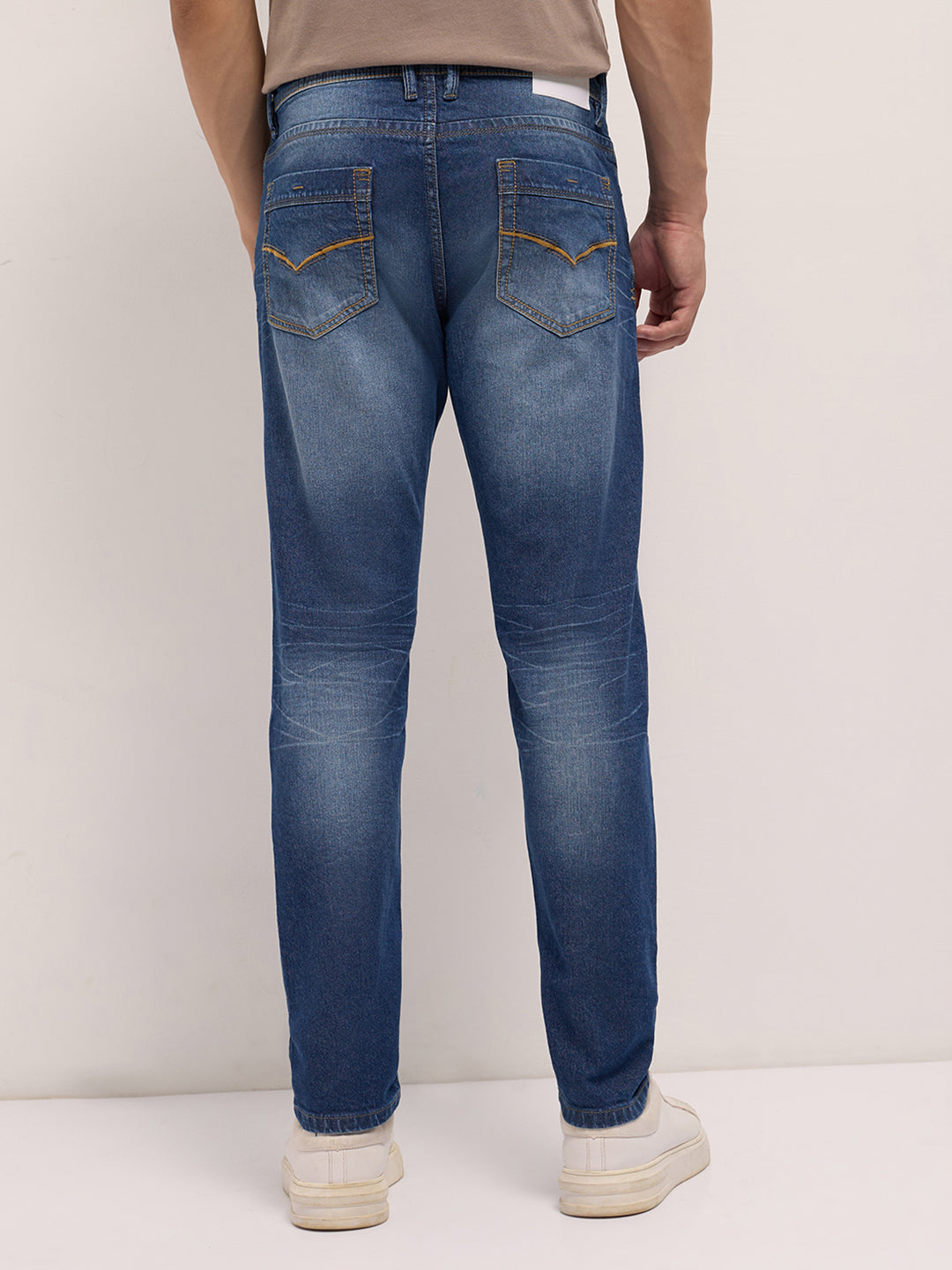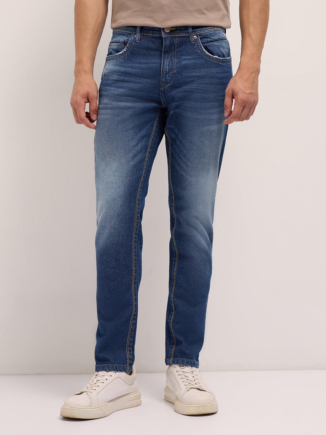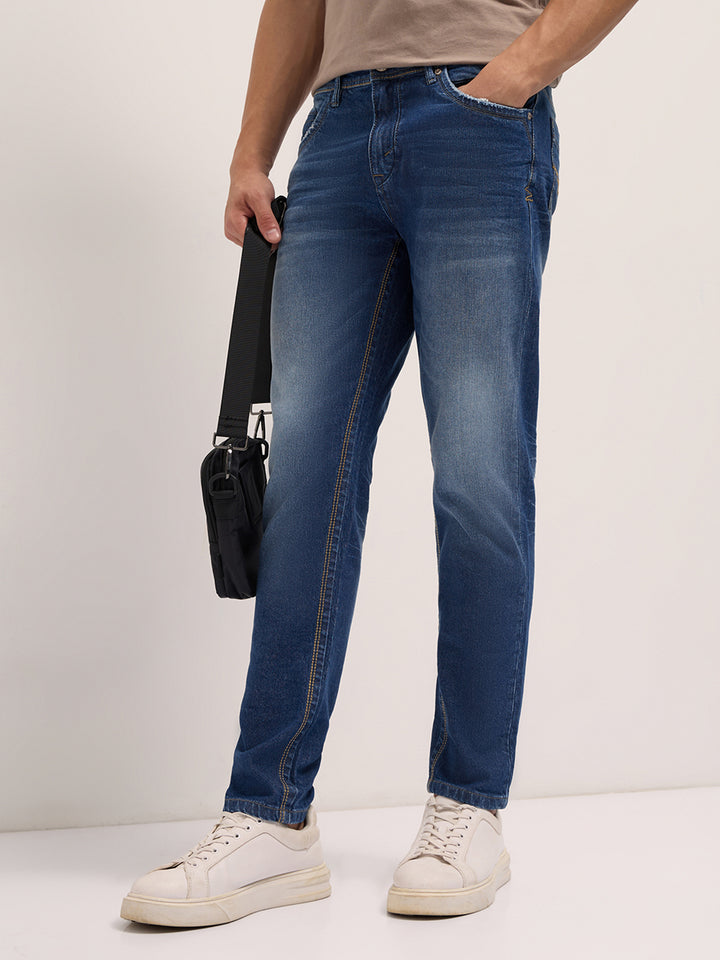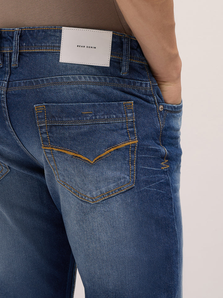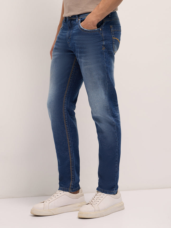 Mid Blue Mid-Rise Slim Fit Jeans with Mid Fade