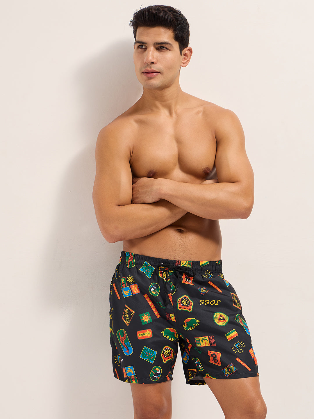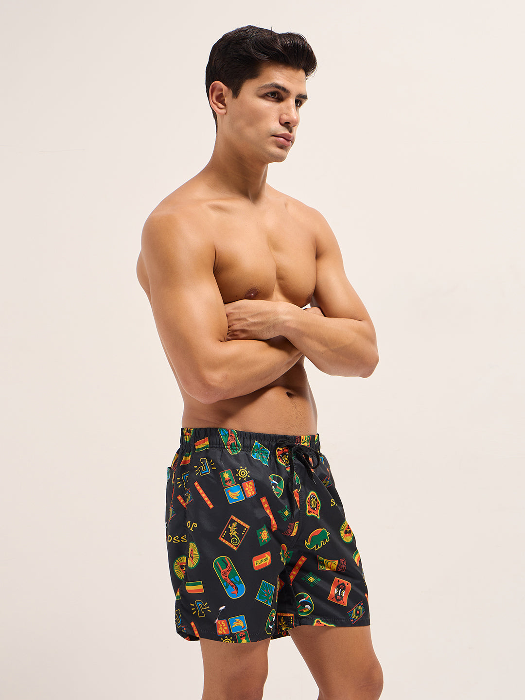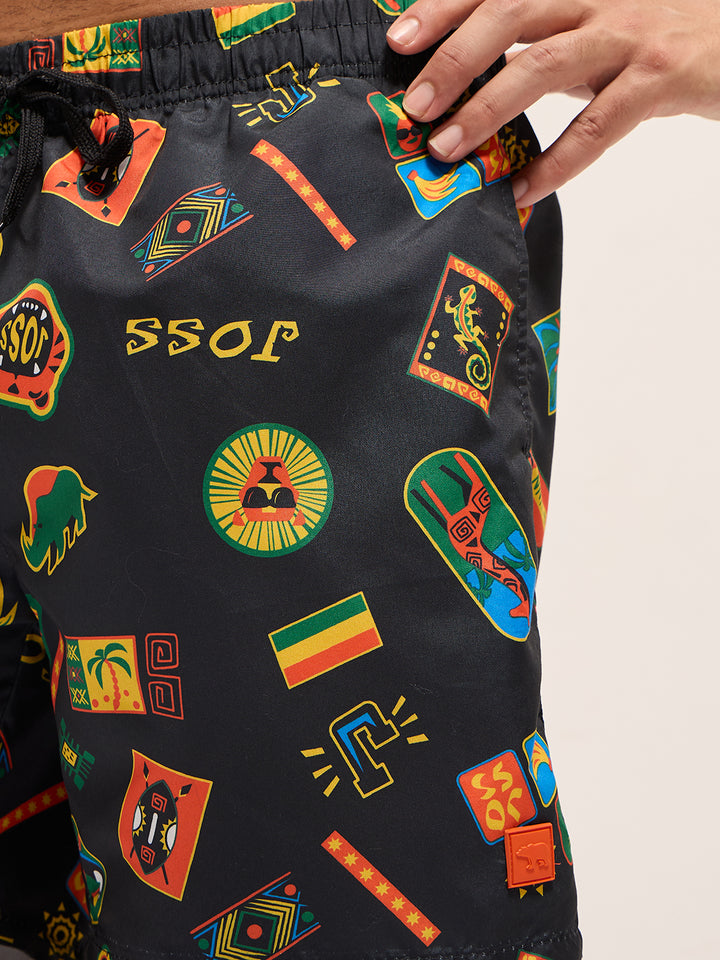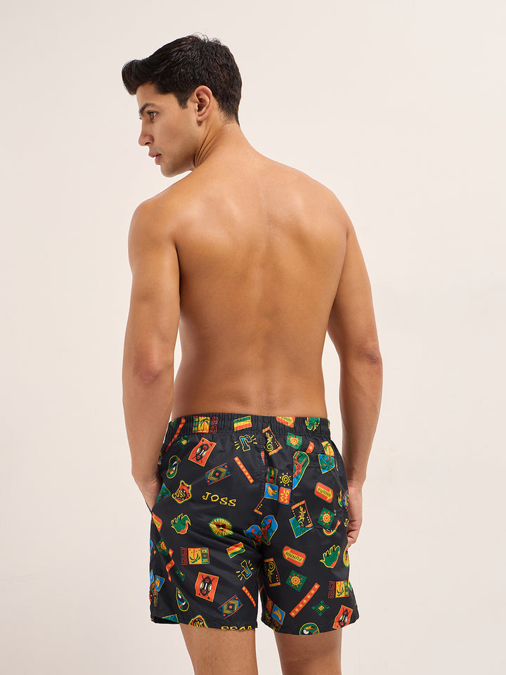 Multi-Color Printed Swim Shorts with Elastic Waist – Perfect for Summer