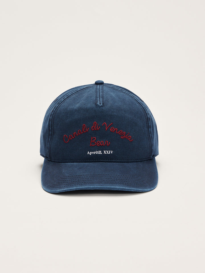 Design: Embroidered "Canali di Venezia Bear" text on the front for a classic touch