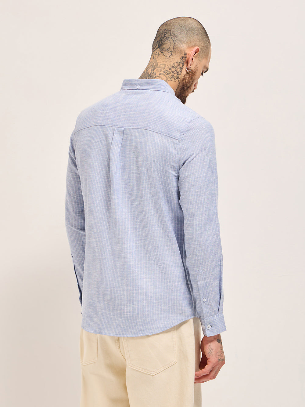 Blue Vertical Pin Stripes Slim Fit Casual Shirt