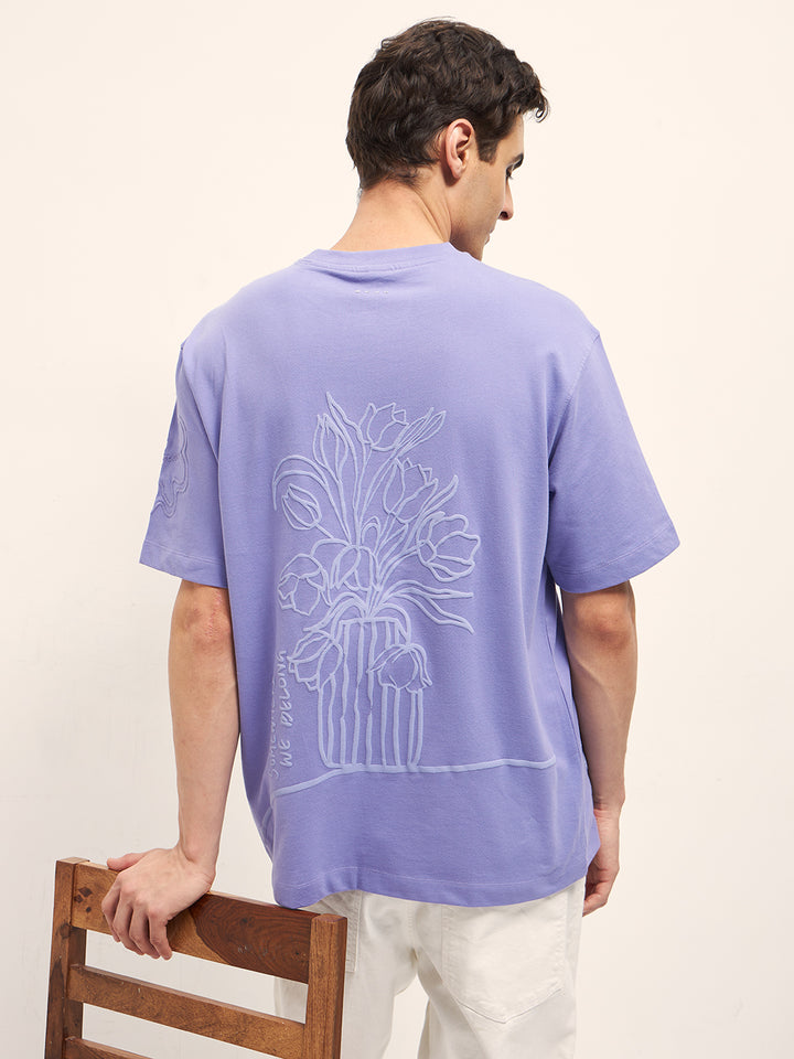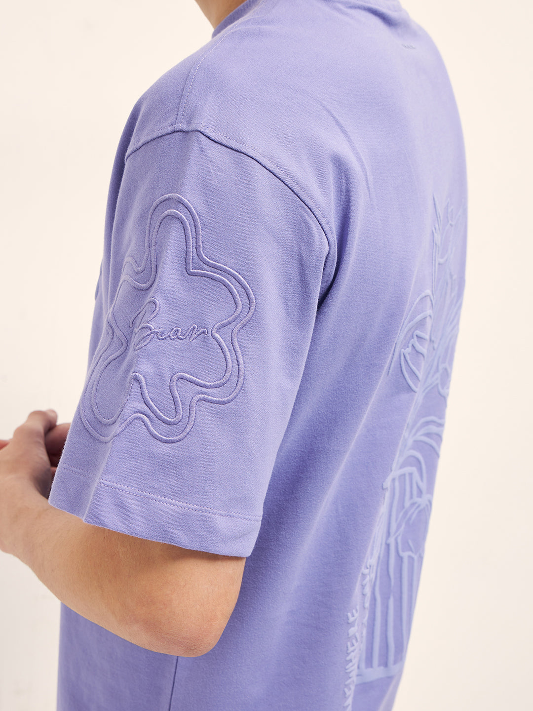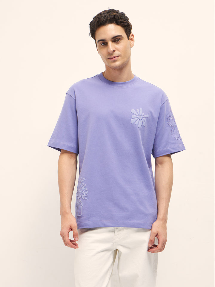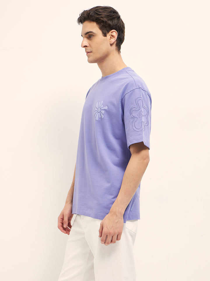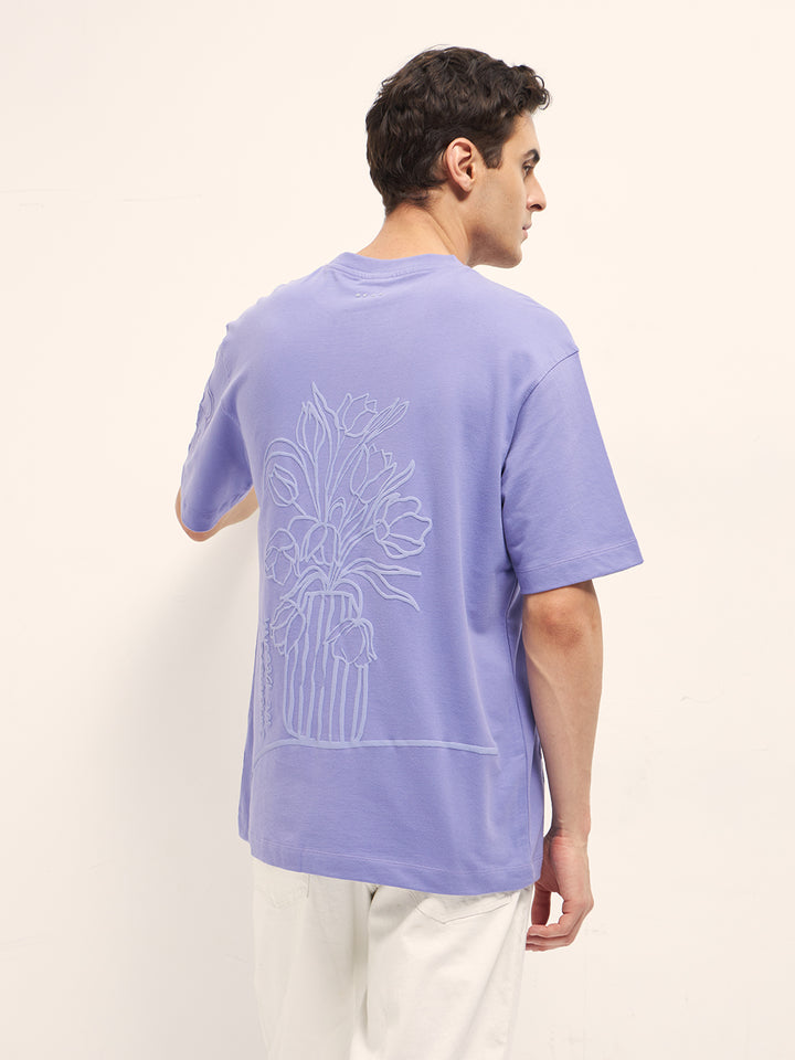 Purple Oversized T-Shirt with Embossed Floral Motif on the Back