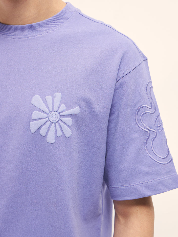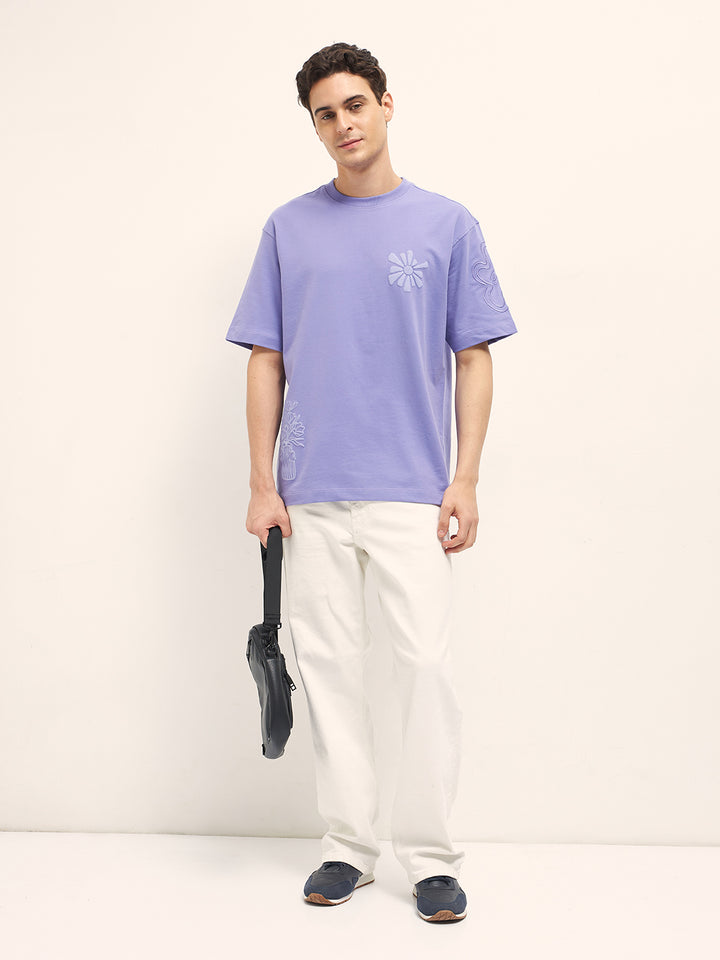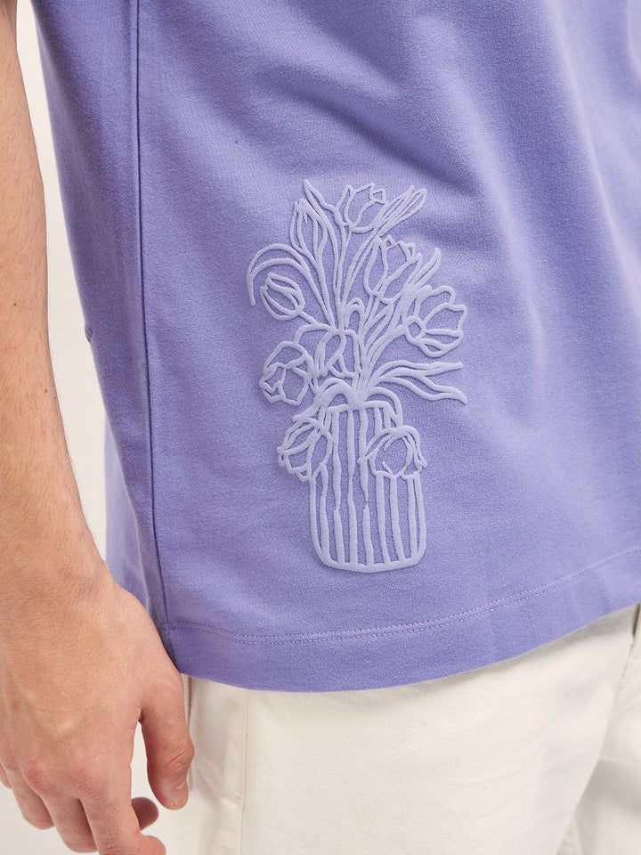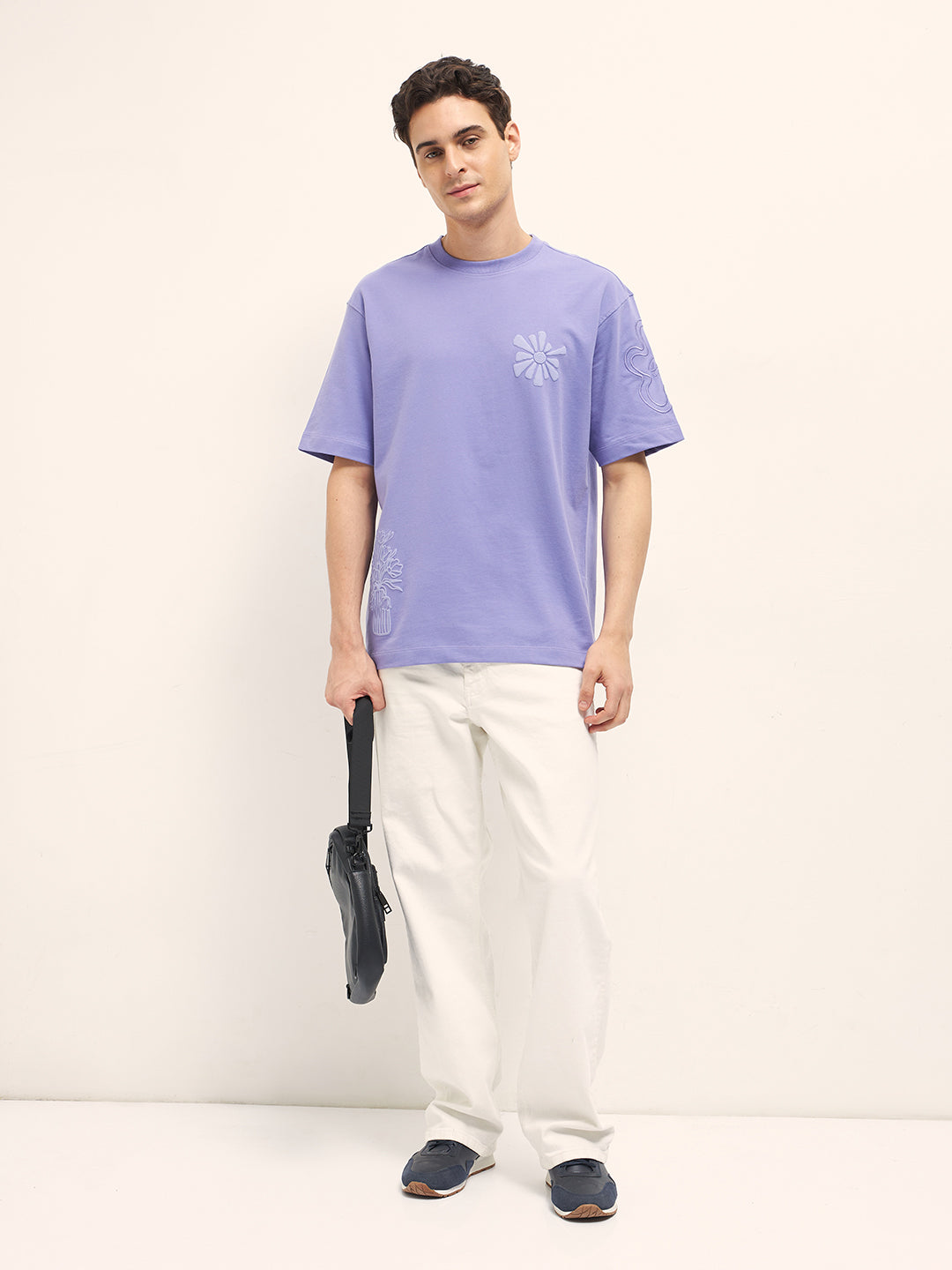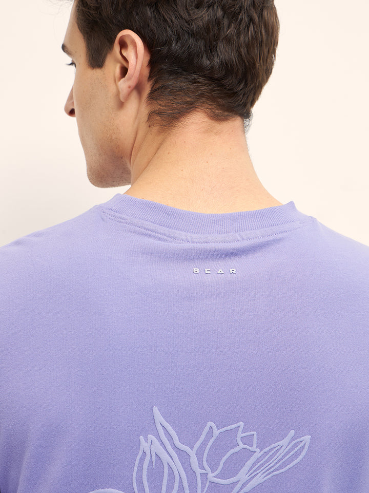Purple Oversized T-Shirt with Embossed Floral Motif on the Back