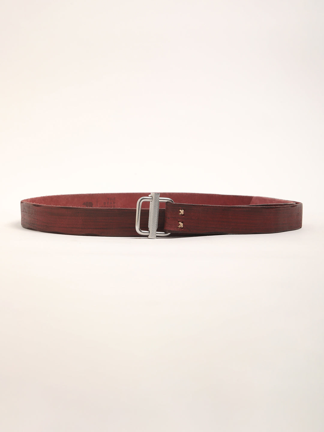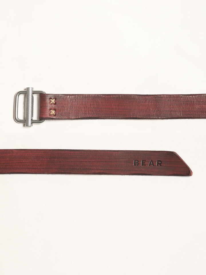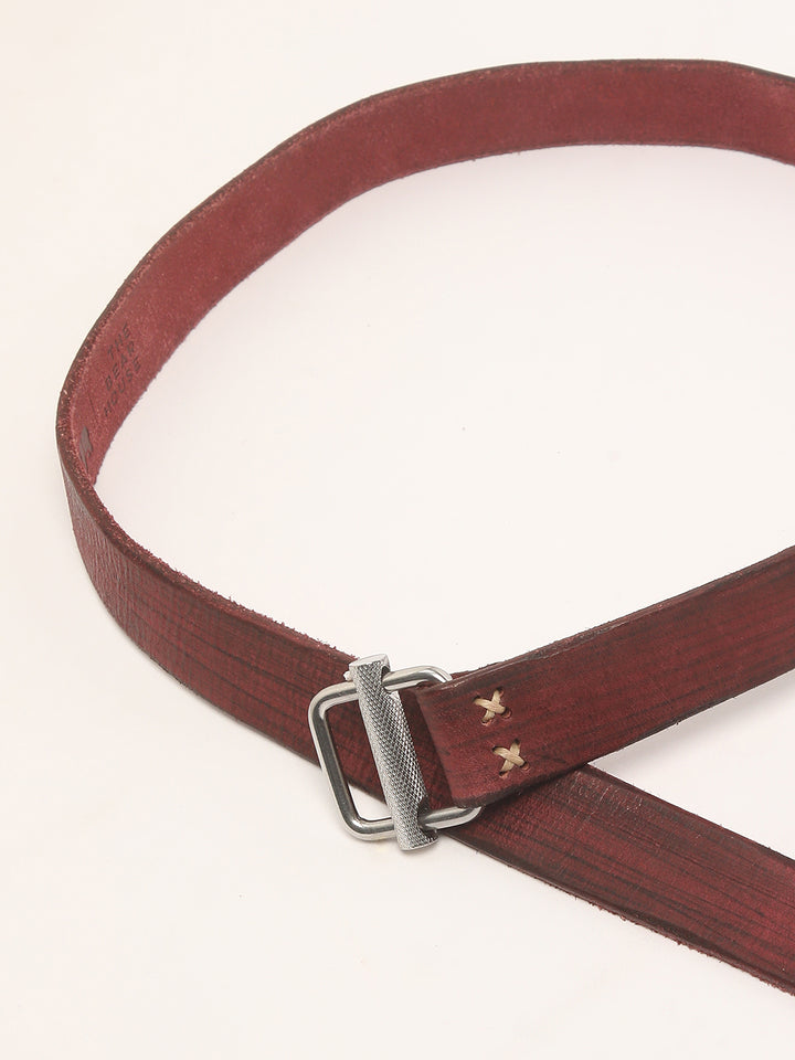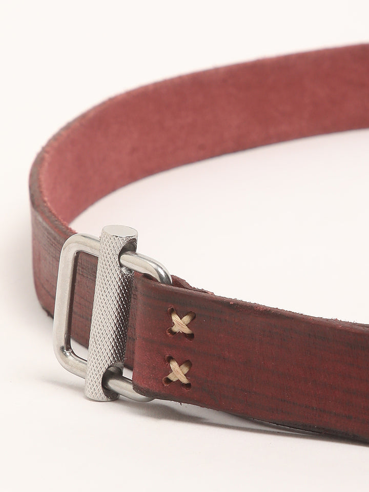 Men Maroon Pure Leather Slim Width Casual Belt with D-Ring Closure